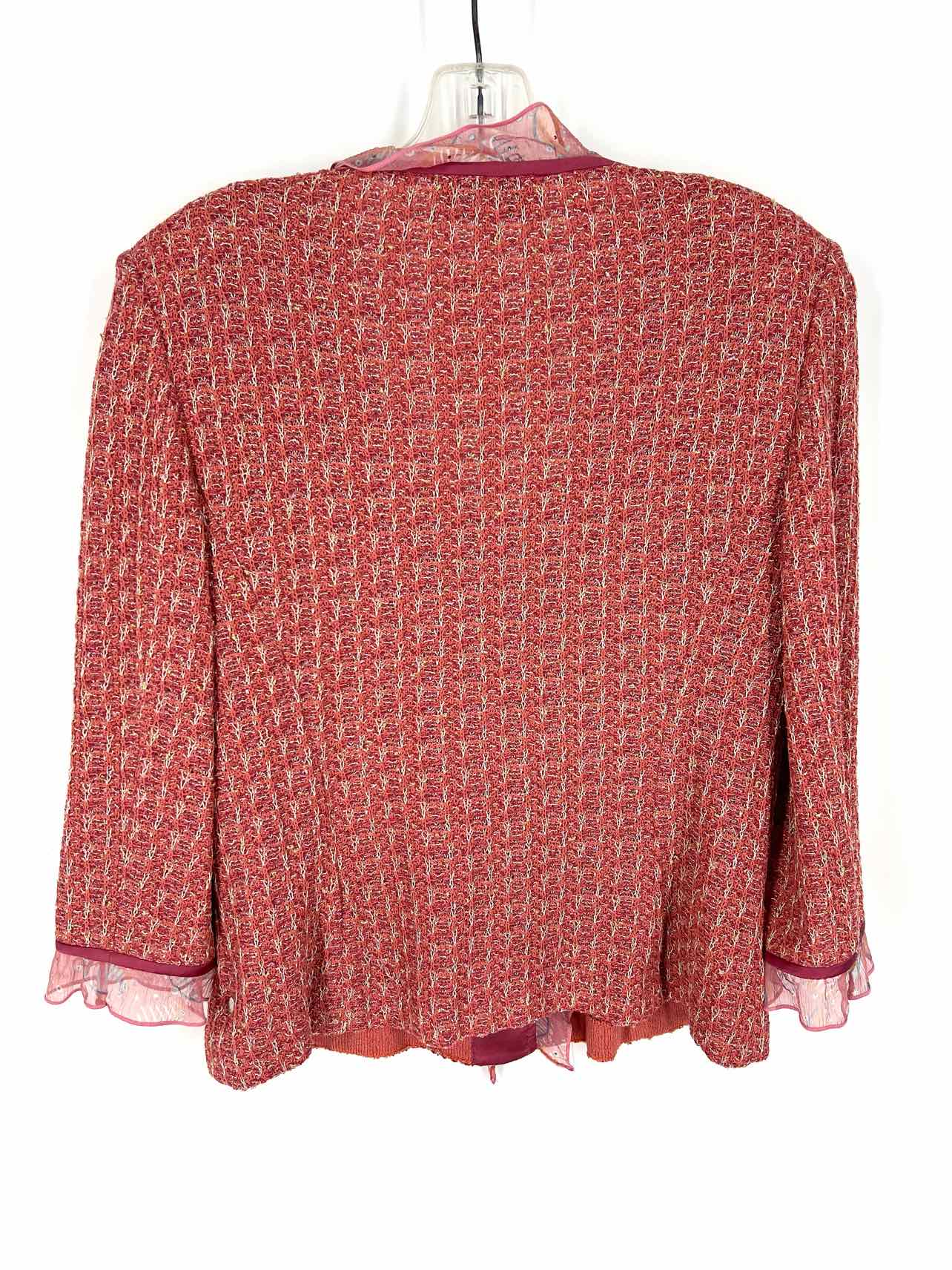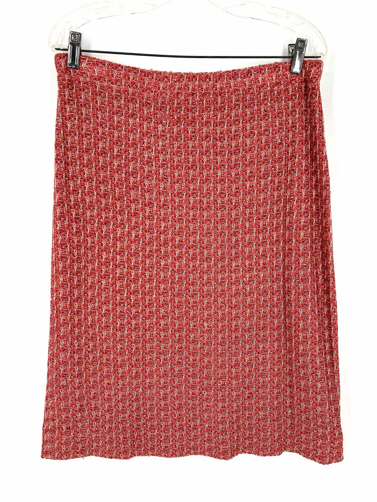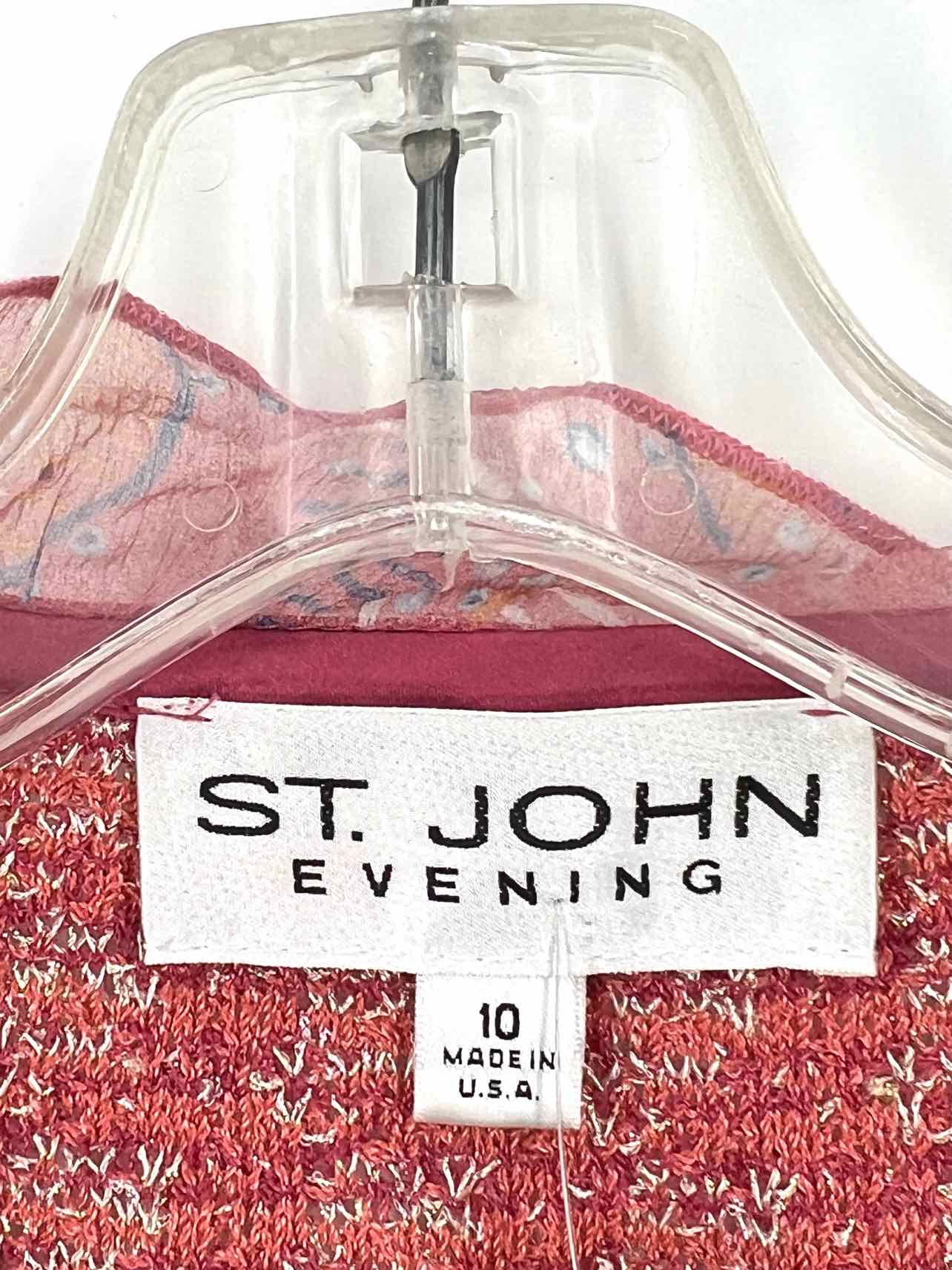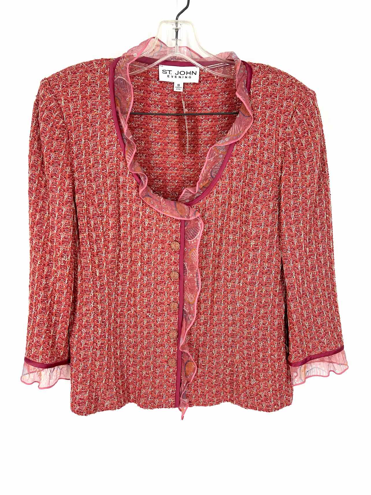 St. John Size 10 Pink/Cream Knit Trim Designer Skirt Suit