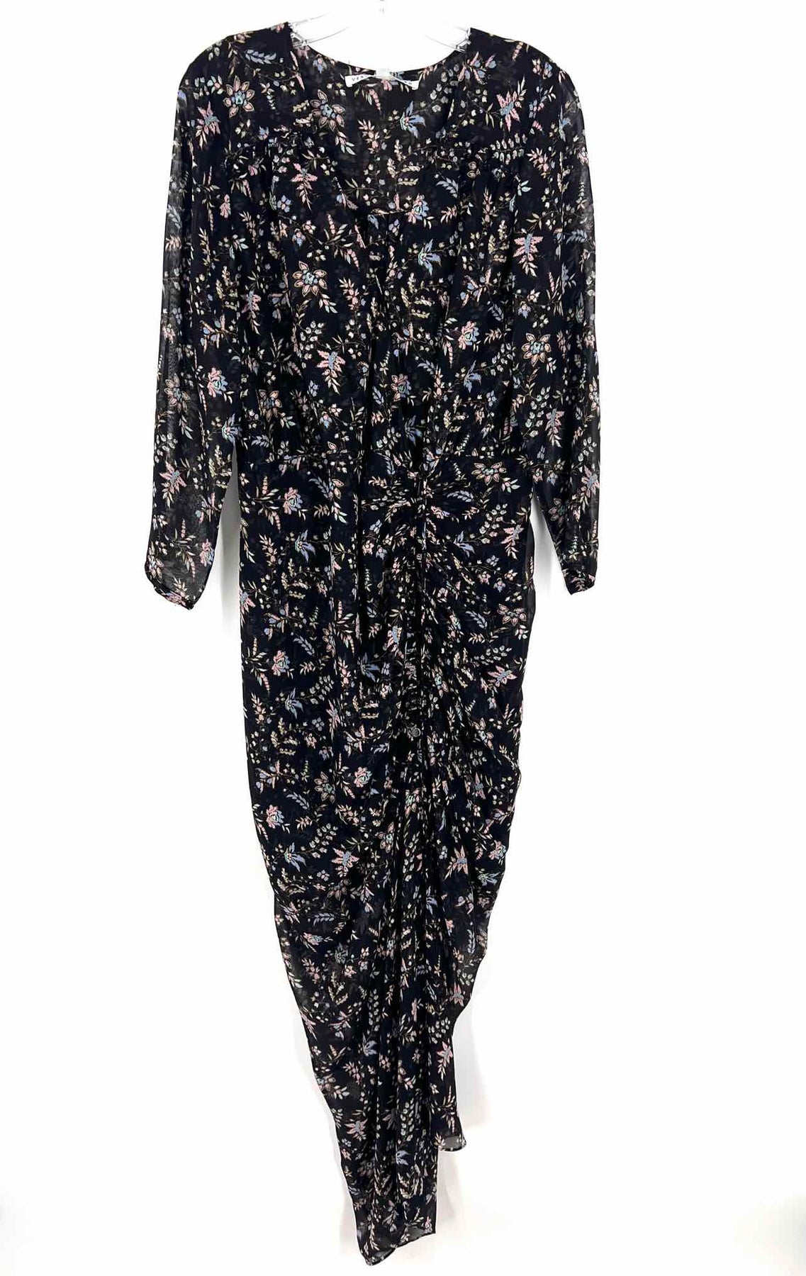 Veronica Beard Size 10 Black/Multi Floral Ruched Designer Dress Maxi