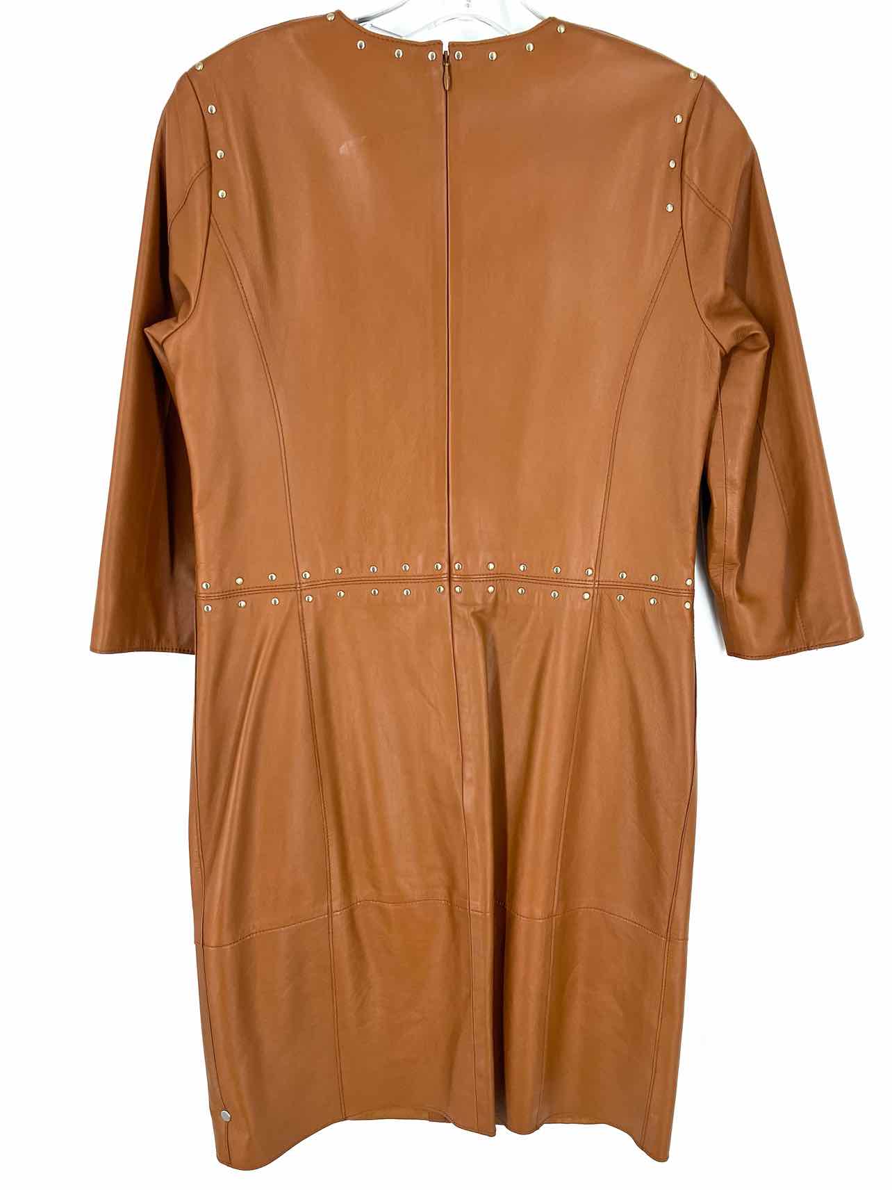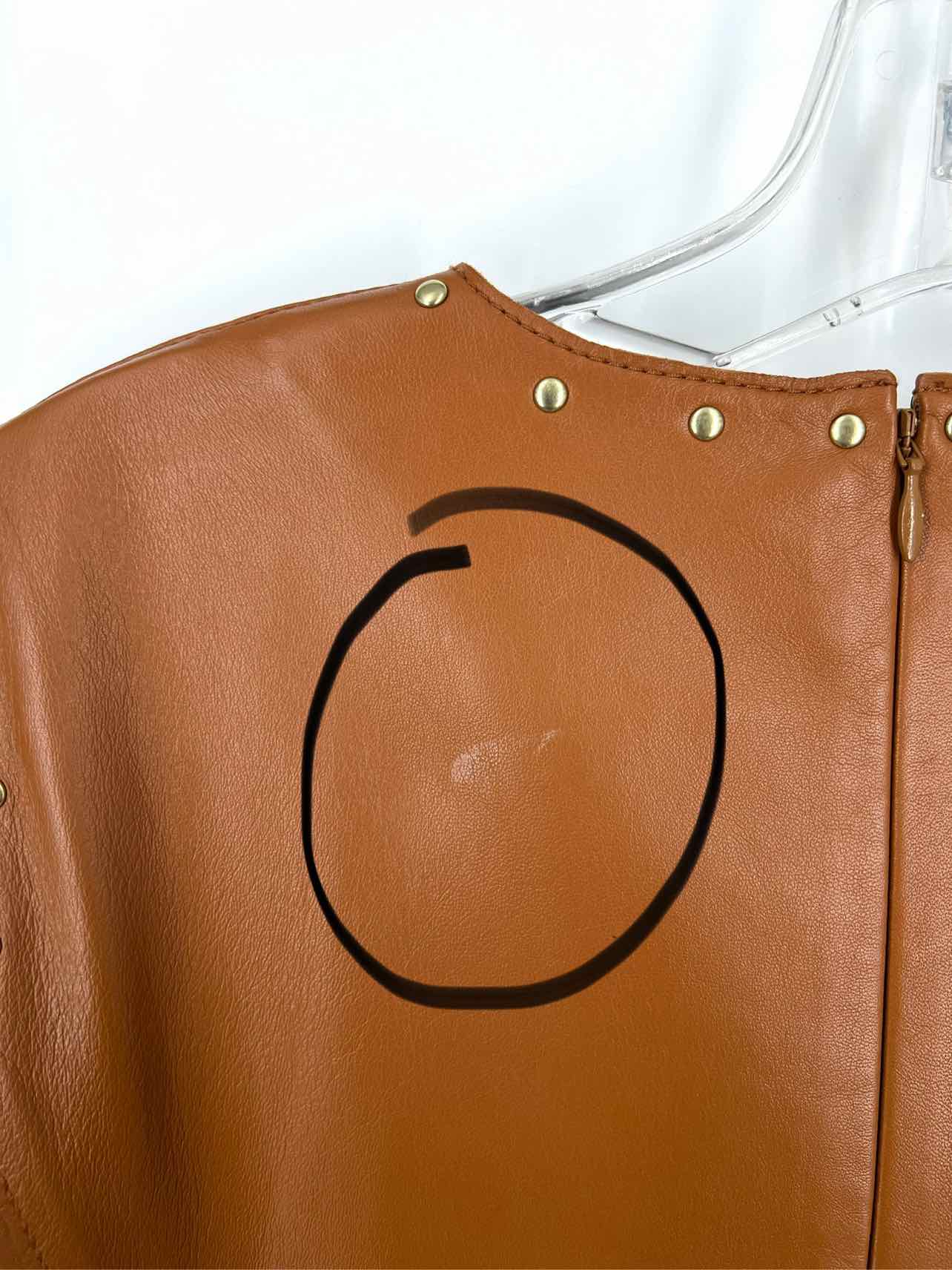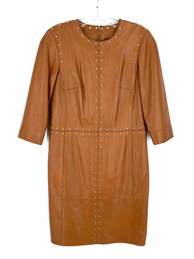 Worth Size 2 Cognac/Gold Studded Leather AS IS Designer Dress