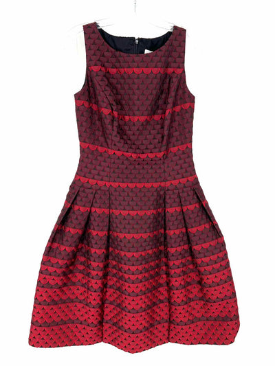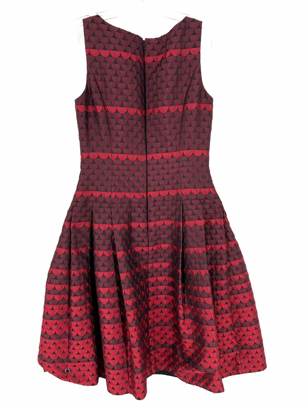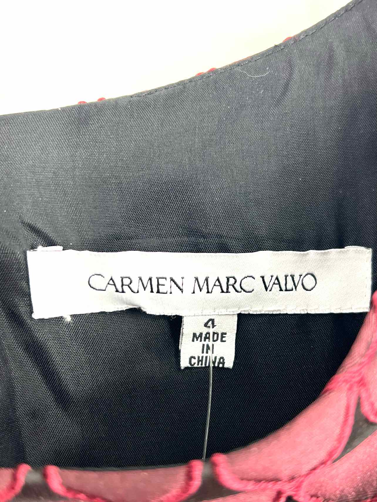 Carmen Marc Valvo Size 4 Black/Red Scalloped Pleated Designer Dress