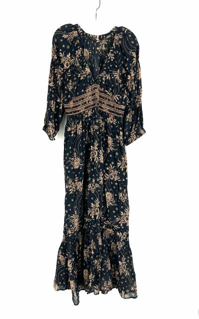 Free People Size M Bk/Br/Or Floral Stitched Dresses Dress Maxi