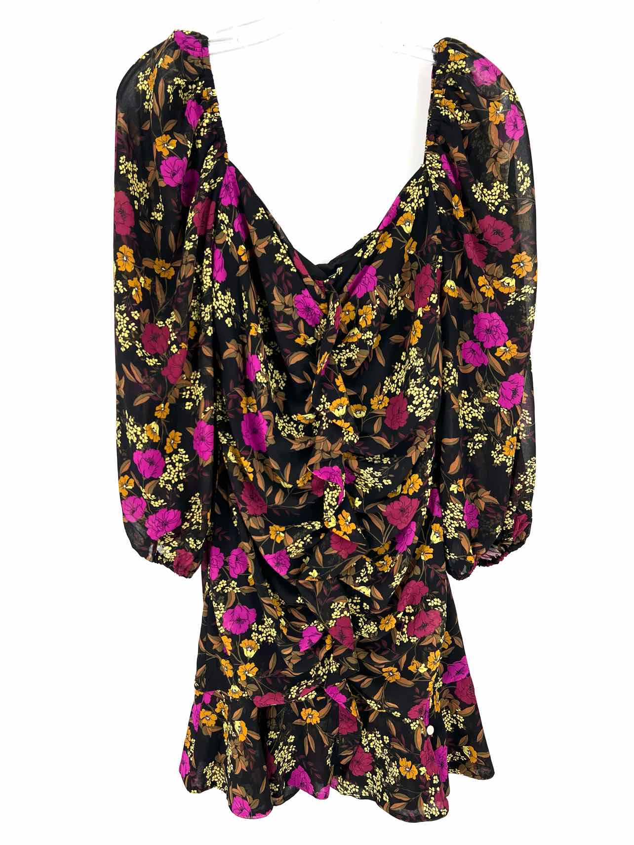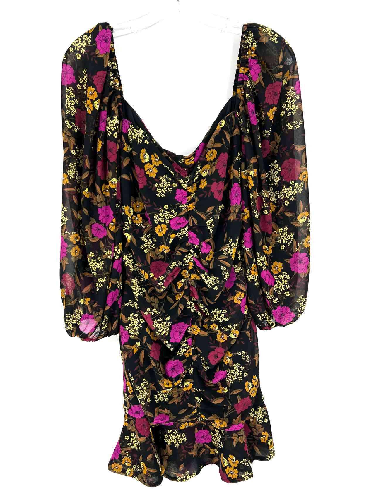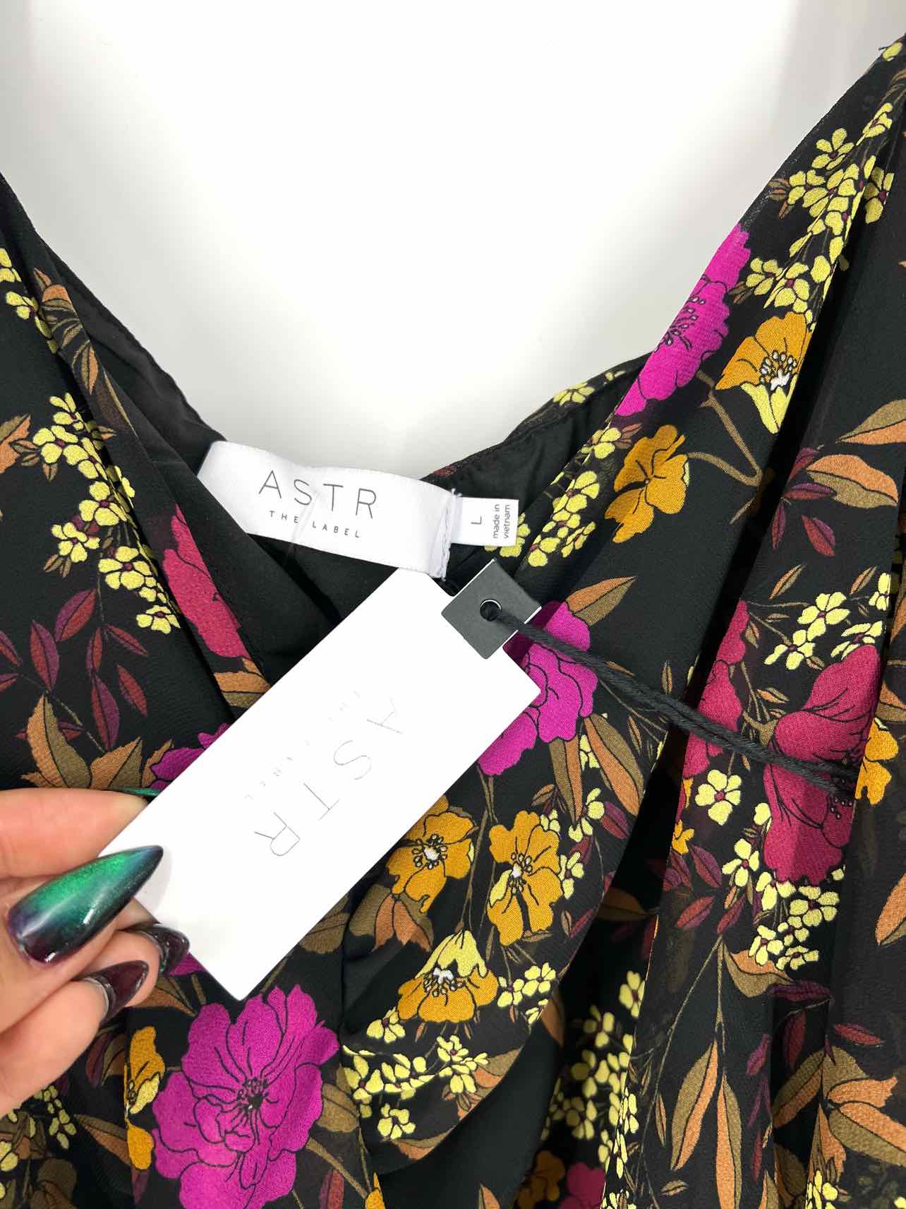 ASTR The Label Size L Black/Pink Floral Ruched Designer Dress