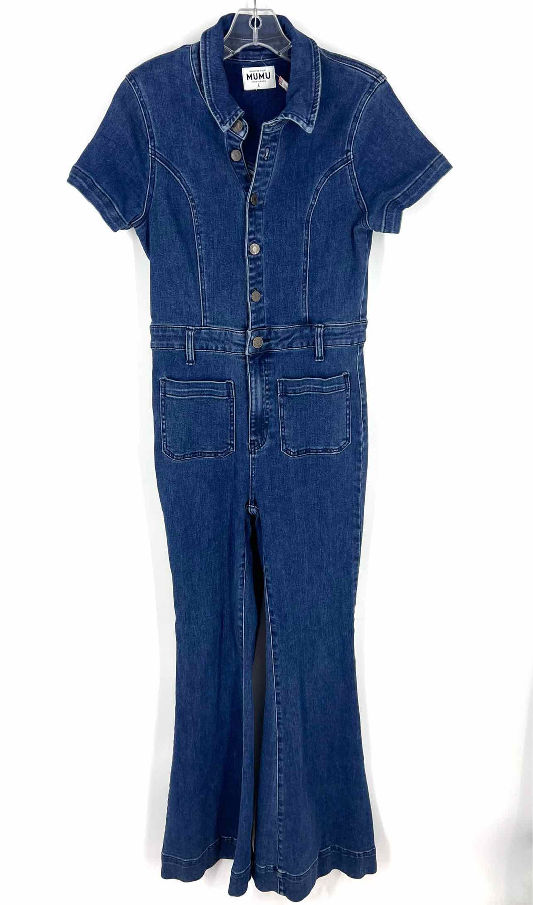 Show Me Your Mumu Size L Denim Button(s) Cinched Designer Jumpsuit