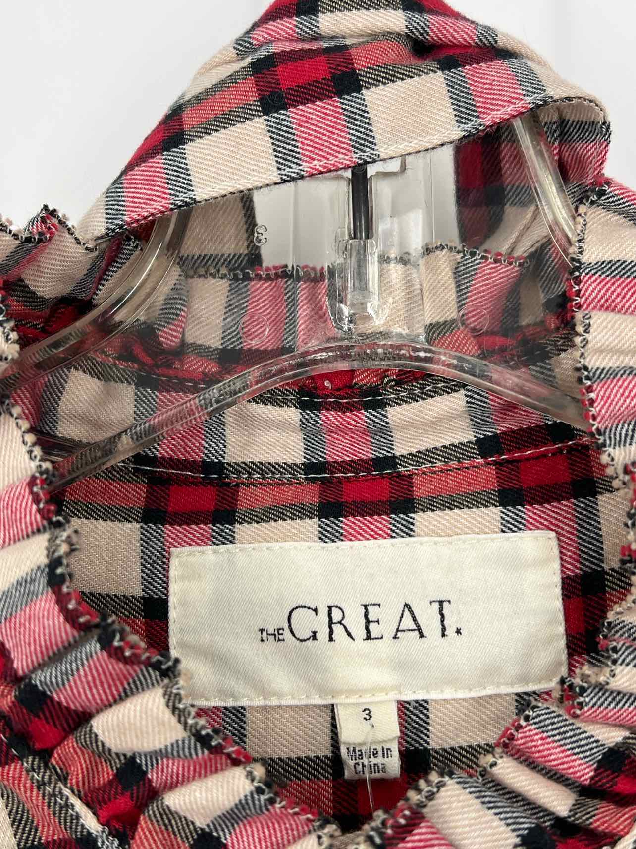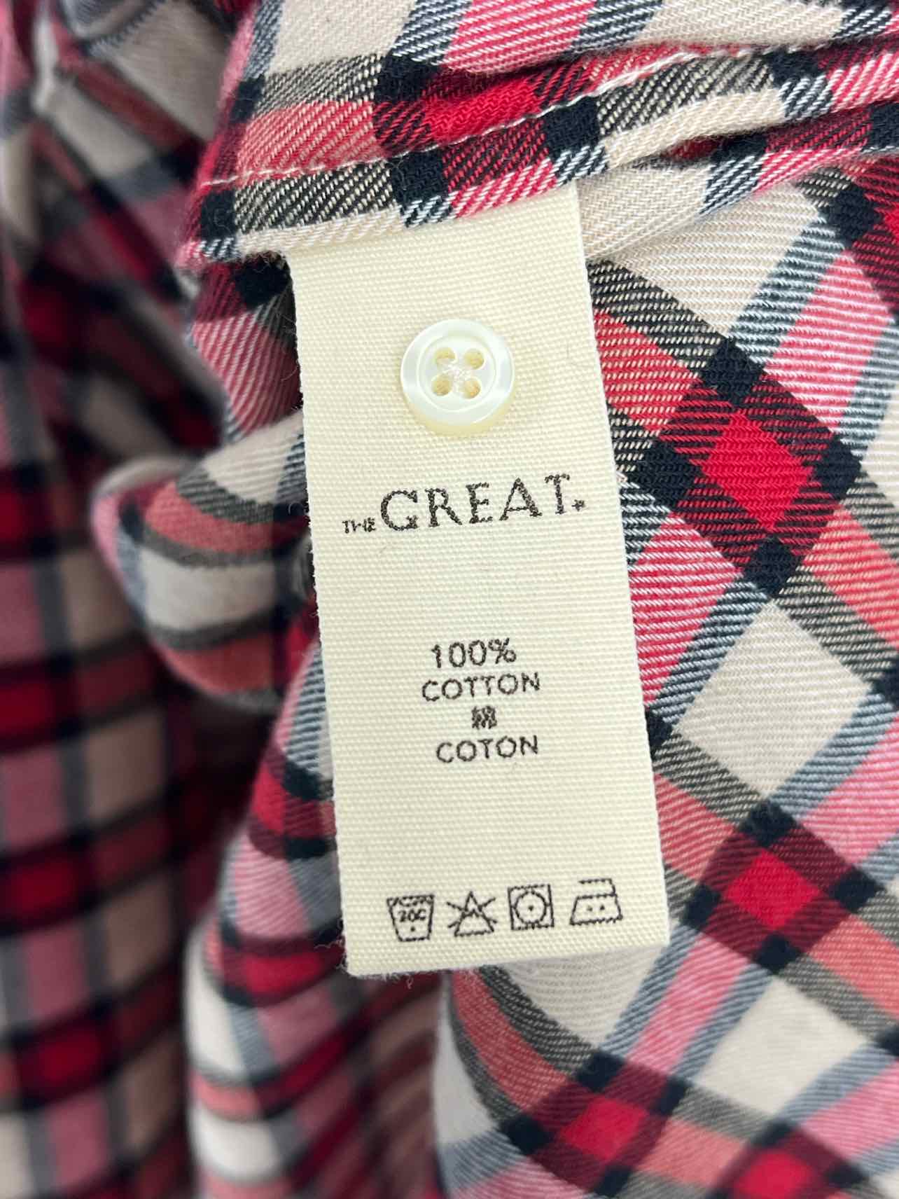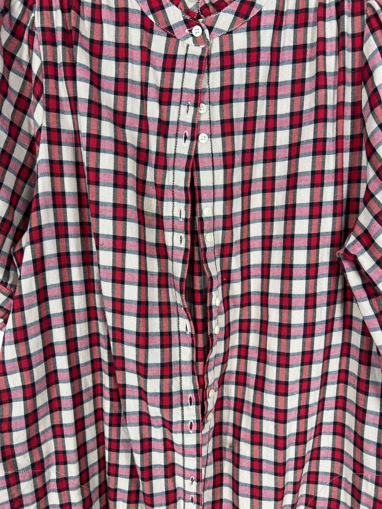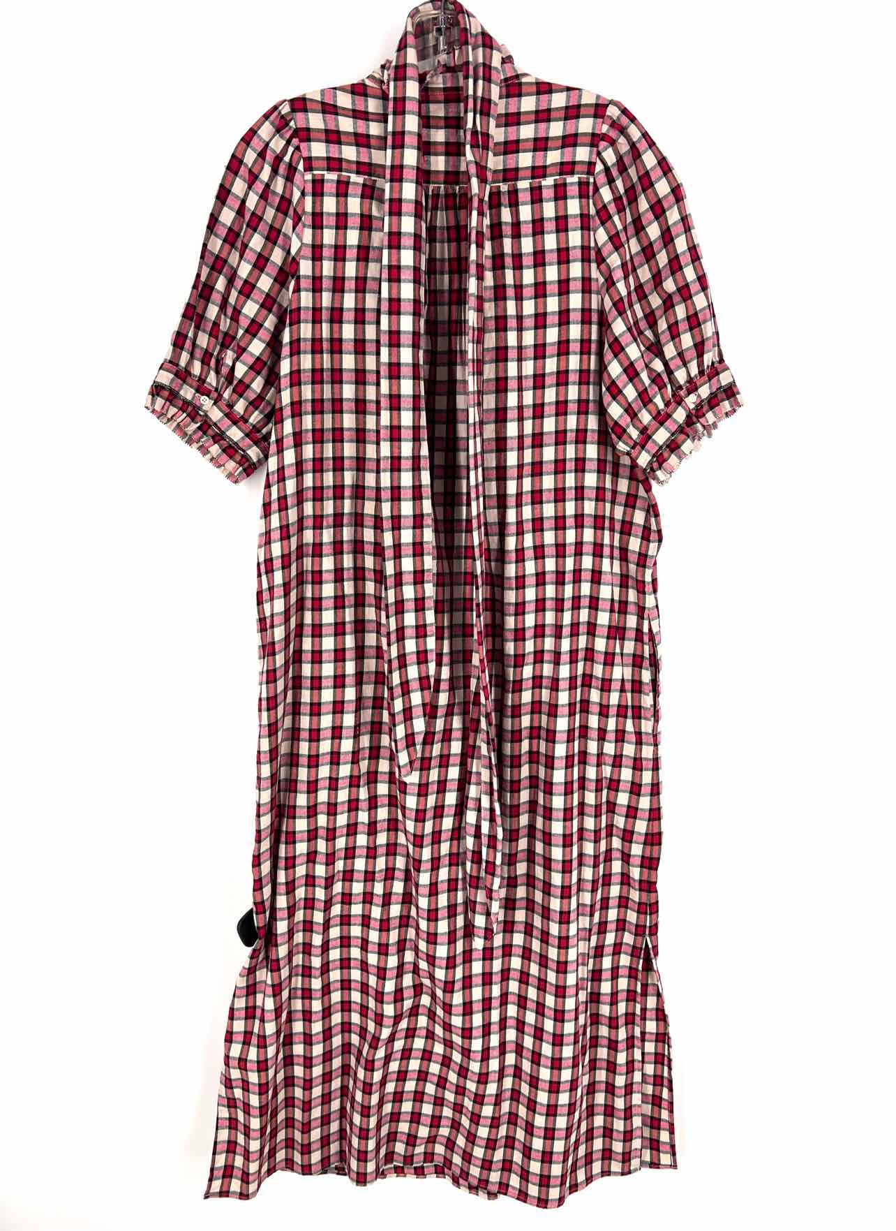 The Great. Size L Red/Beige Plaid Button-down Designer Dress Maxi