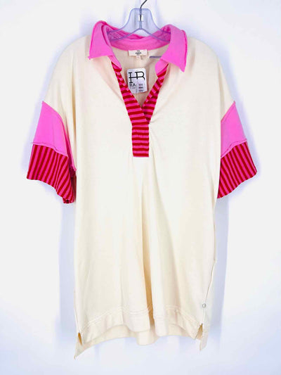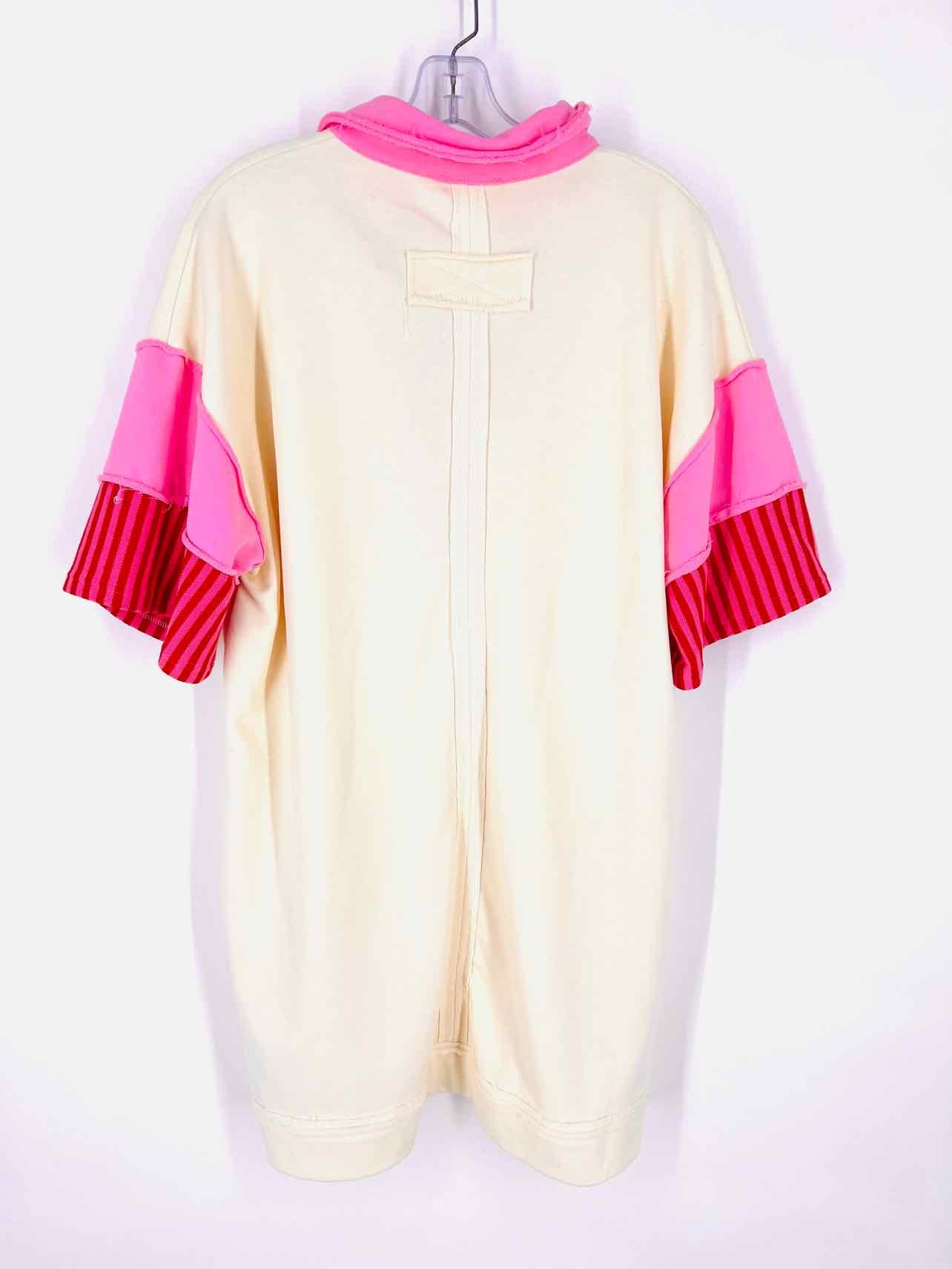 entro Size L Cream/Pink Color Block Raw Hem NEW Dresses Dress