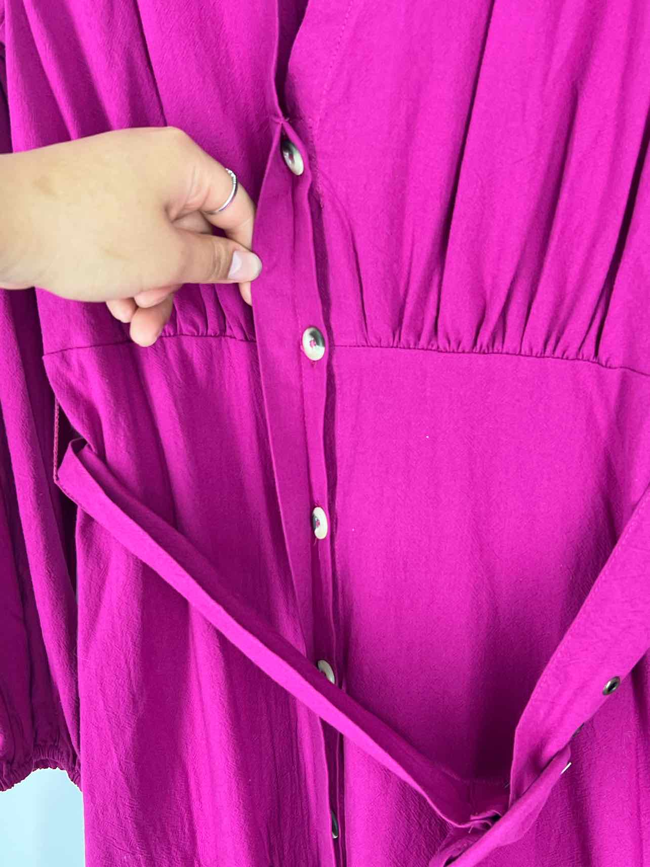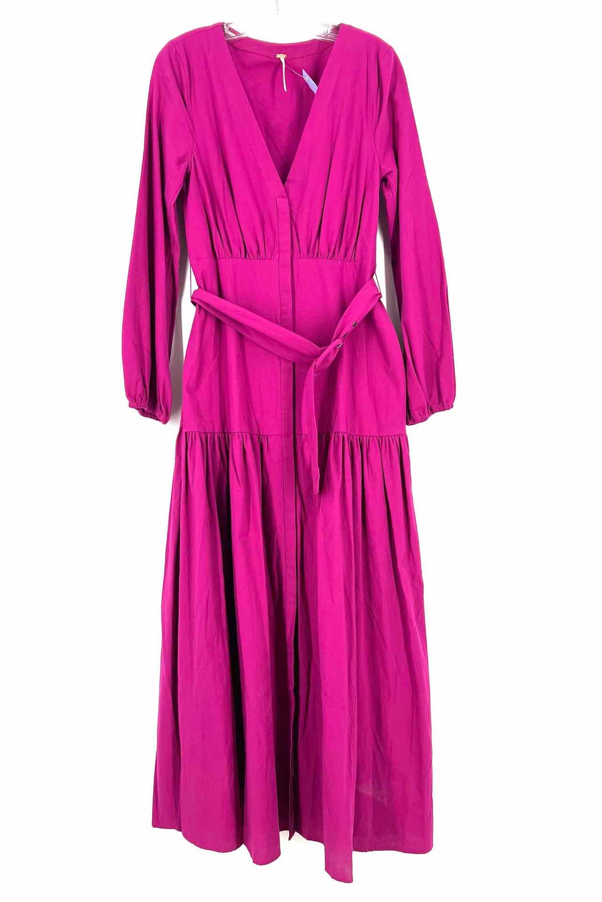 Free People Size M Magenta Button-down Belted Designer Dress Maxi