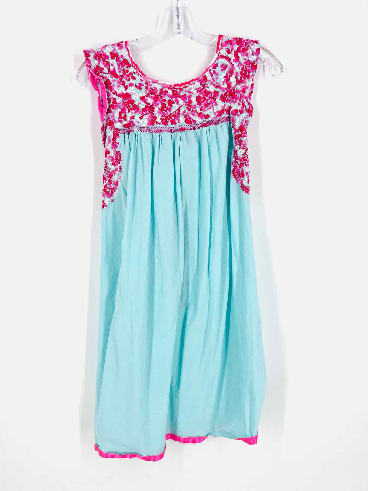 Mi Golondrina Size XS Mint/Pink Embroidered Dresses Dress
