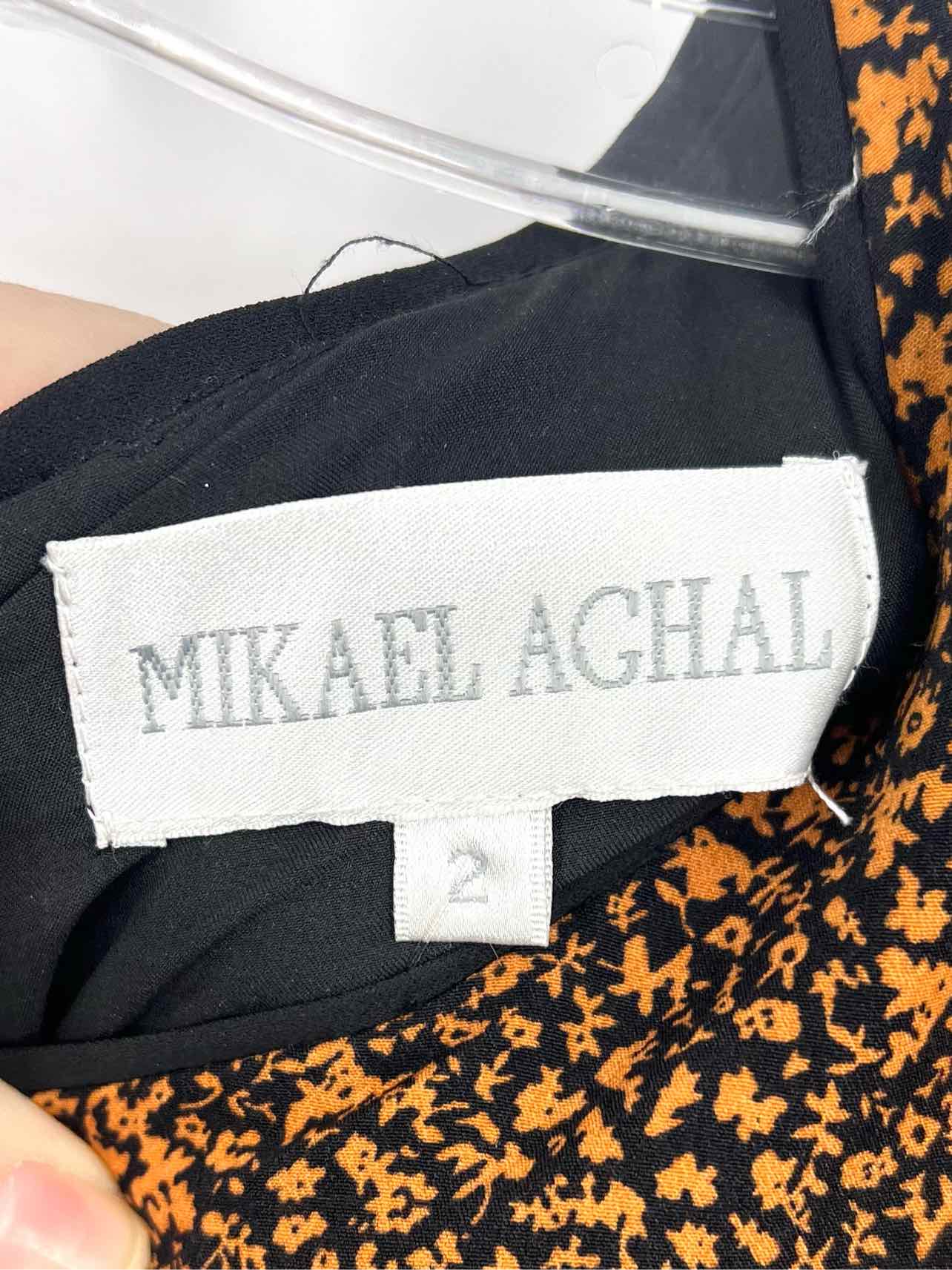 Mikael Aghal Size 2 Black/Orange Floral Designer Dress