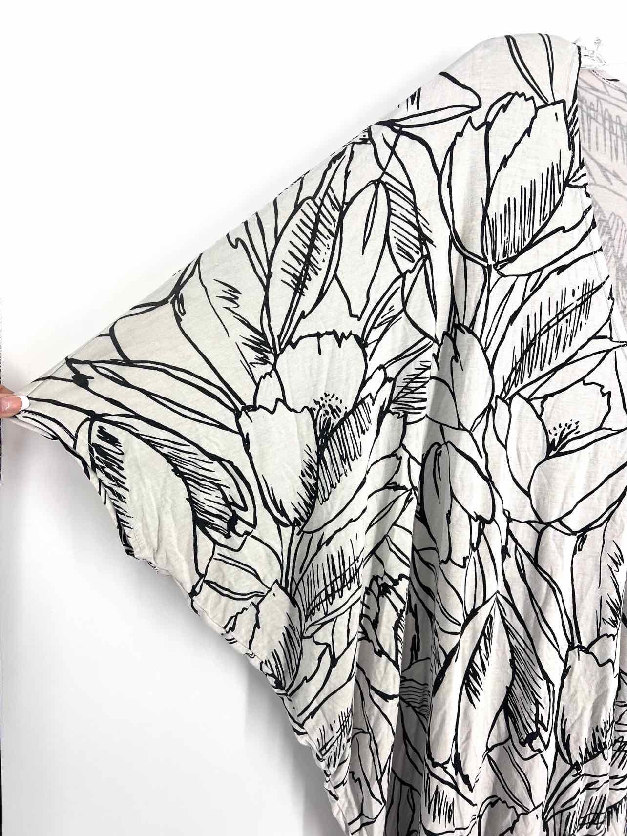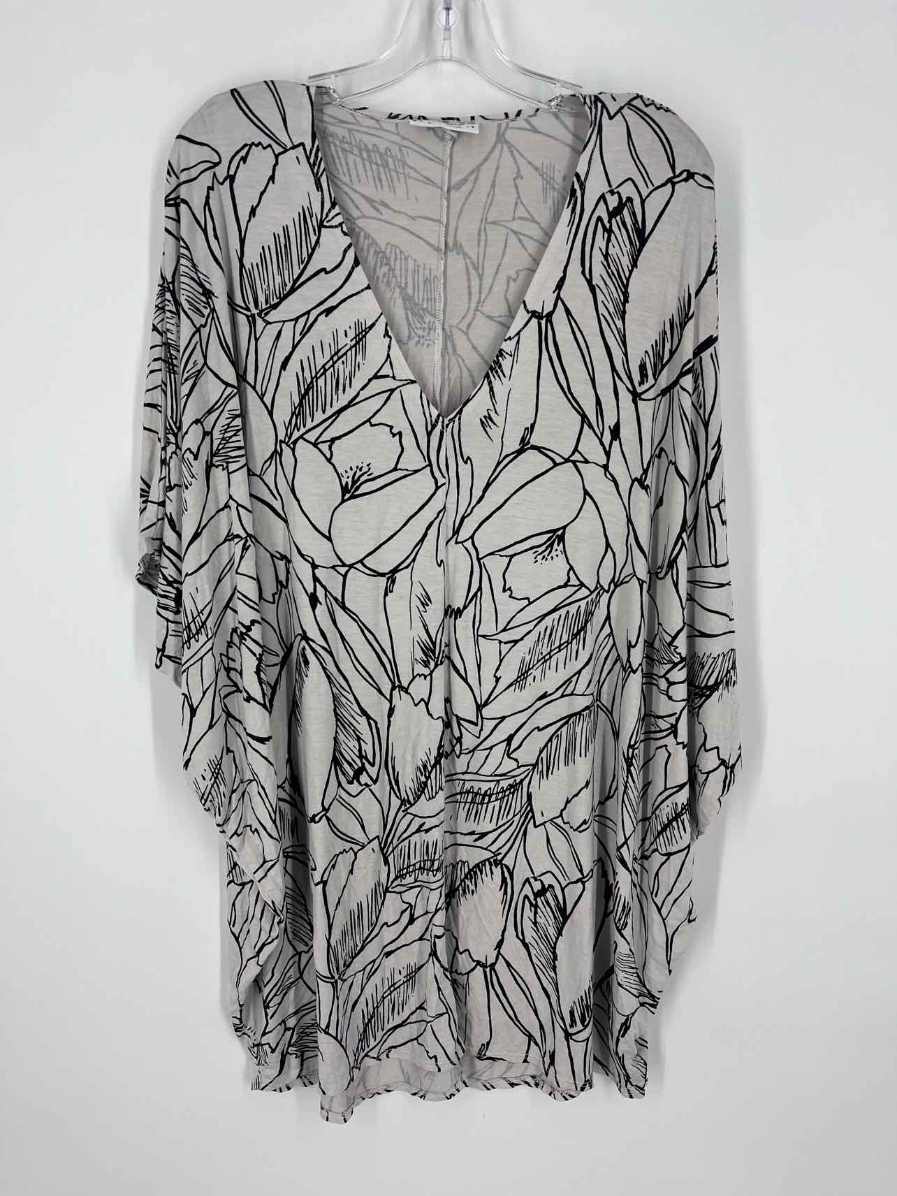Bryn Walker Size M Lt Gray/Black Dolman Sleeve Floral Designer Tunic