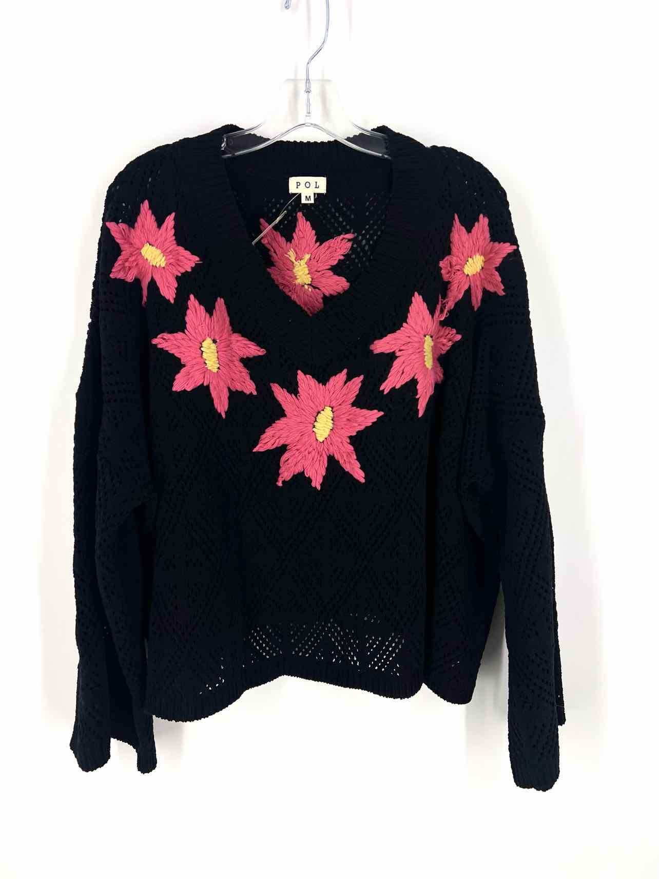 POL Size M Bk/Pk/Wh Floral Knit Sweaters Sweater