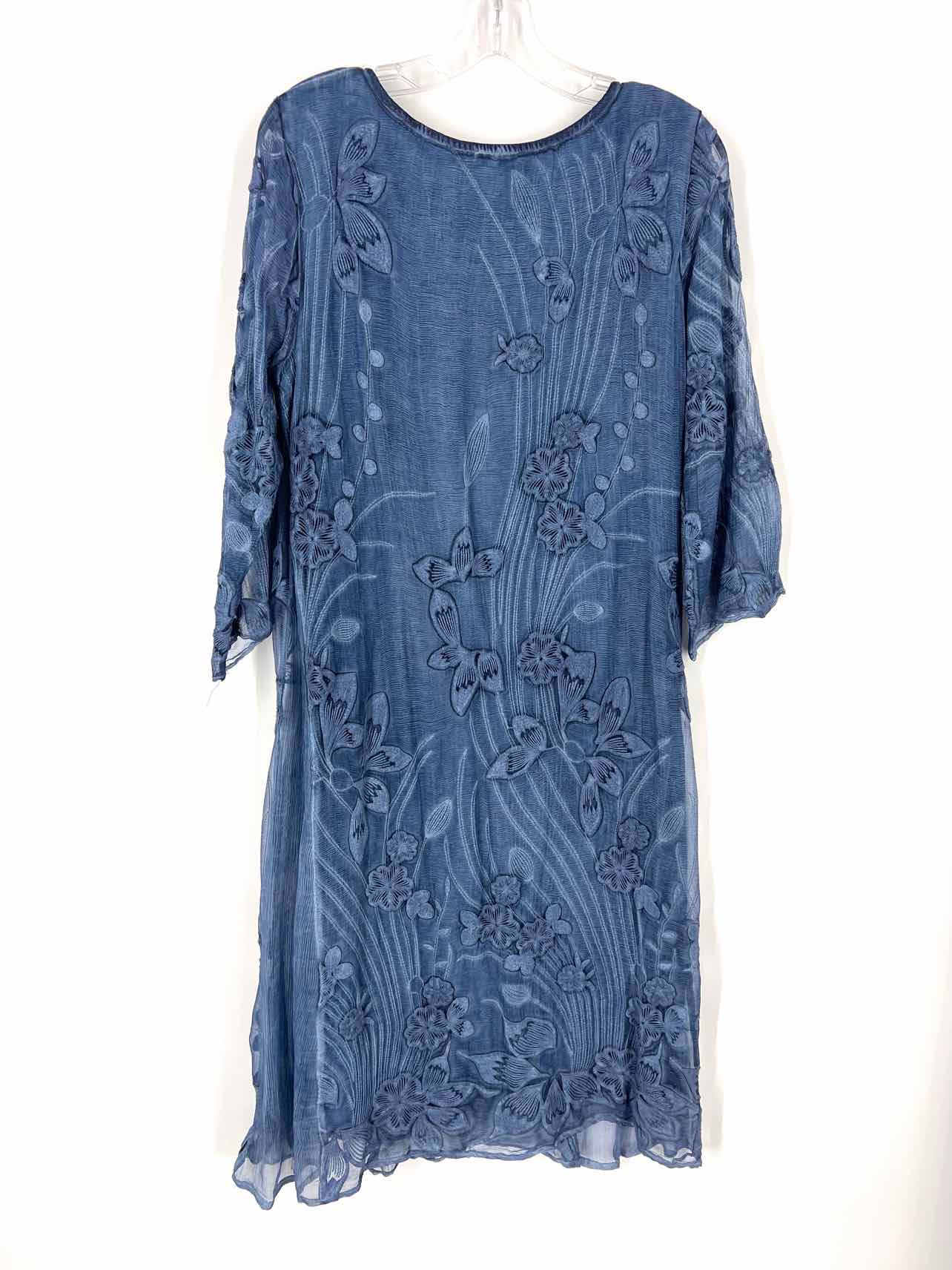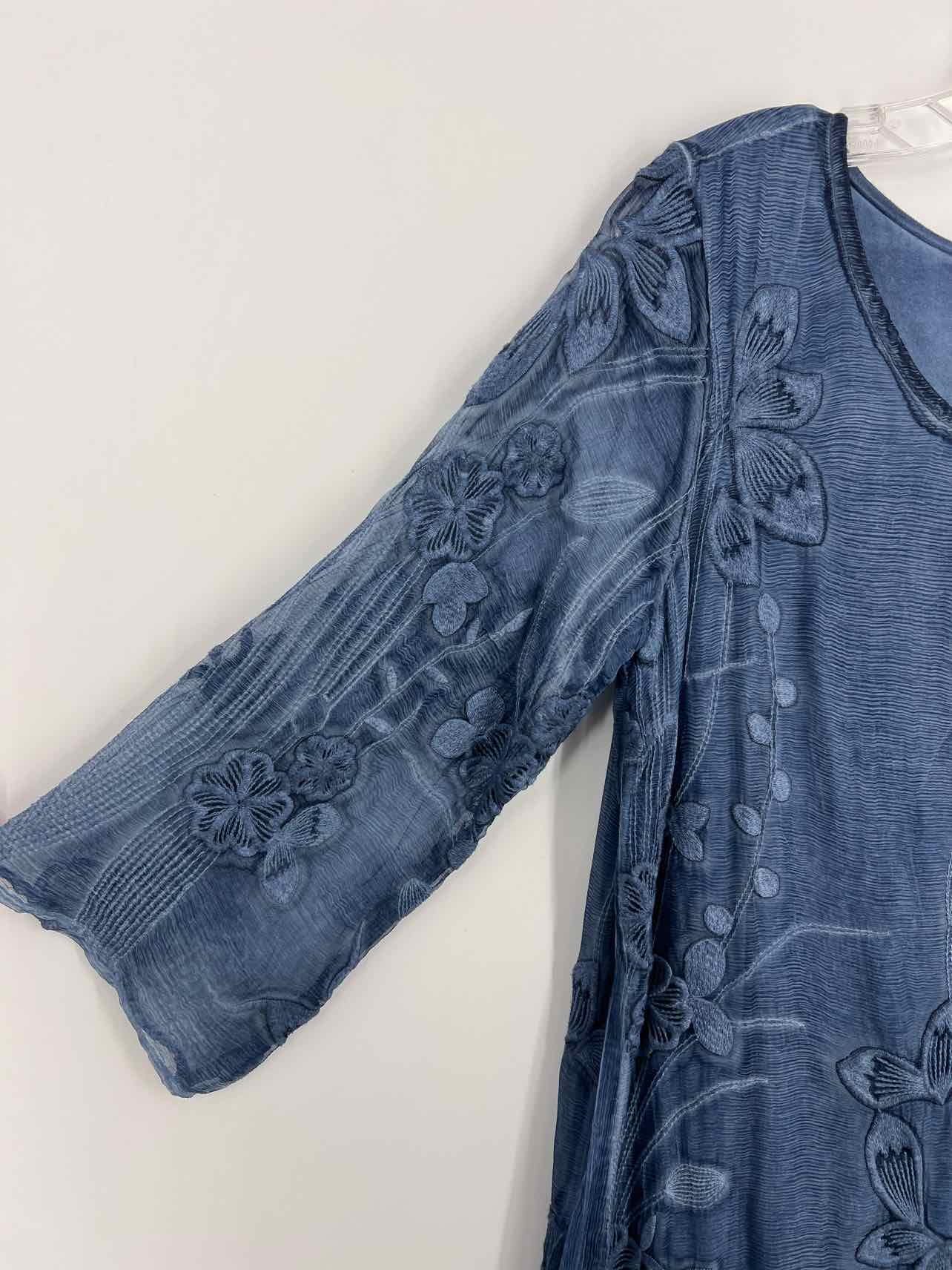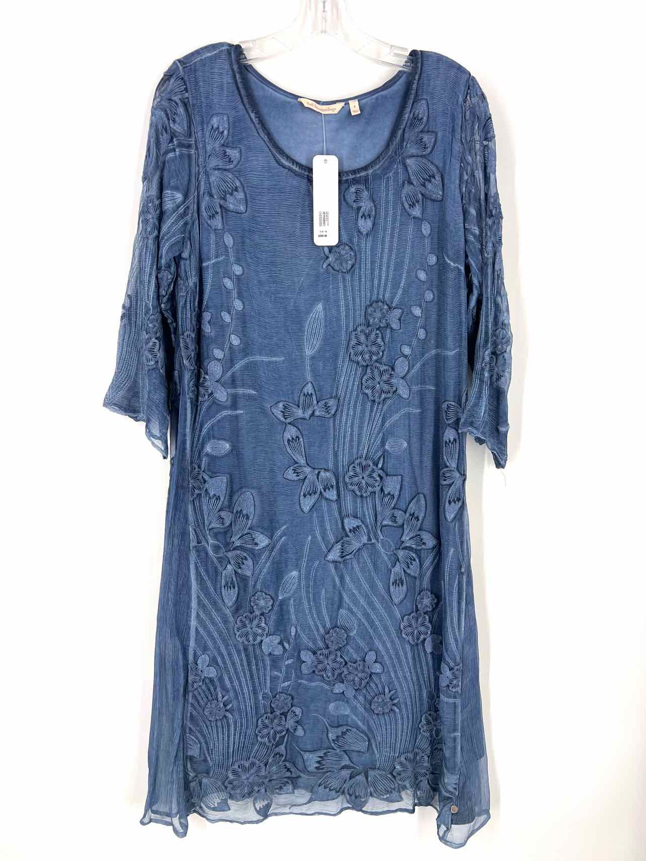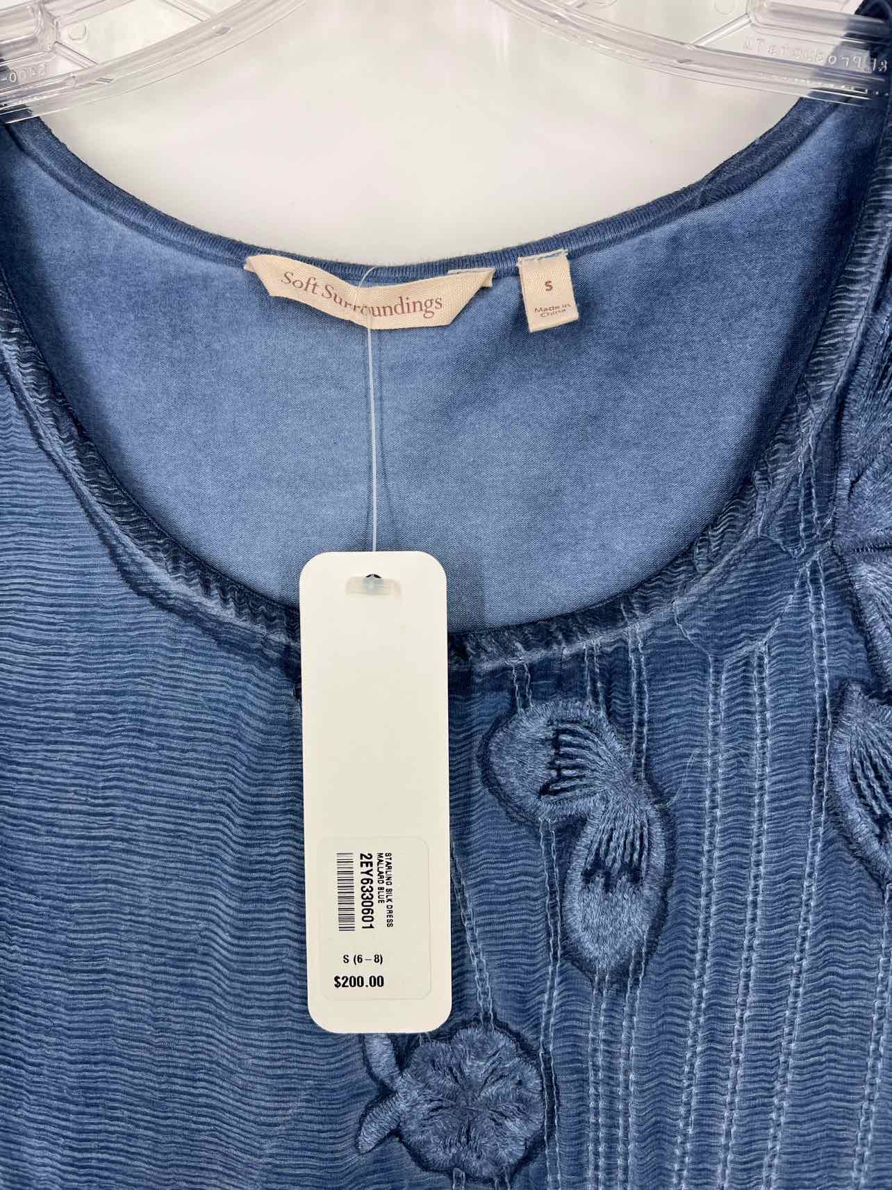 Soft Surroundings Size S Dk Slate Floral Embroidered NEW Designer Dress