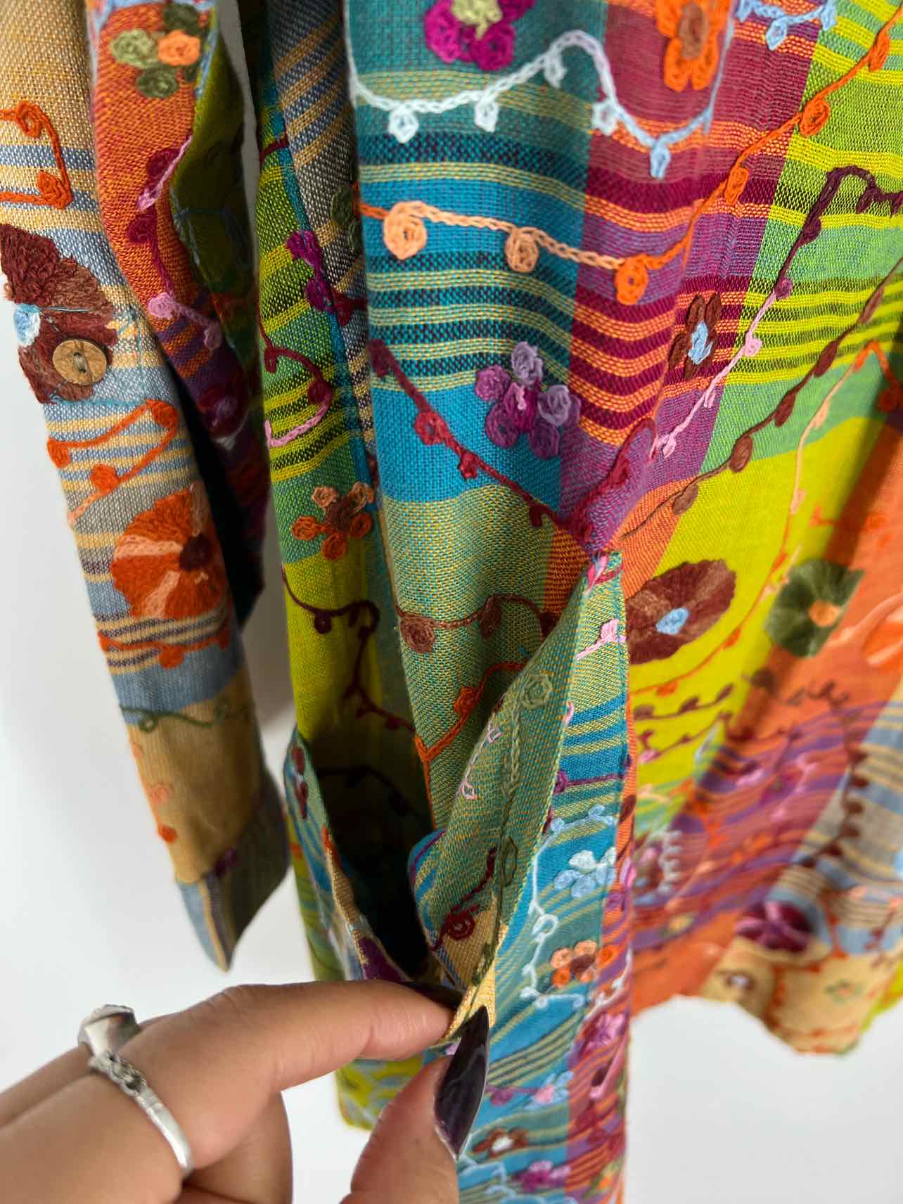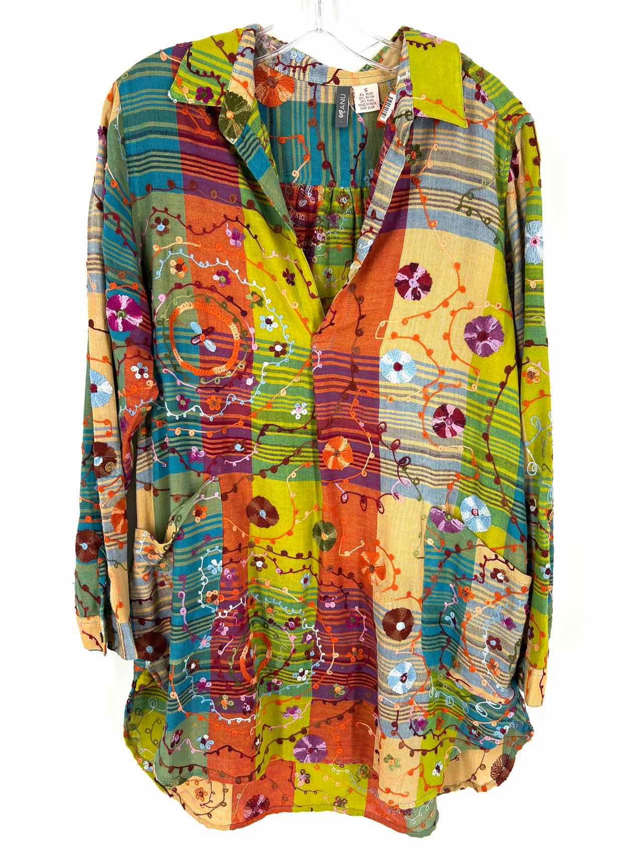 Anu Size S Lime Green/Multi Floral Embroidered Designer Cardigan