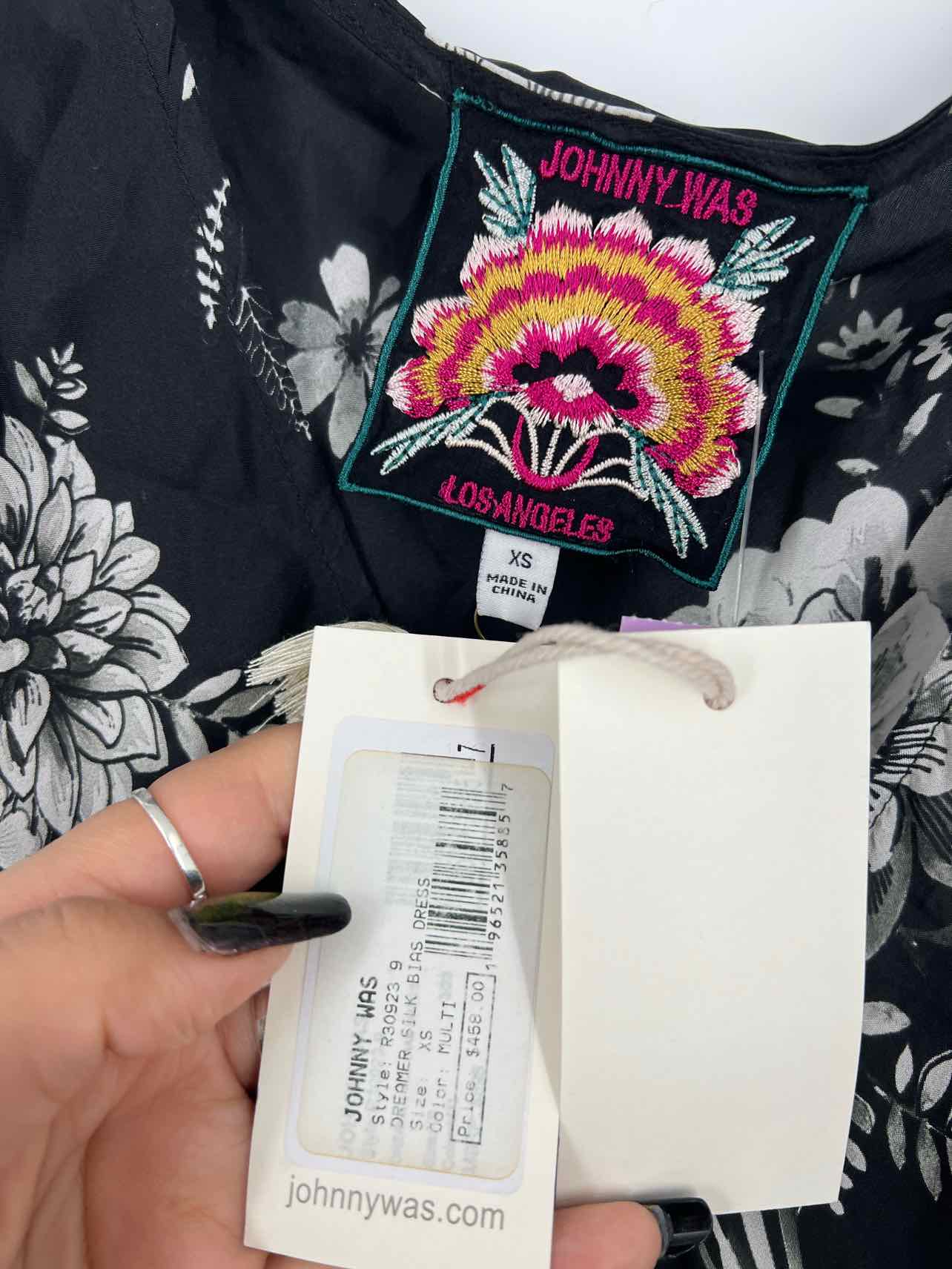Johnny Was Size XS Black/Gray Floral Silk NEW Designer Dress Maxi