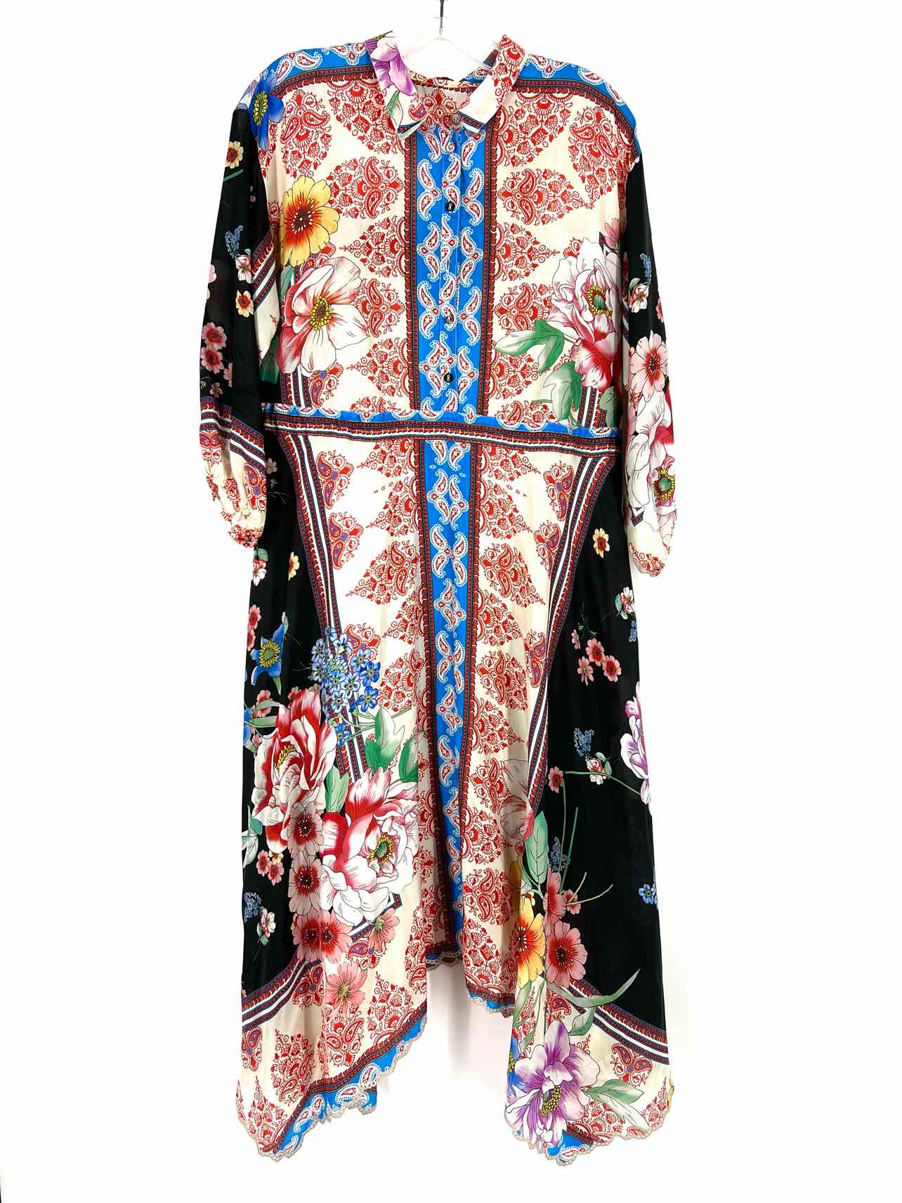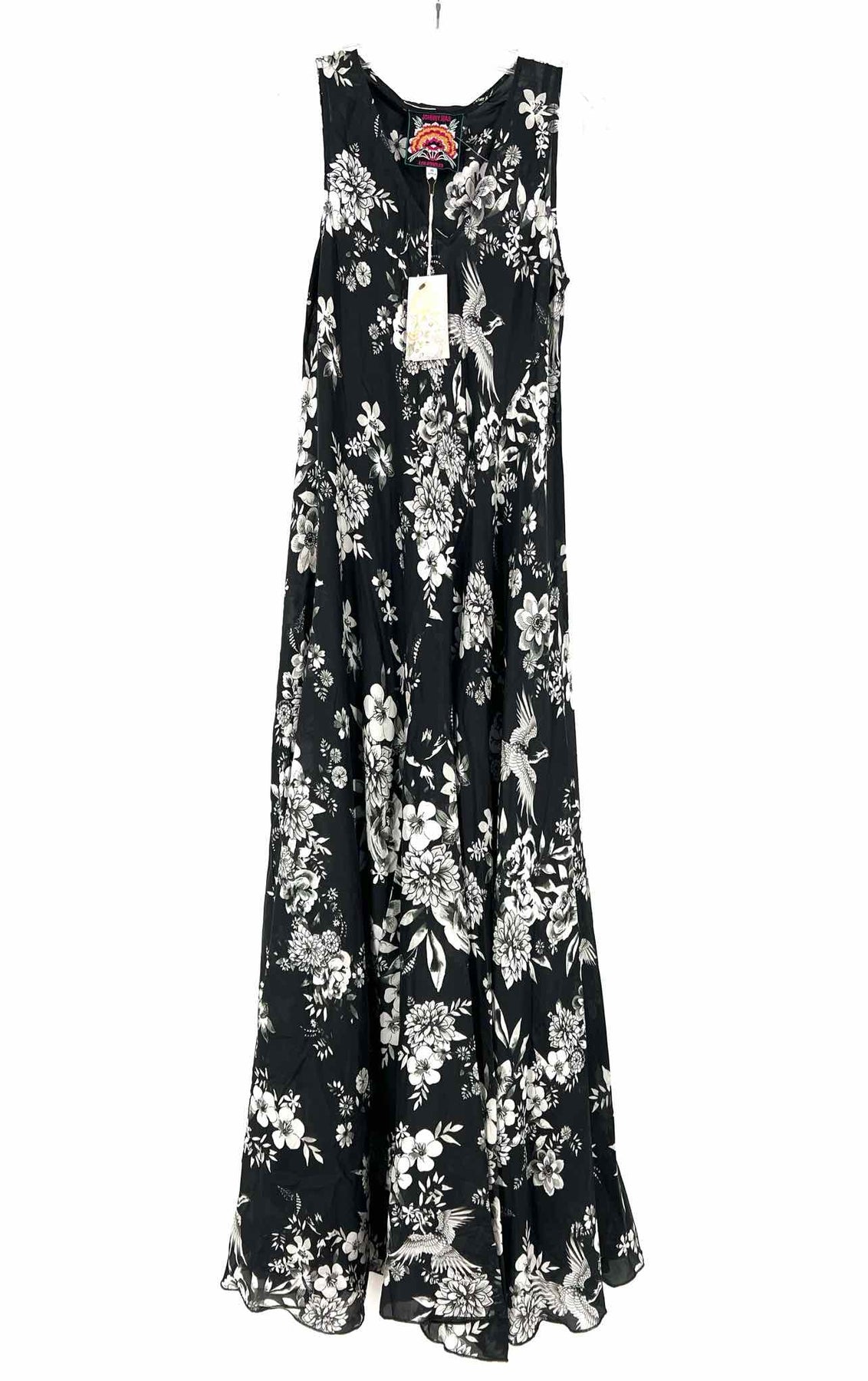 Johnny Was Size XS Black/Multi Floral Silk AS IS Designer Dress Maxi