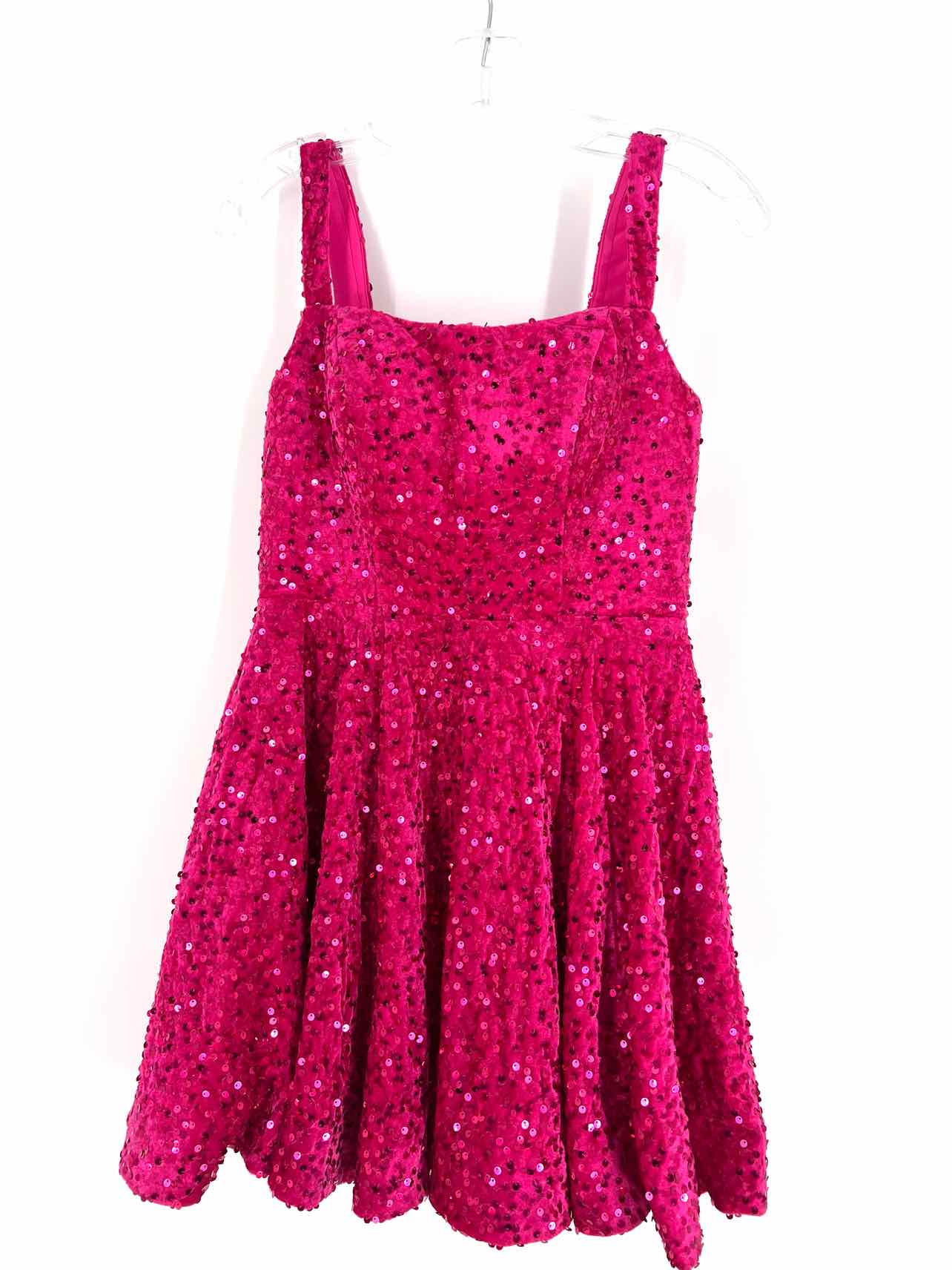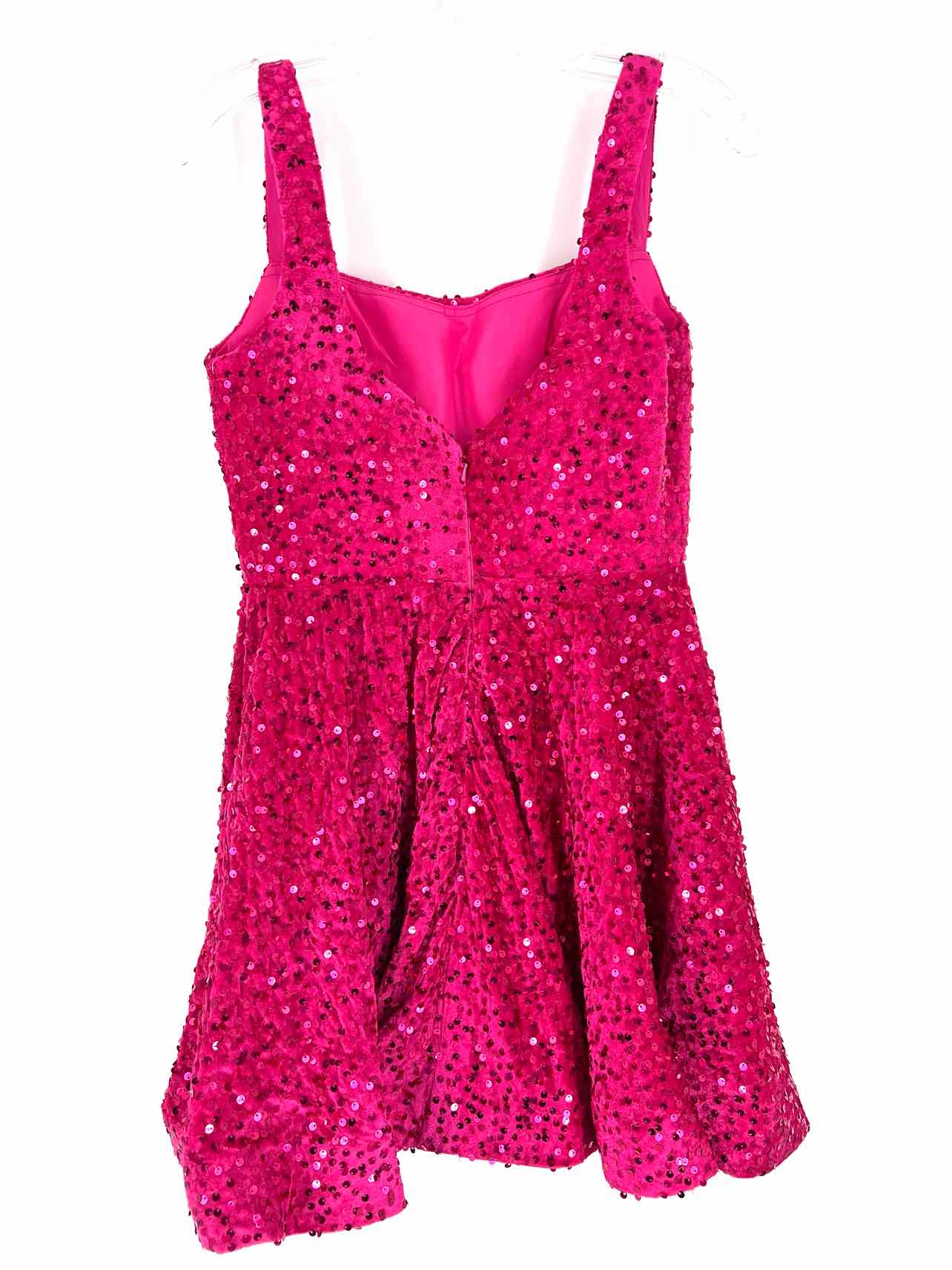 Size 4 Hot Pink Sequined Velvet Formal Wear Dress-Formal Wear