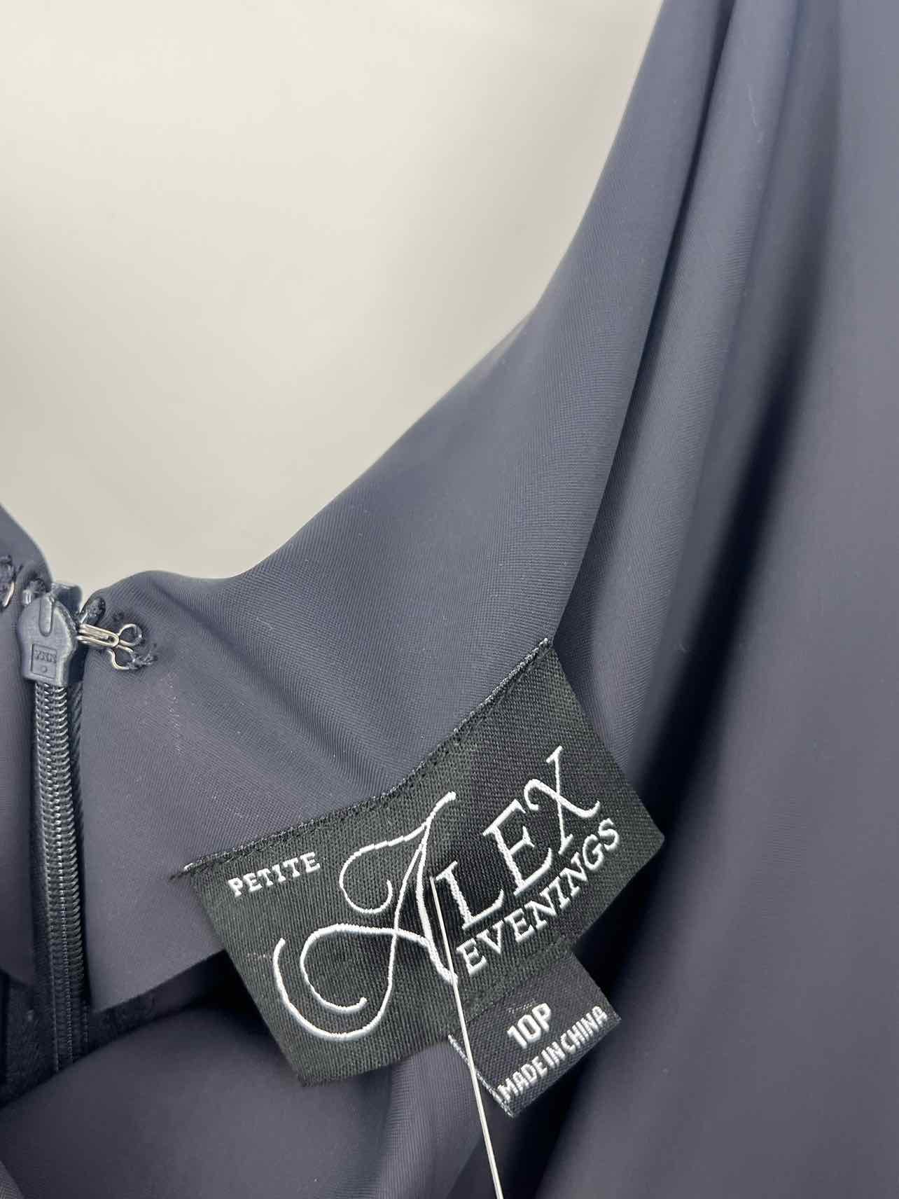 Alex Evenings Size 10P Charcoal Ruched Embellished Formal Wear Dress-Formal Wear
