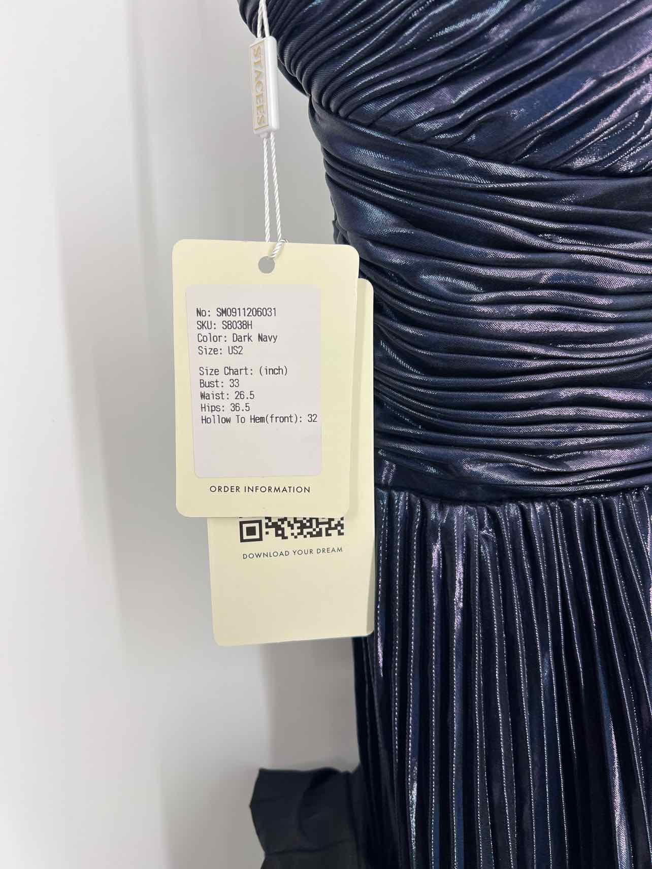 Stacees Size 2 Navy Pleated Keyhole NEW Formal Wear Dress-Formal Wear
