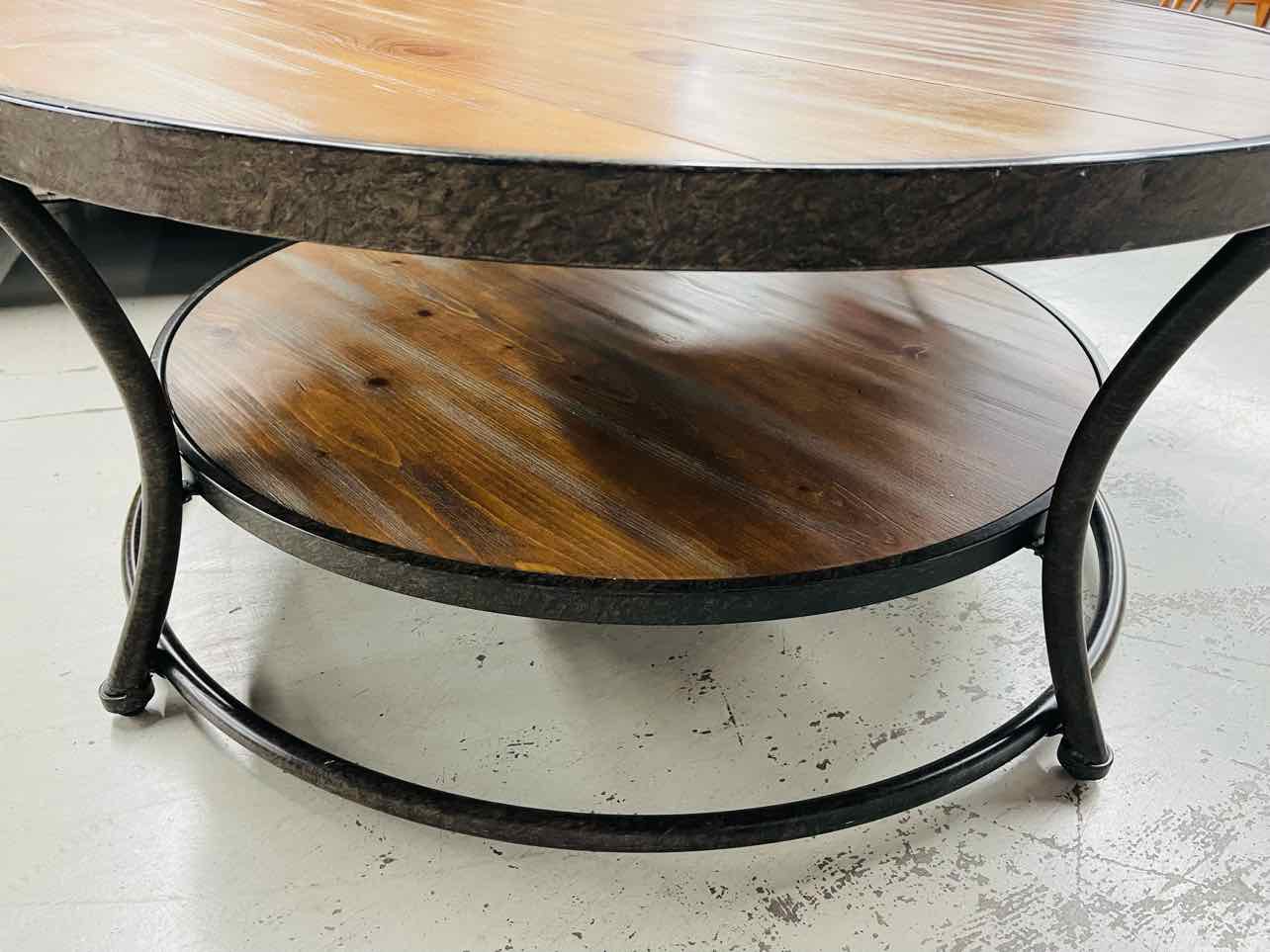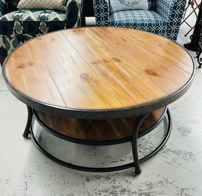 40" Diam. Brown/Gray Wood/Metal Round Furniture Coffee Table