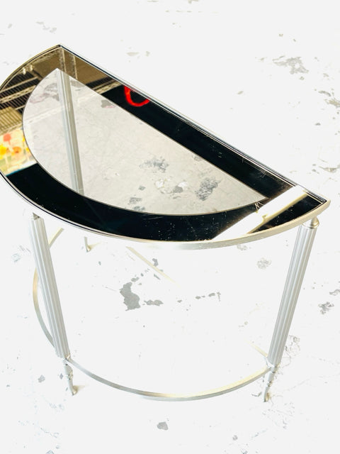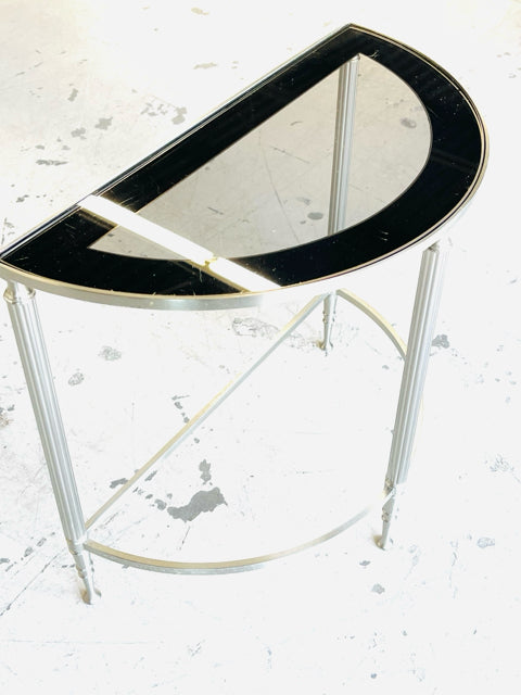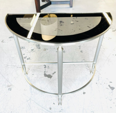 Silver Glass Half-Circle AS IS Furniture Side Table