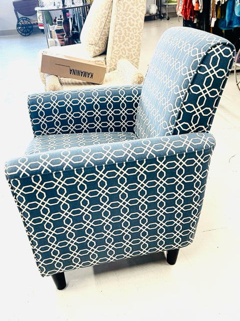 Handy Living Blue/White Upholstry Trellis Furniture Chair