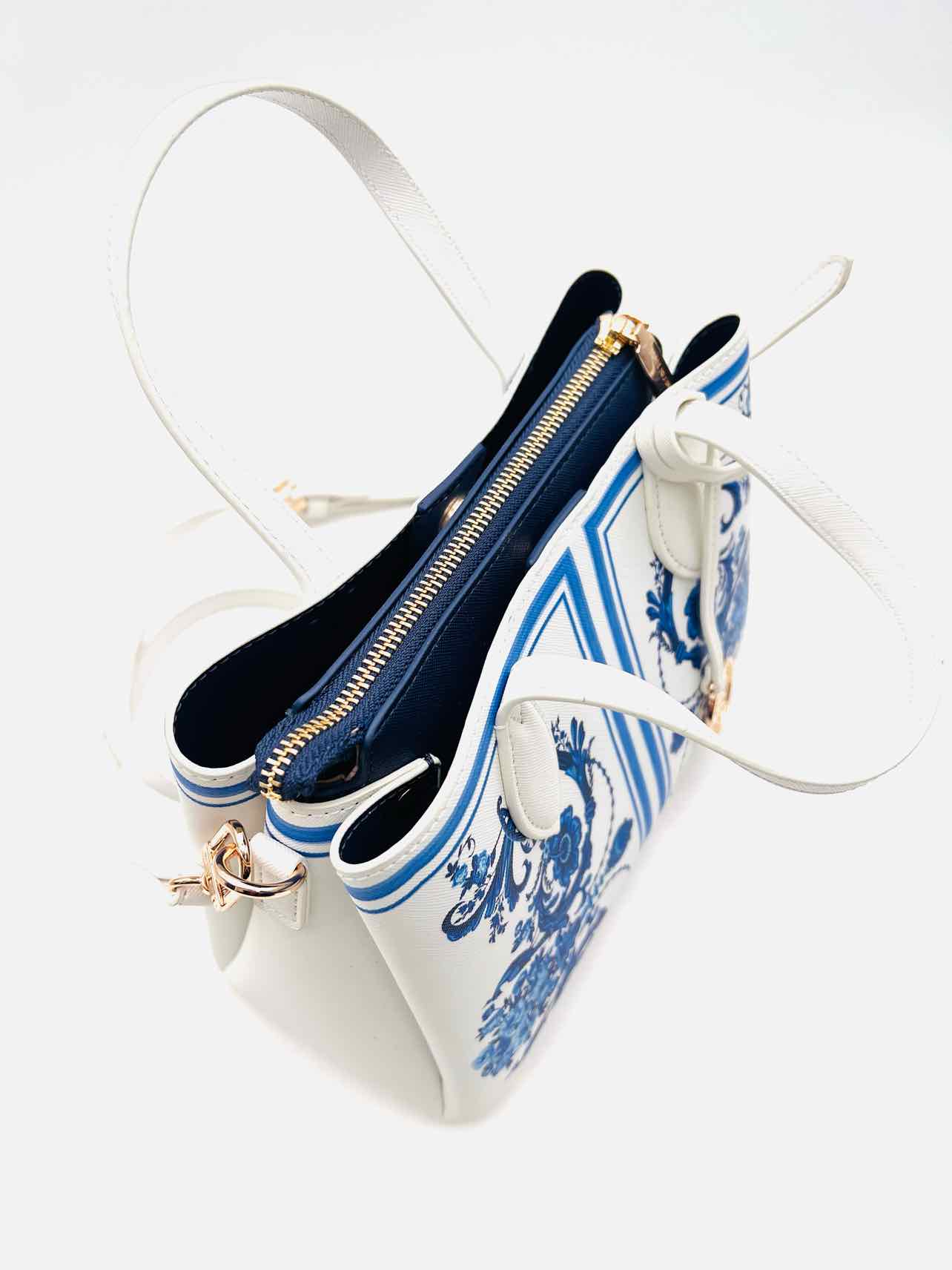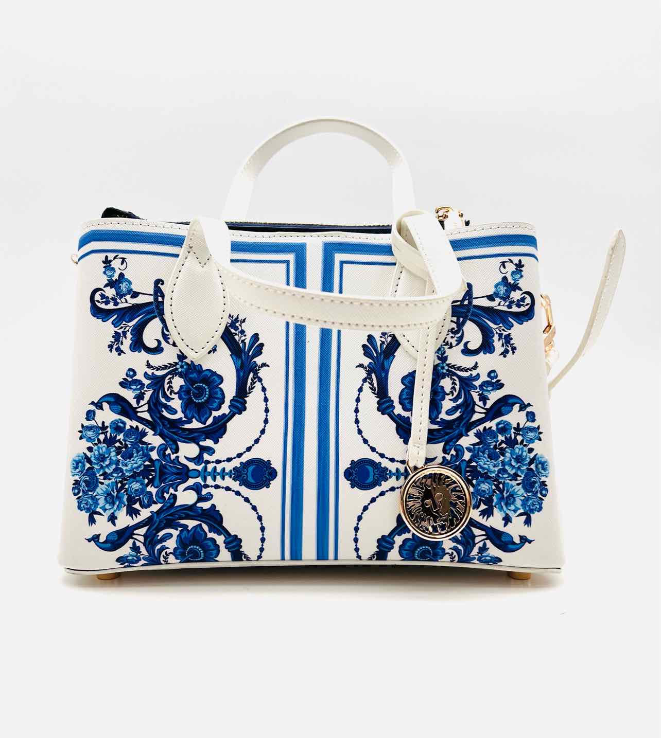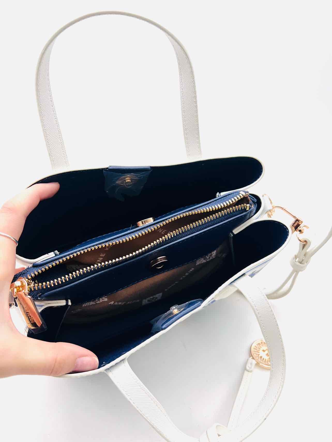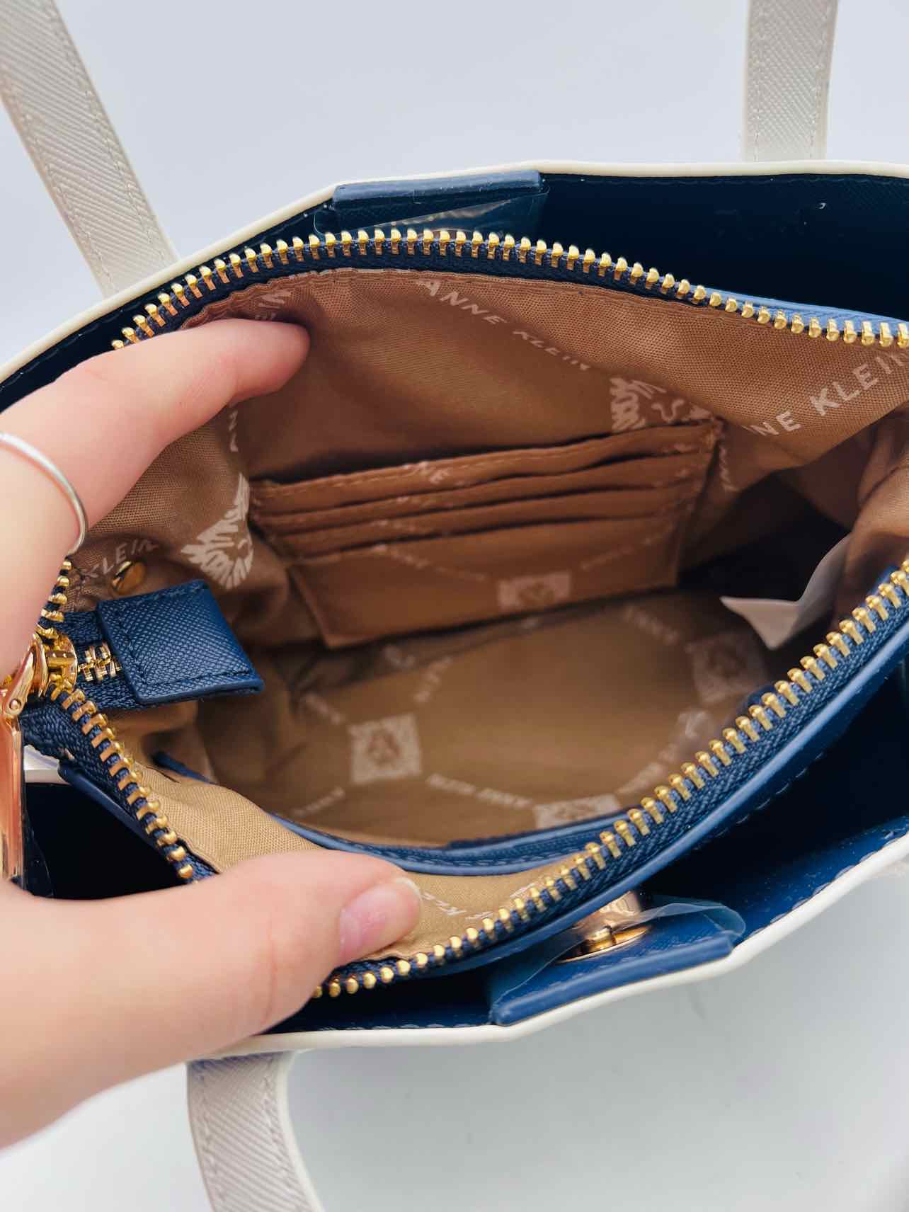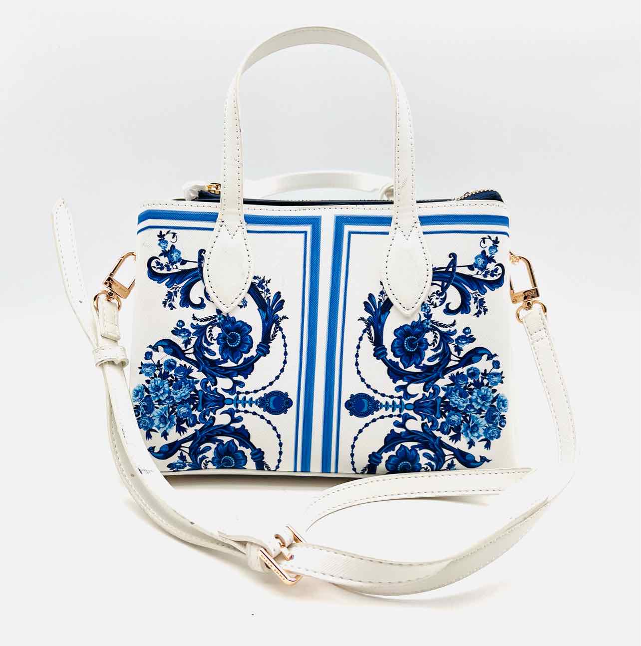Anne Klein White/Blue Floral Faux Leather Purses Satchel