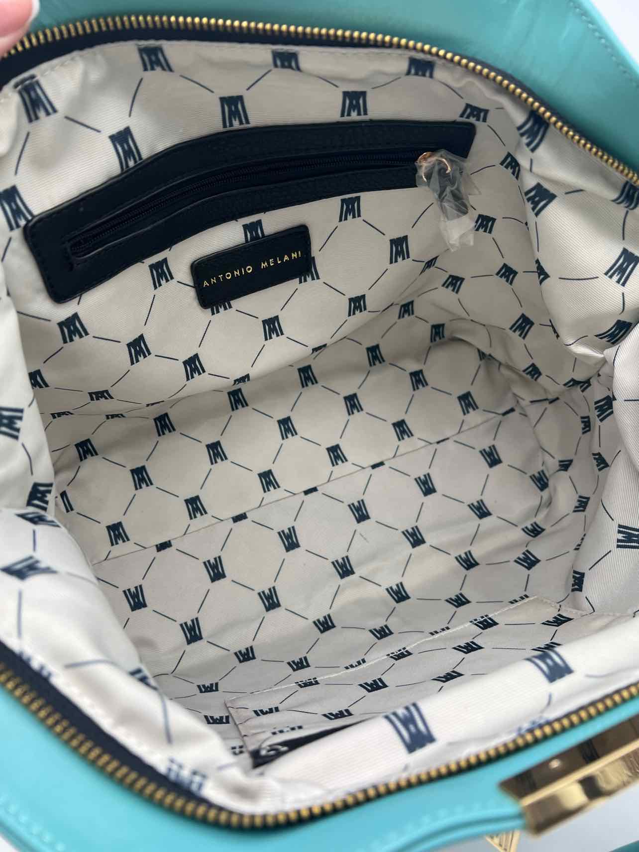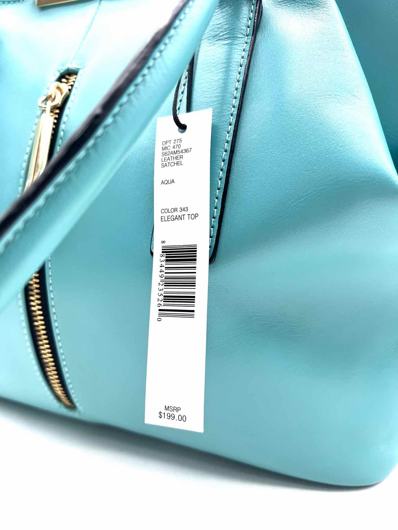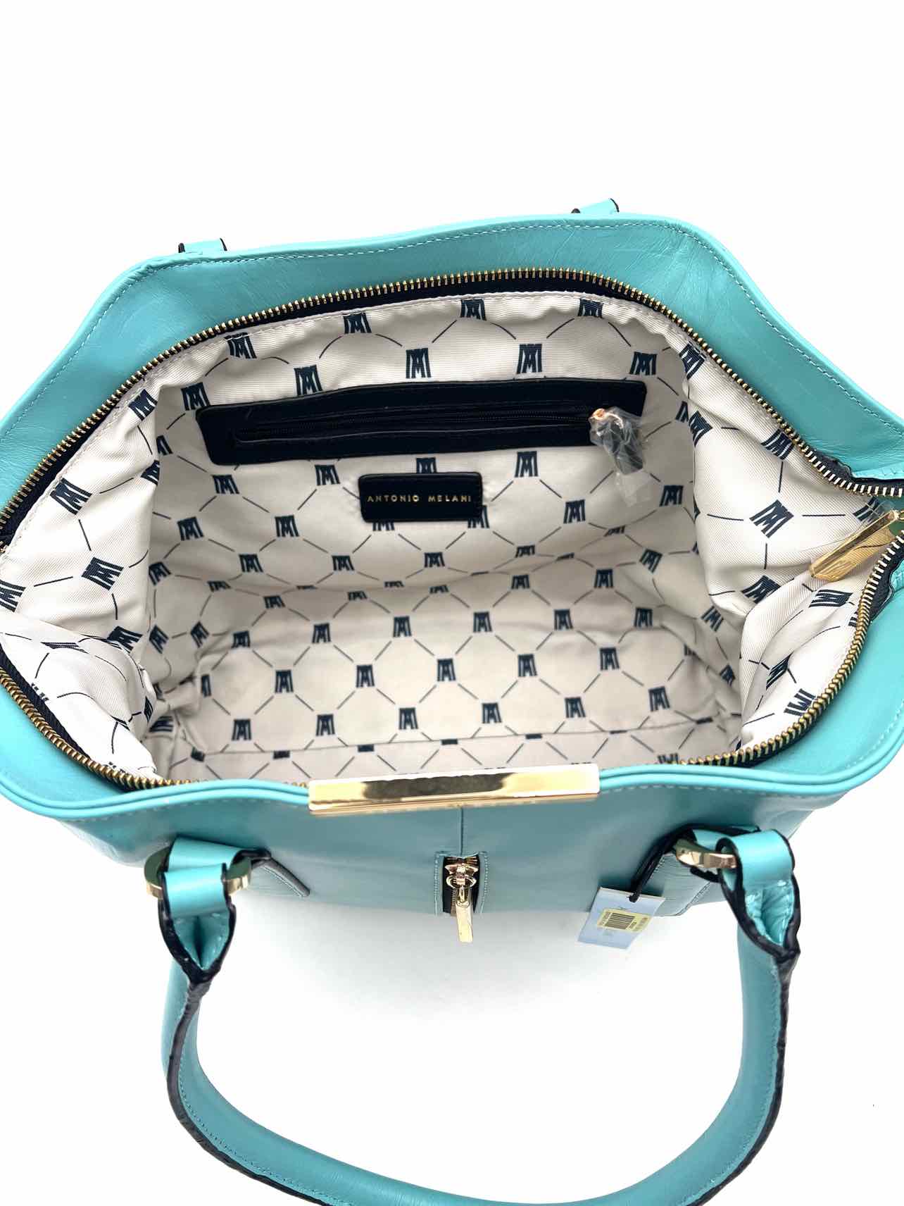 Antonio Melani Turquoise/Gold Zipper Leather NEW Purses Satchel