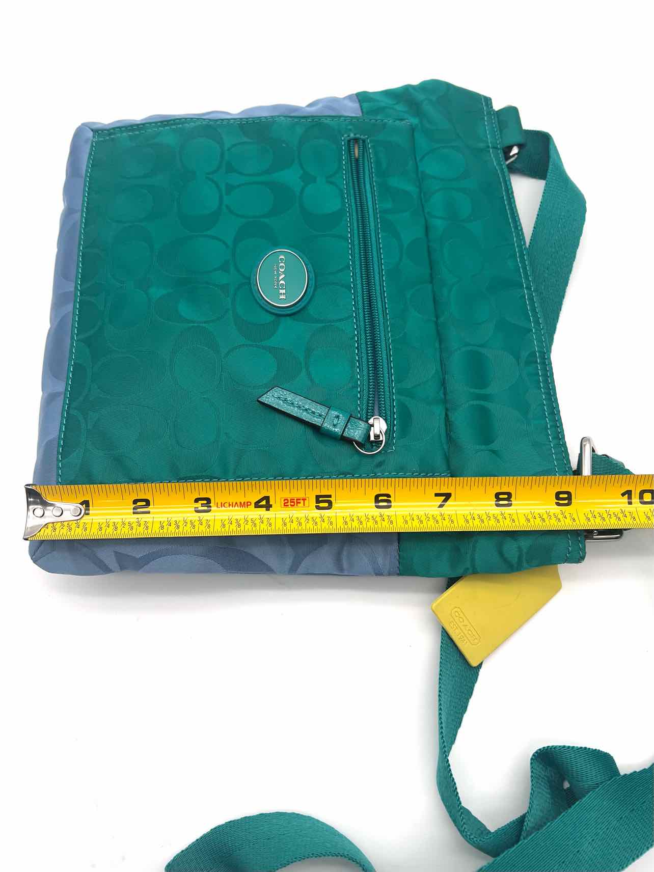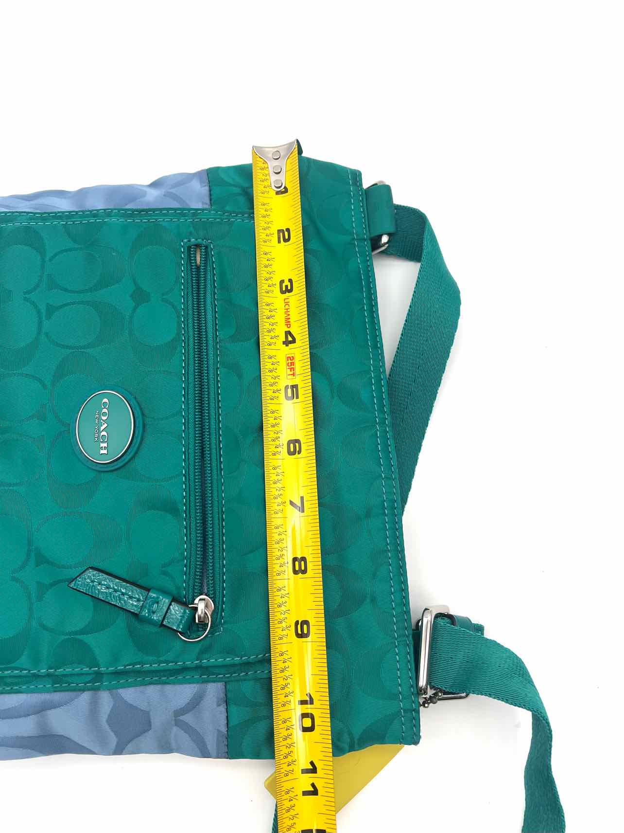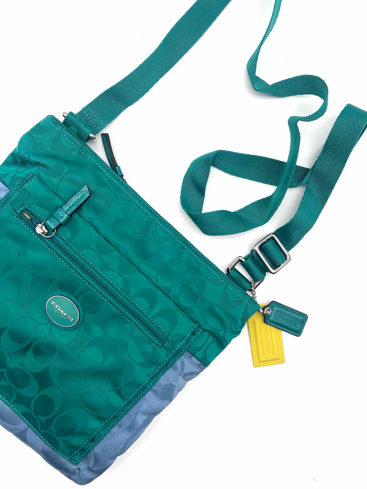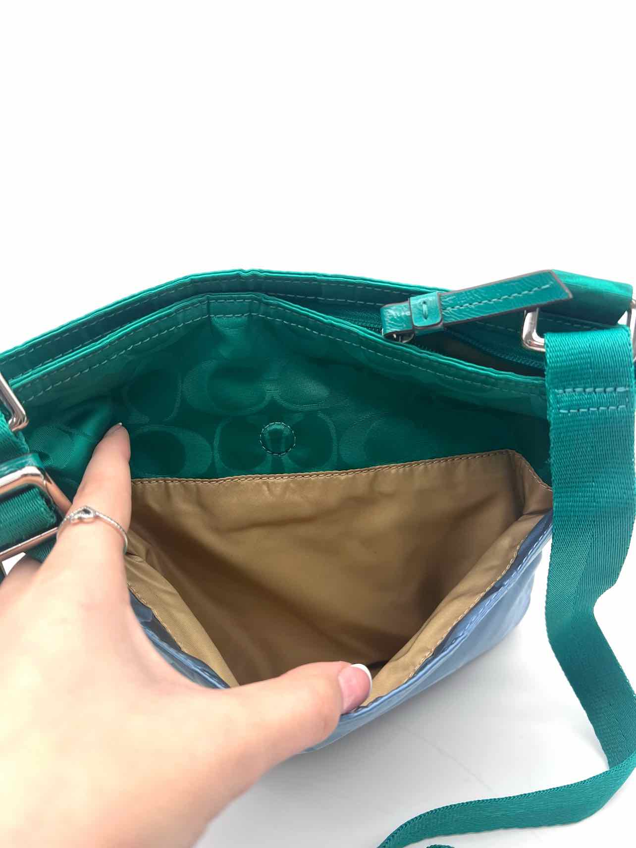 Coach Teal/Lt Blue Signature Colorblock Designer Crossbody Purse