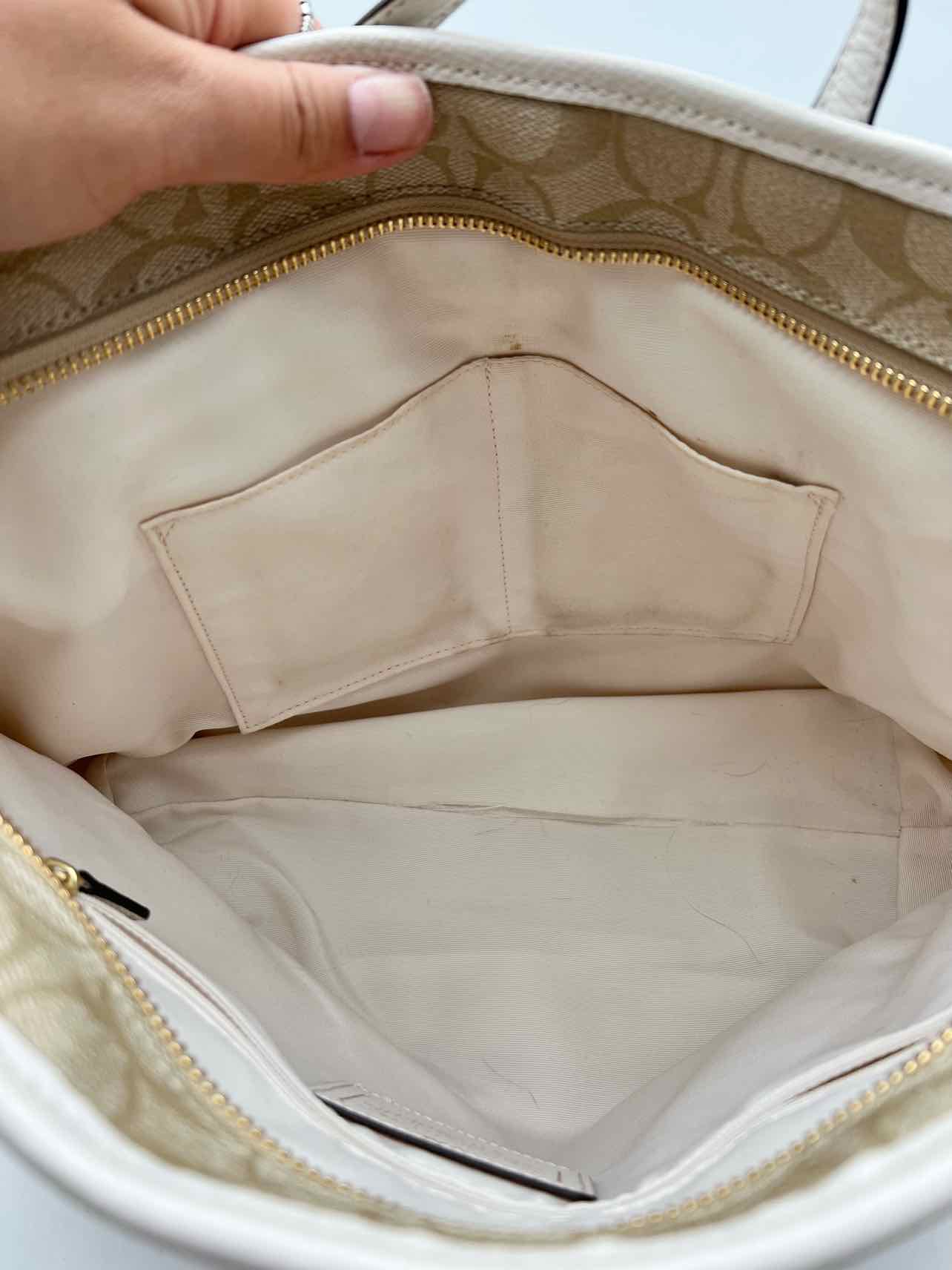 Coach Cream/White Signature Canvas Designer Tote
