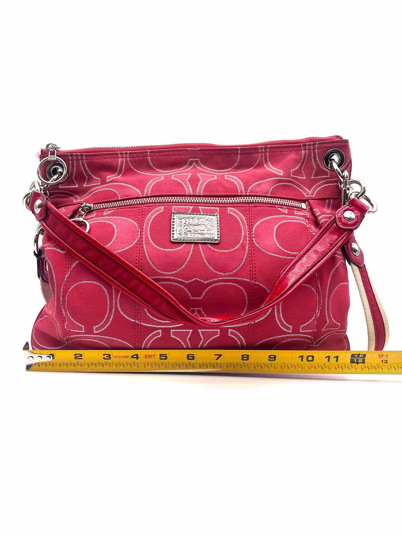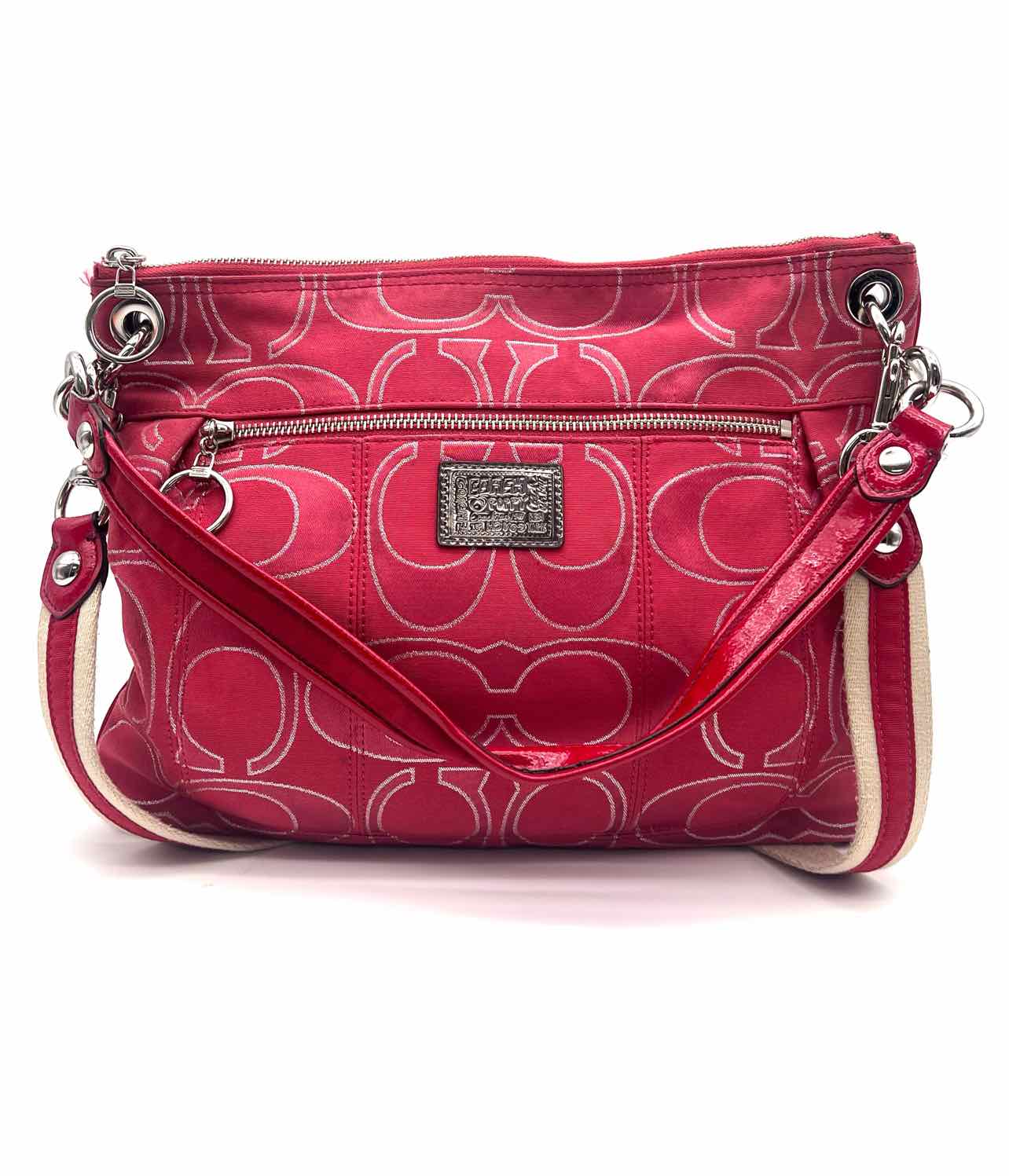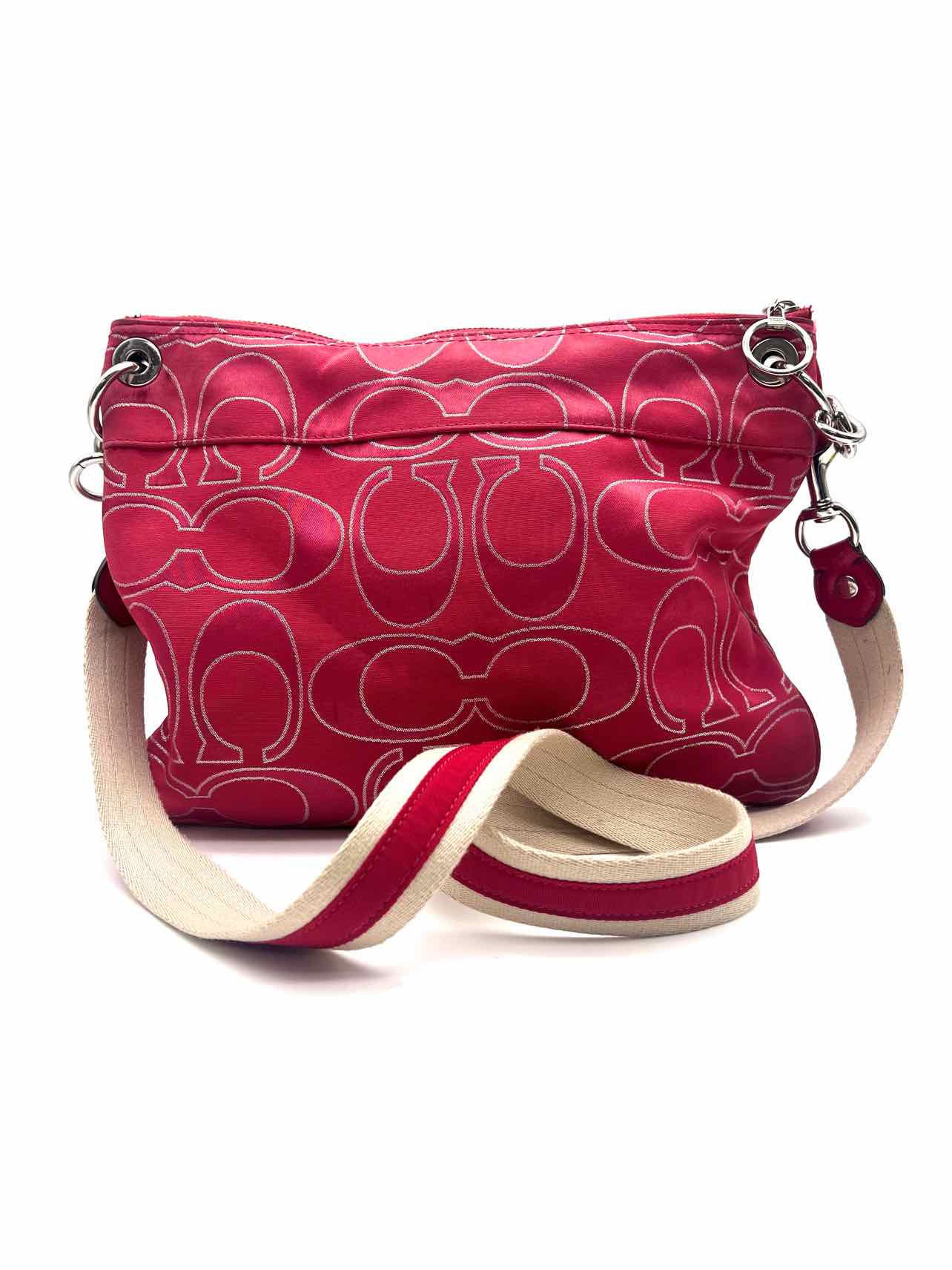 Coach Pink/Silver Signature Fabric AS IS Designer Crossbody Purse