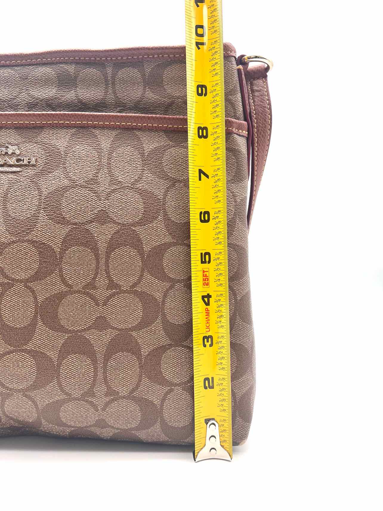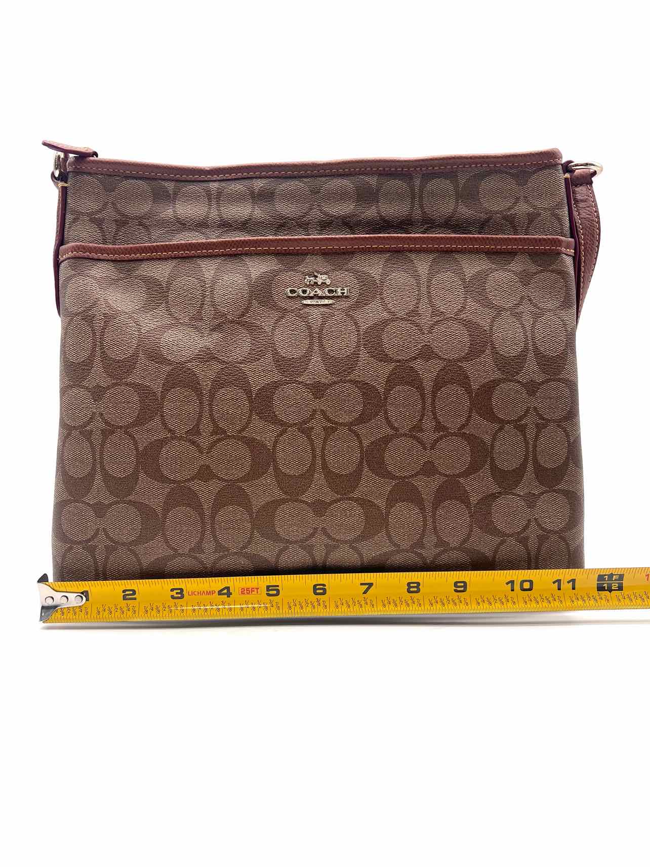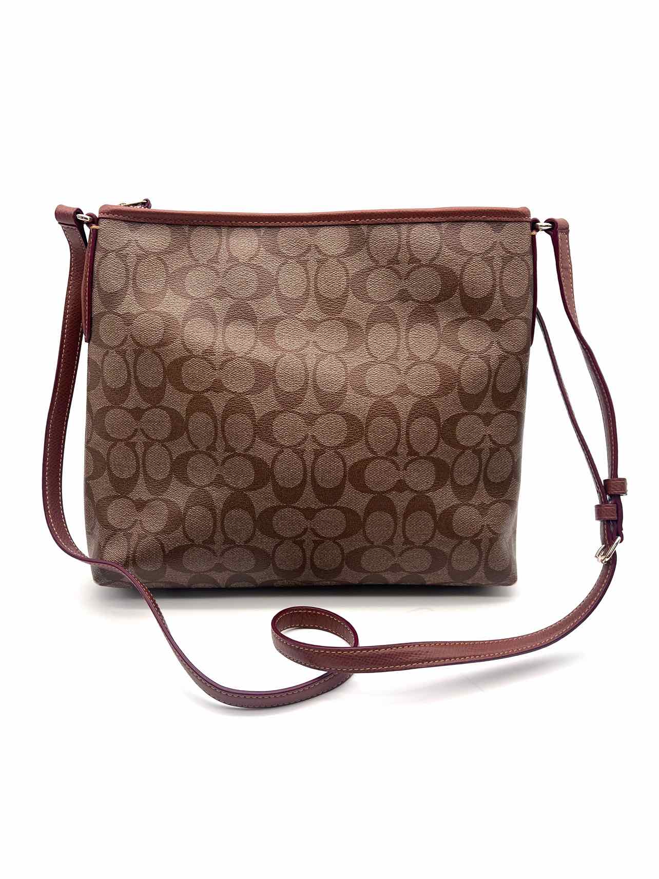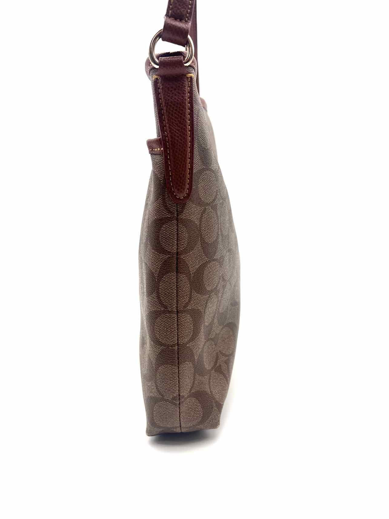 Coach Brown/Burgundy Signature Leather Trim W/ BAG! Designer Tote