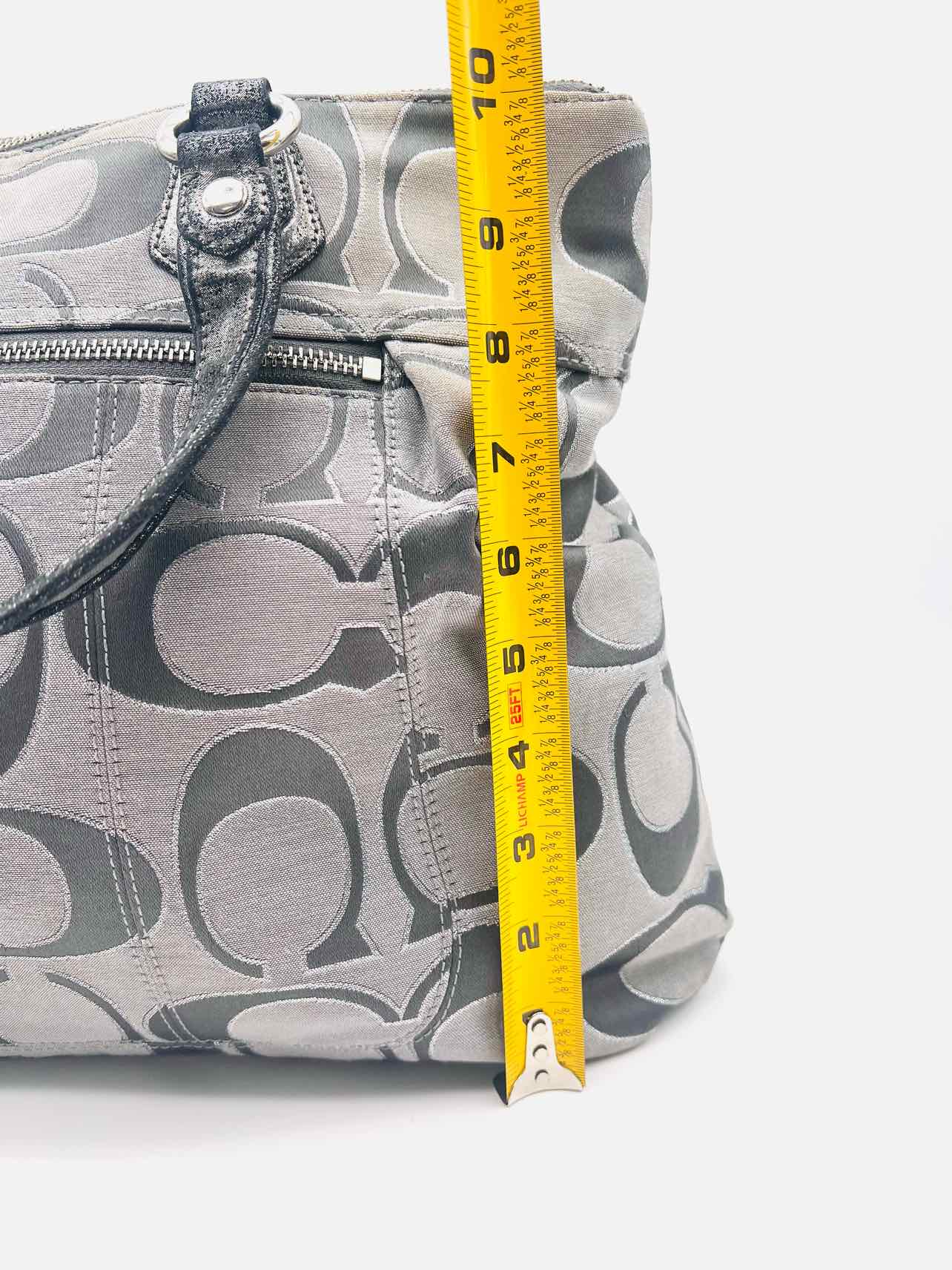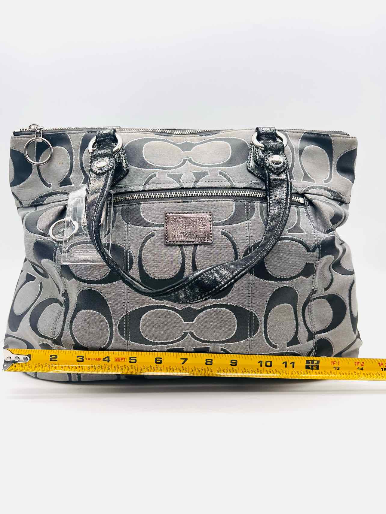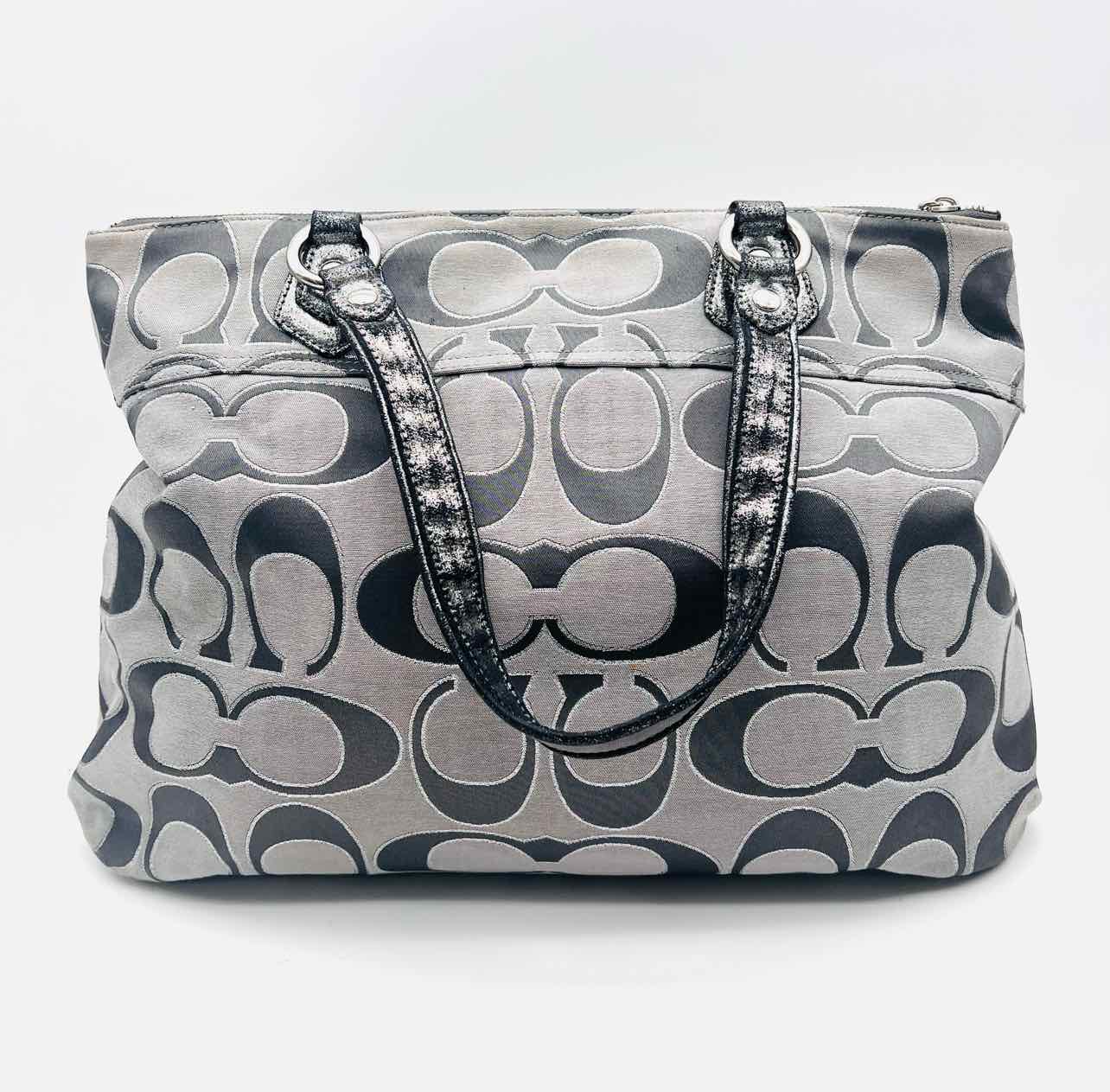 Coach Gray/Silver Signature Fabric/Leather AS IS Designer Tote