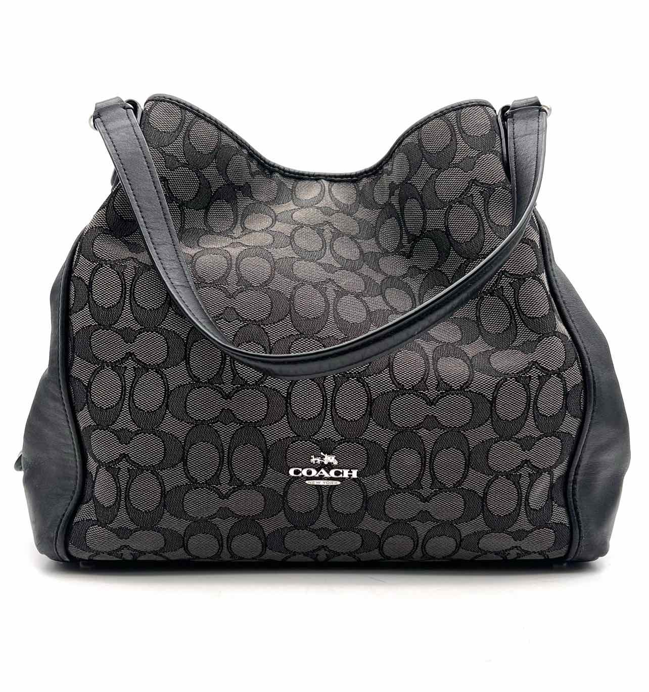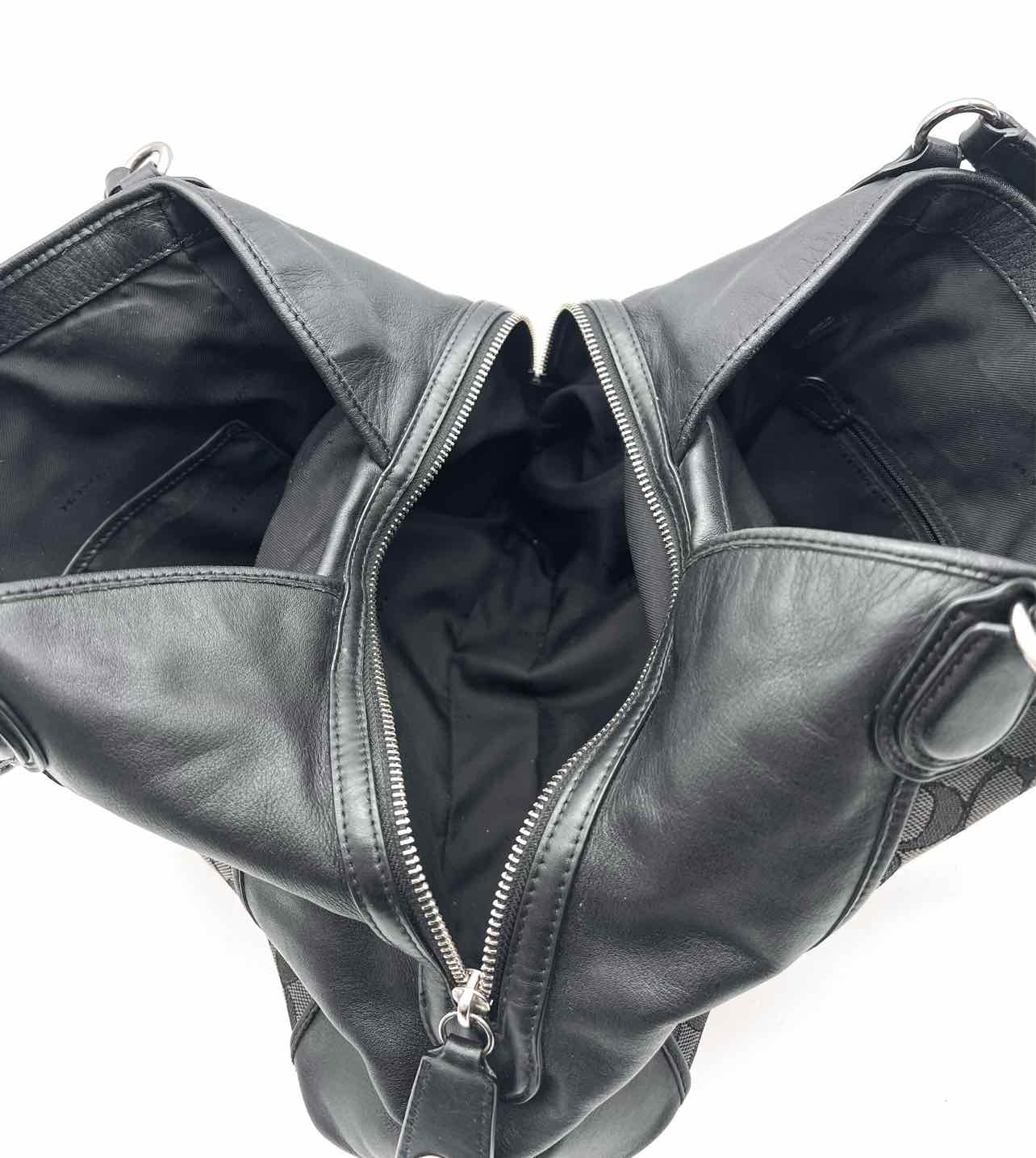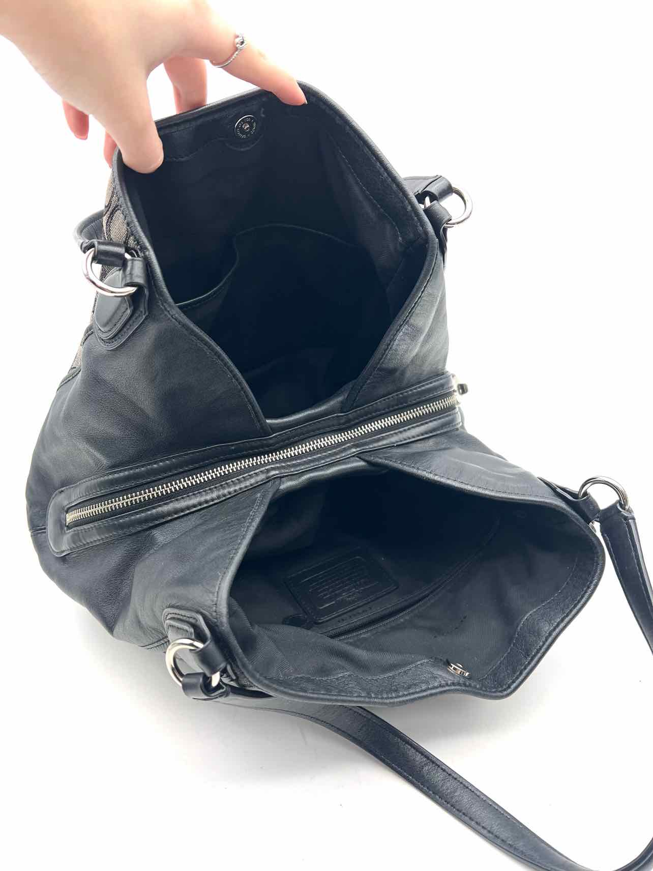 Coach Black/Gray Shoulder Bag Signature Fabric/Leather Designer Purse