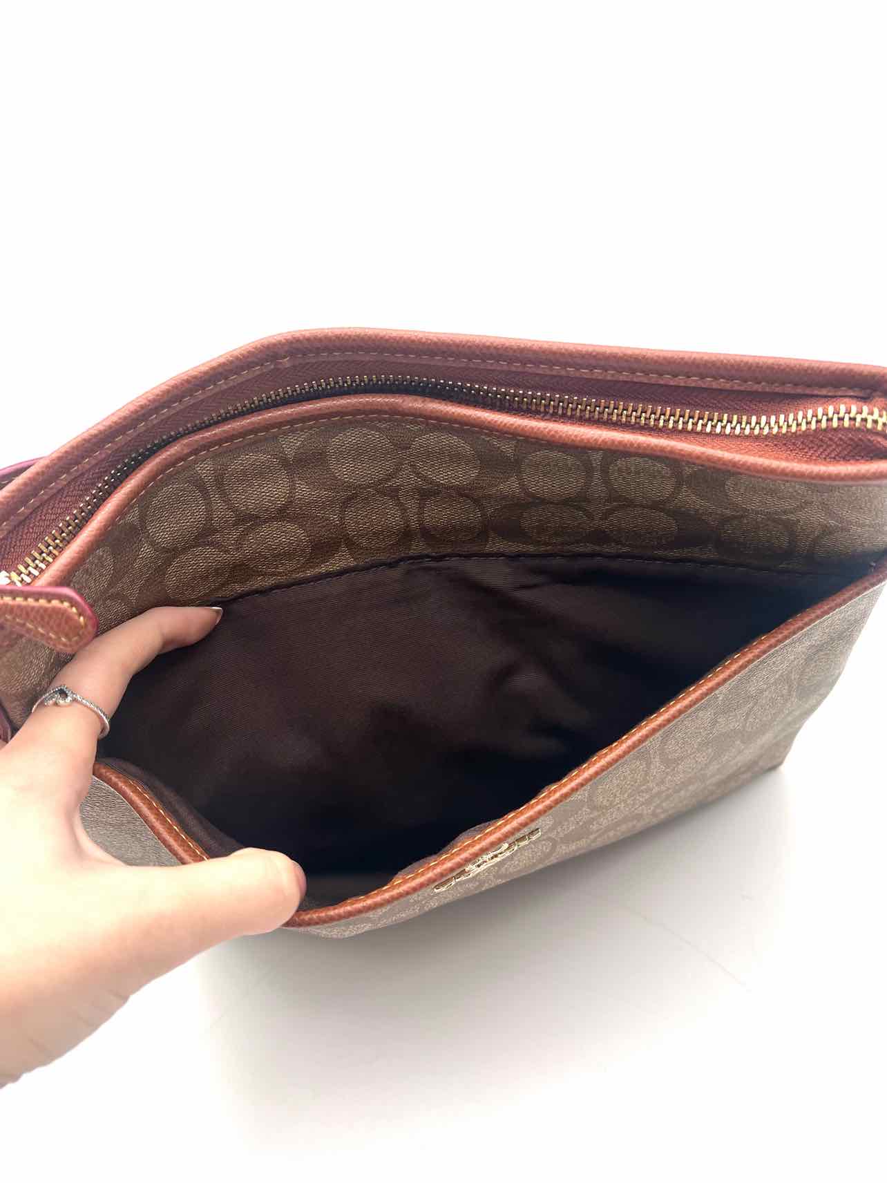 Coach Chocolate/Magenta Signature Leather AS IS Designer Crossbody Purse