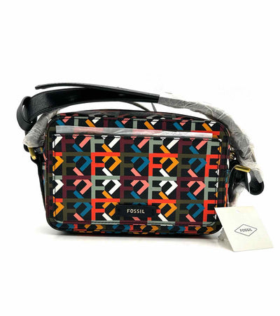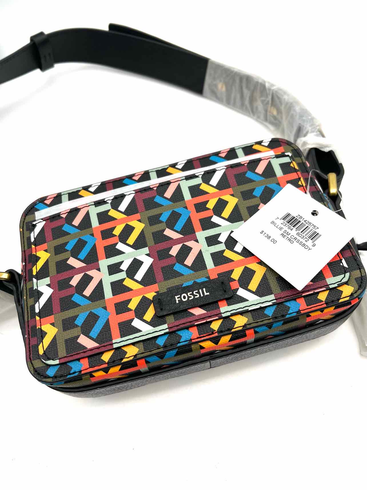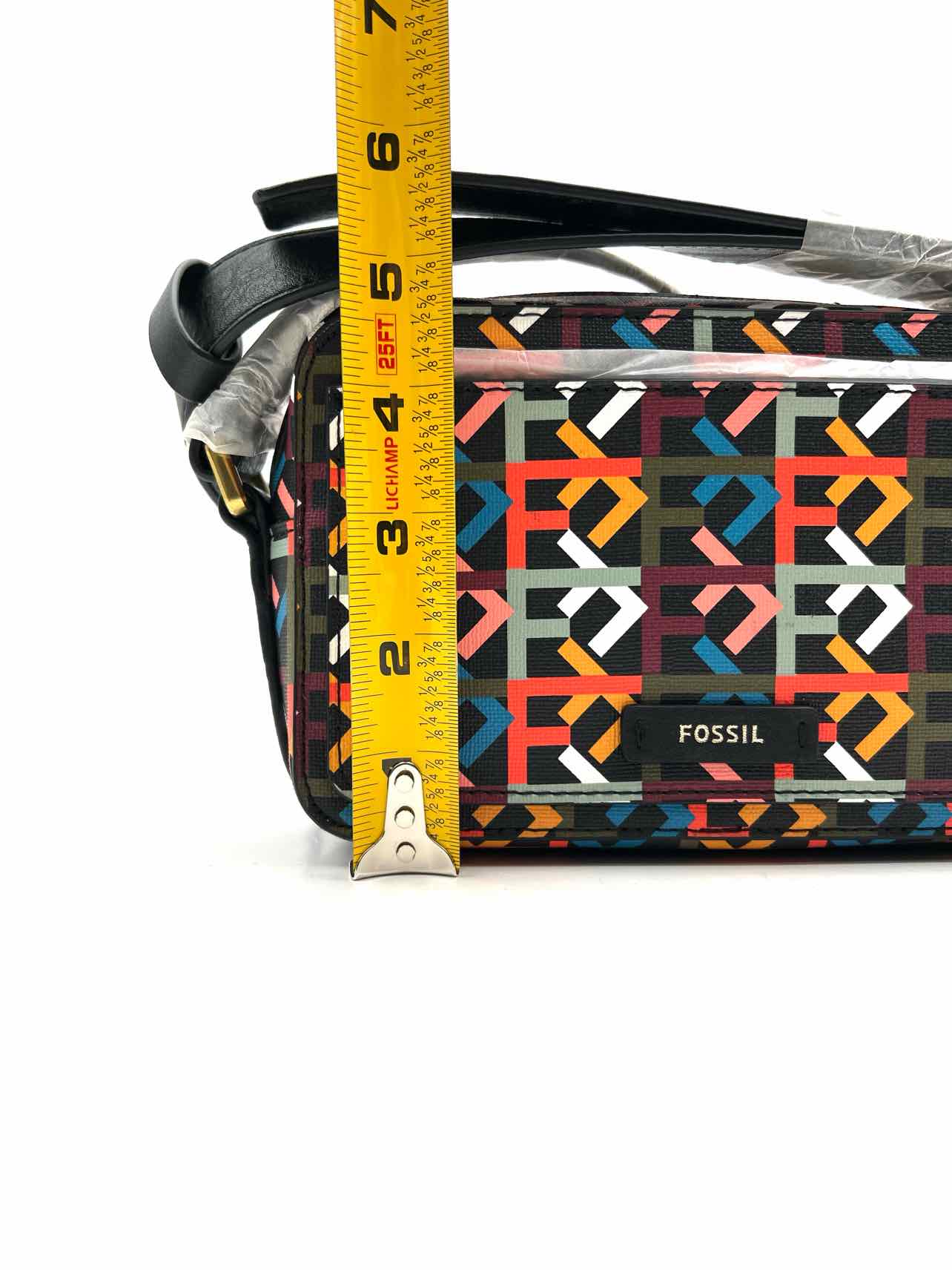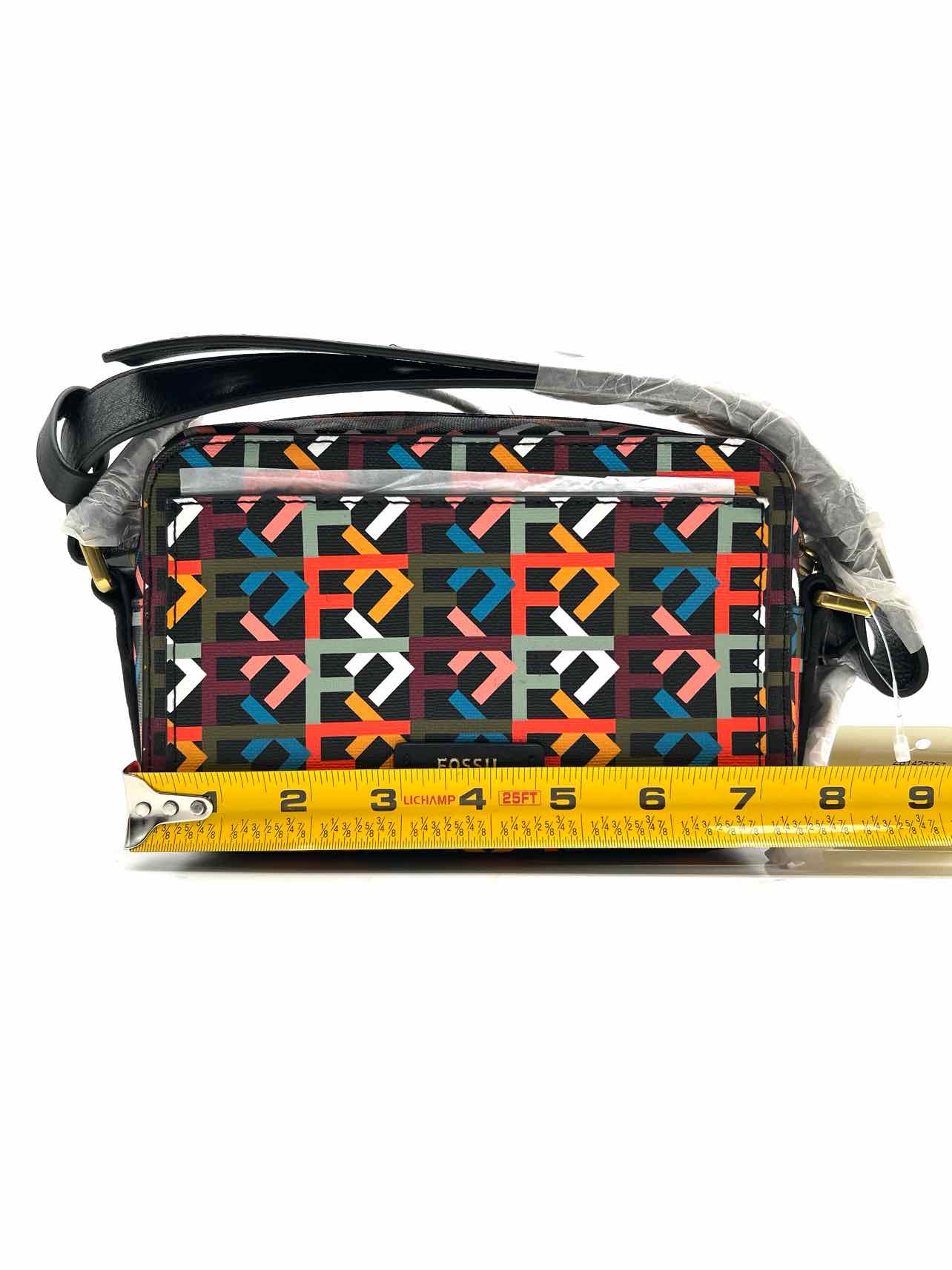 Fossil Black/Multi Signature Leather NEW Designer Crossbody Purse