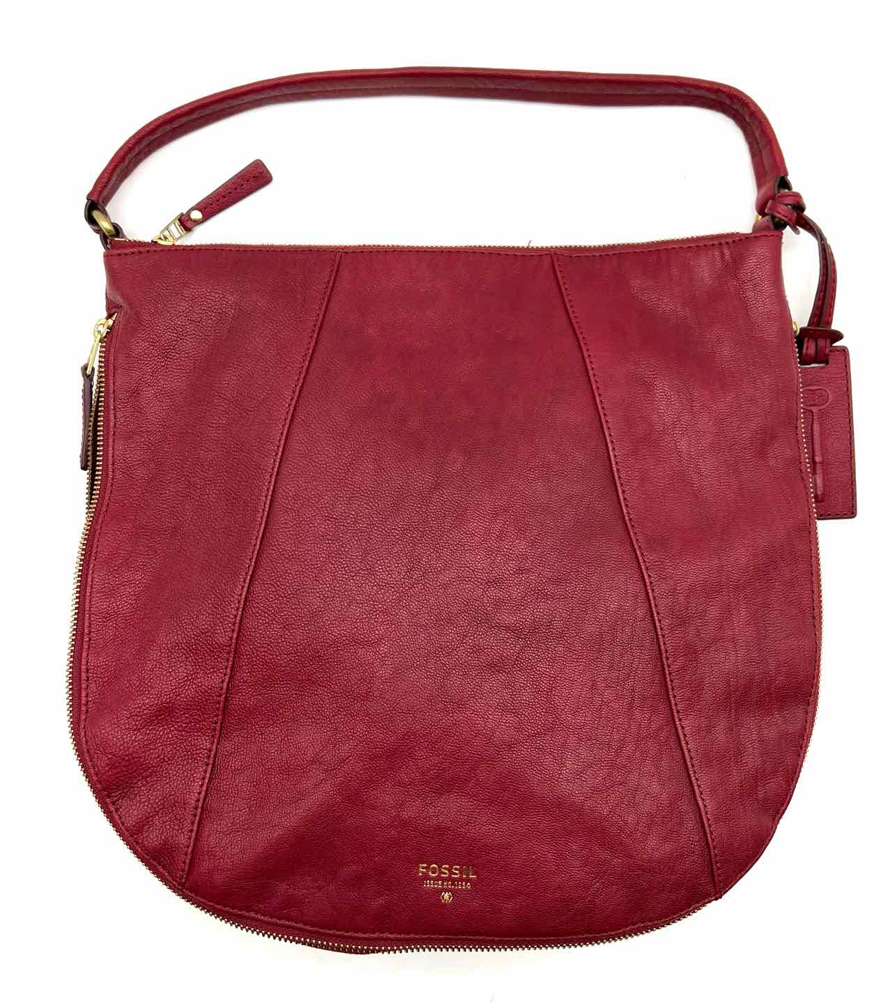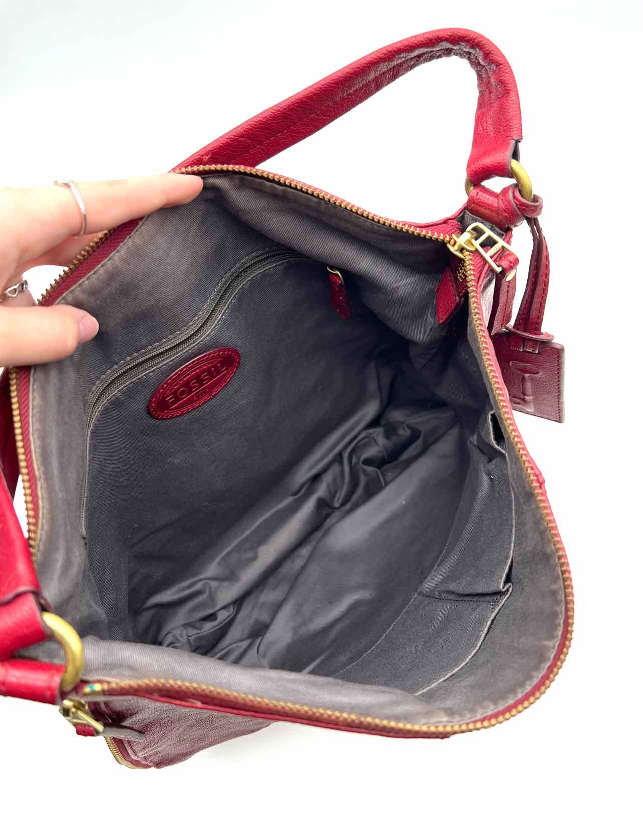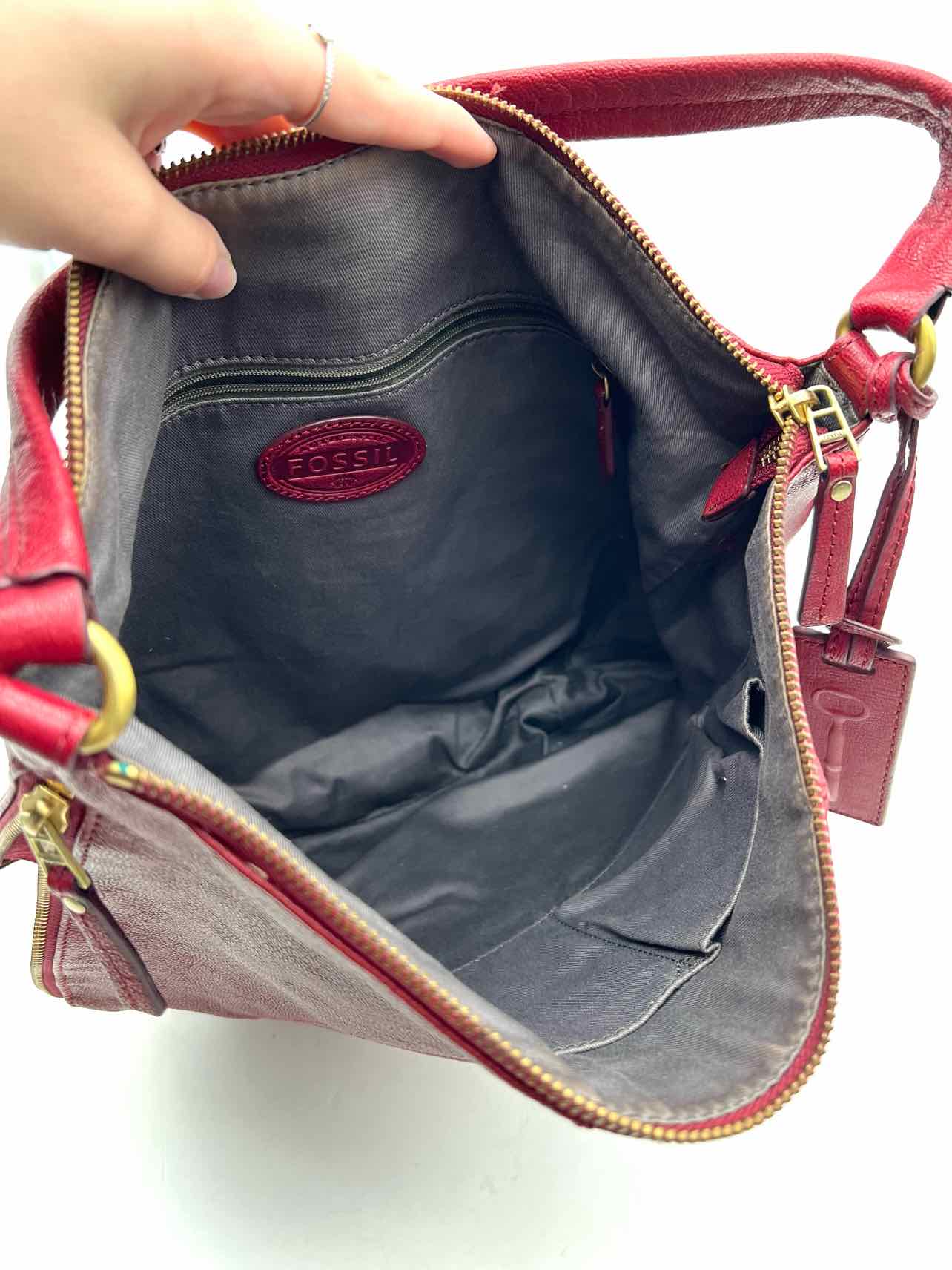 Fossil Red/Gold Hobo Zipper Leather Purses Purse