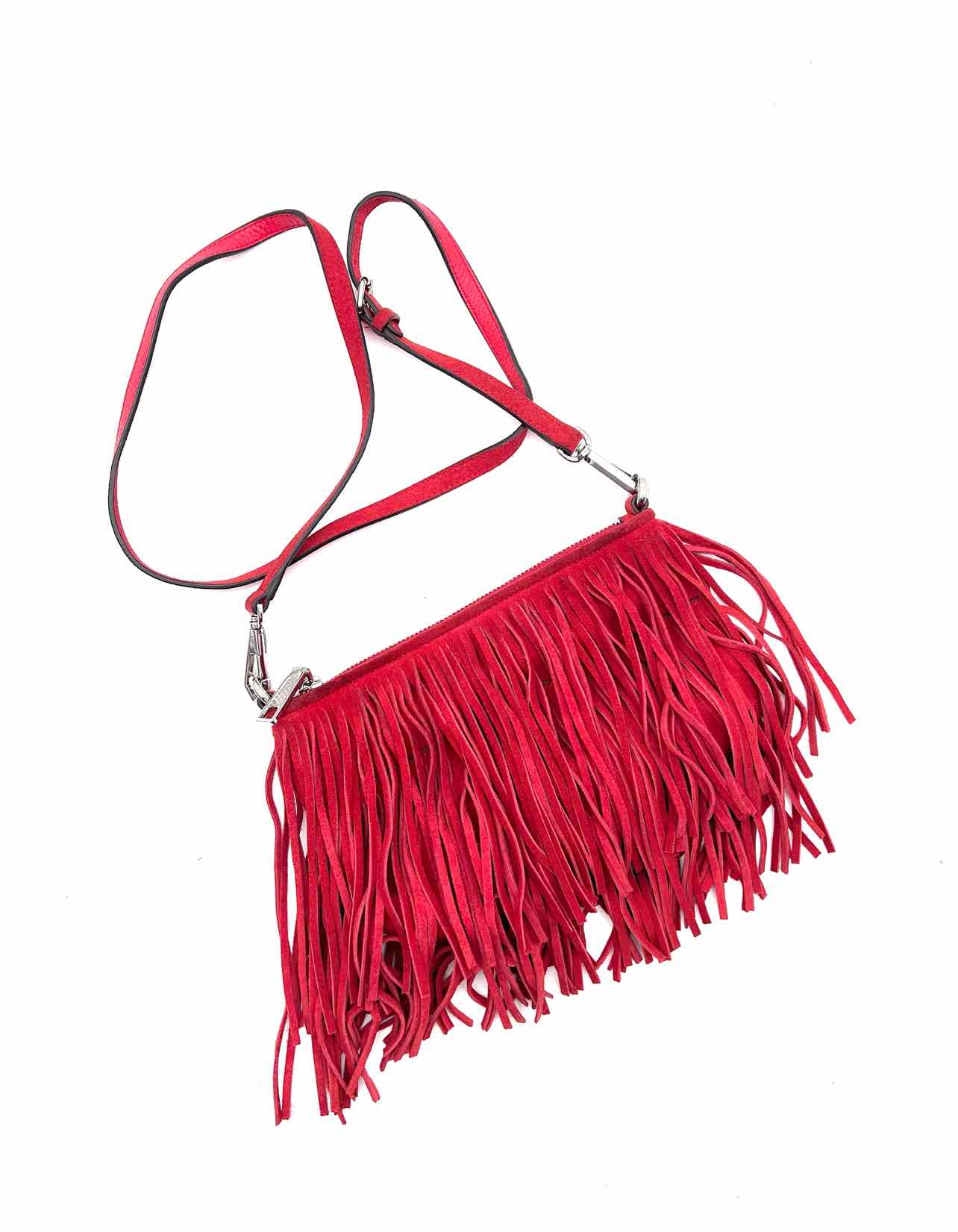 Michael Michael Kors Red/Silver Fringe Suede Designer Crossbody Purse