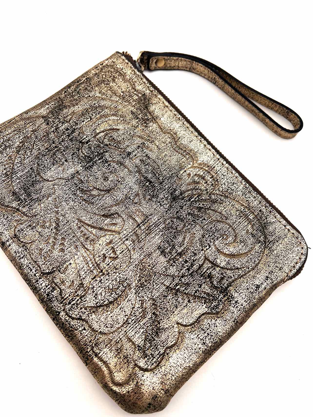Patricia Nash Gold Tooled Leather Designer Wristlet