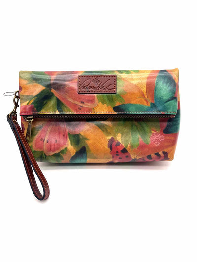 Patricia Nash Tan/Multi Foldover Butterflies Leather NEW Designer Wristlet
