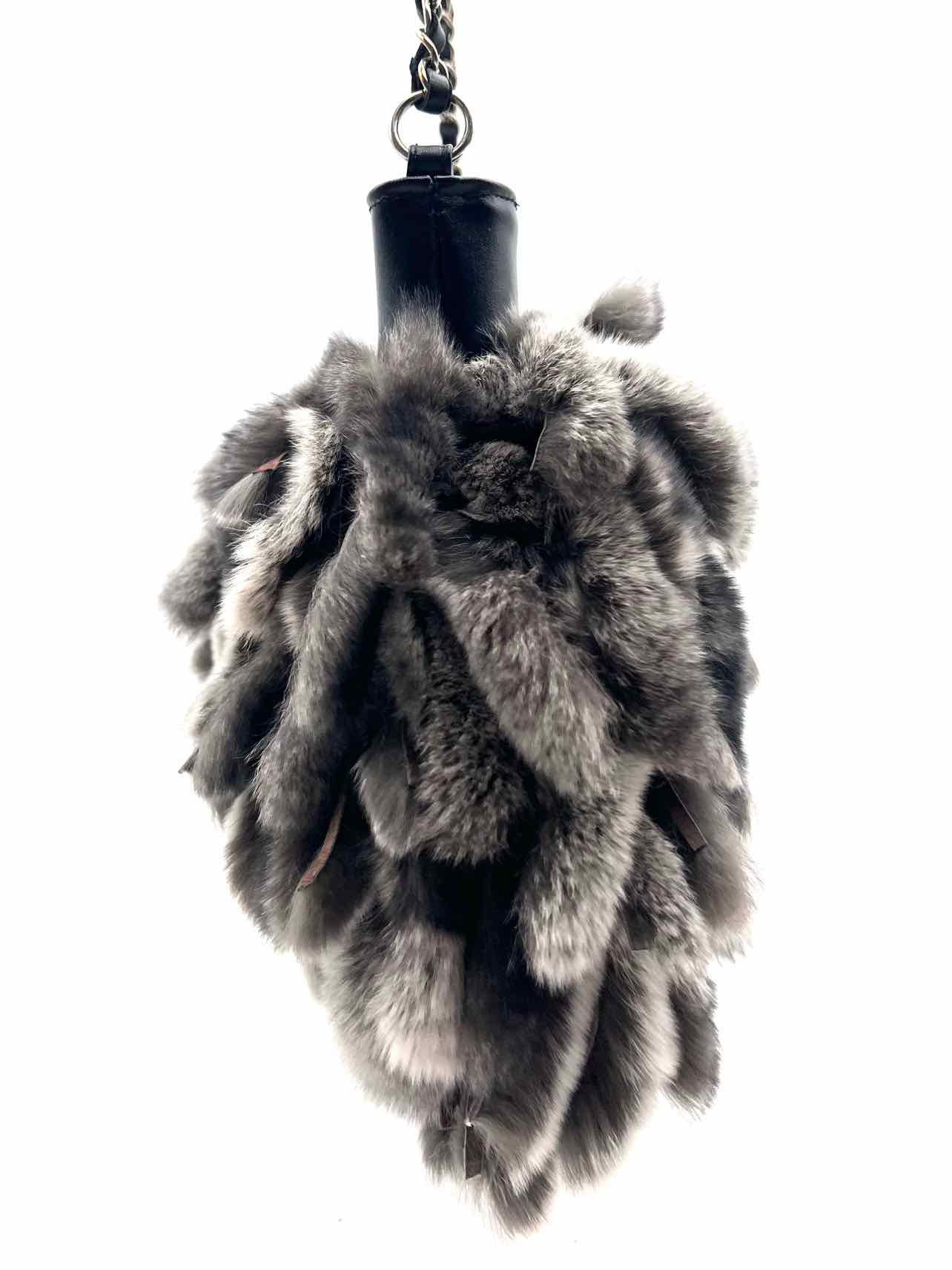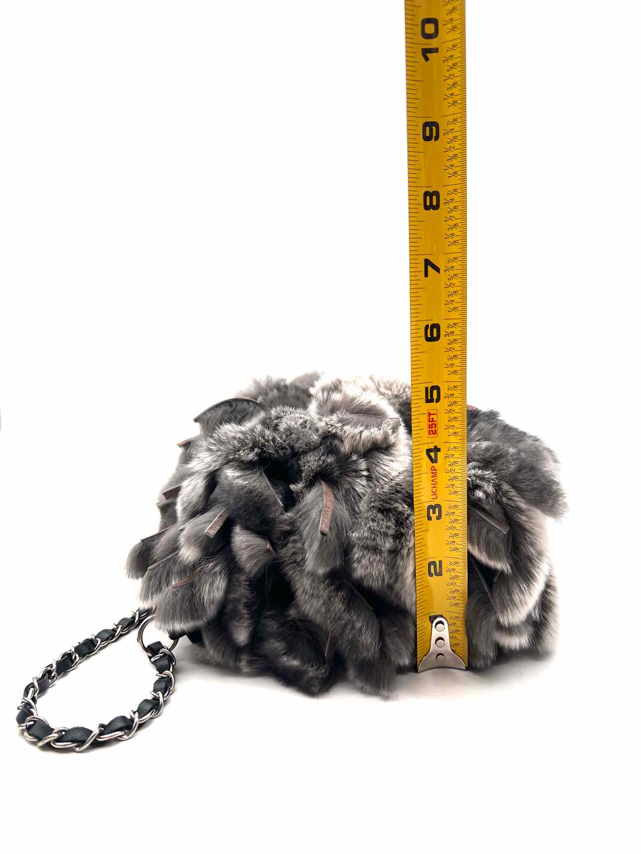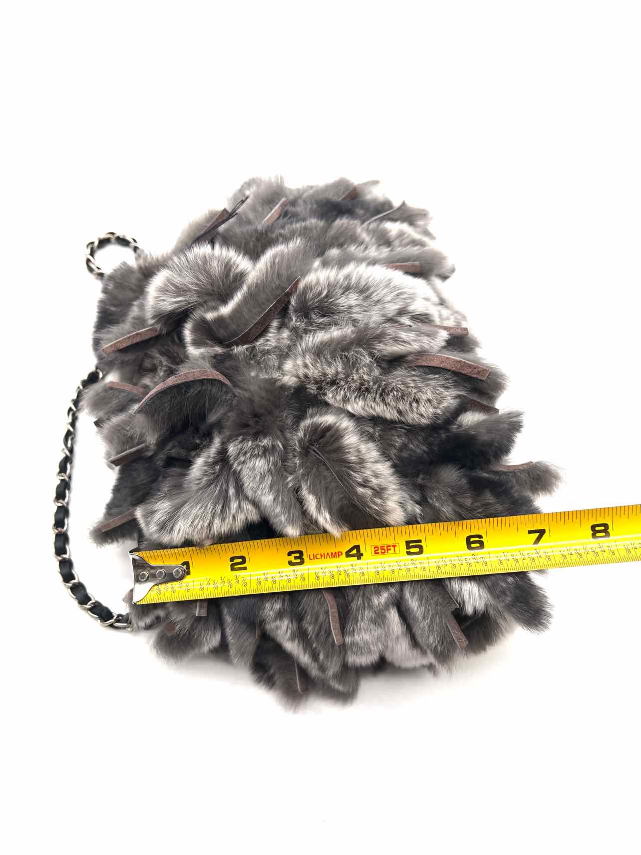 Cedrics Gry/Bk/Silv. Shoulder Bag Chain Rabbit Fur Vintage Designer Purse