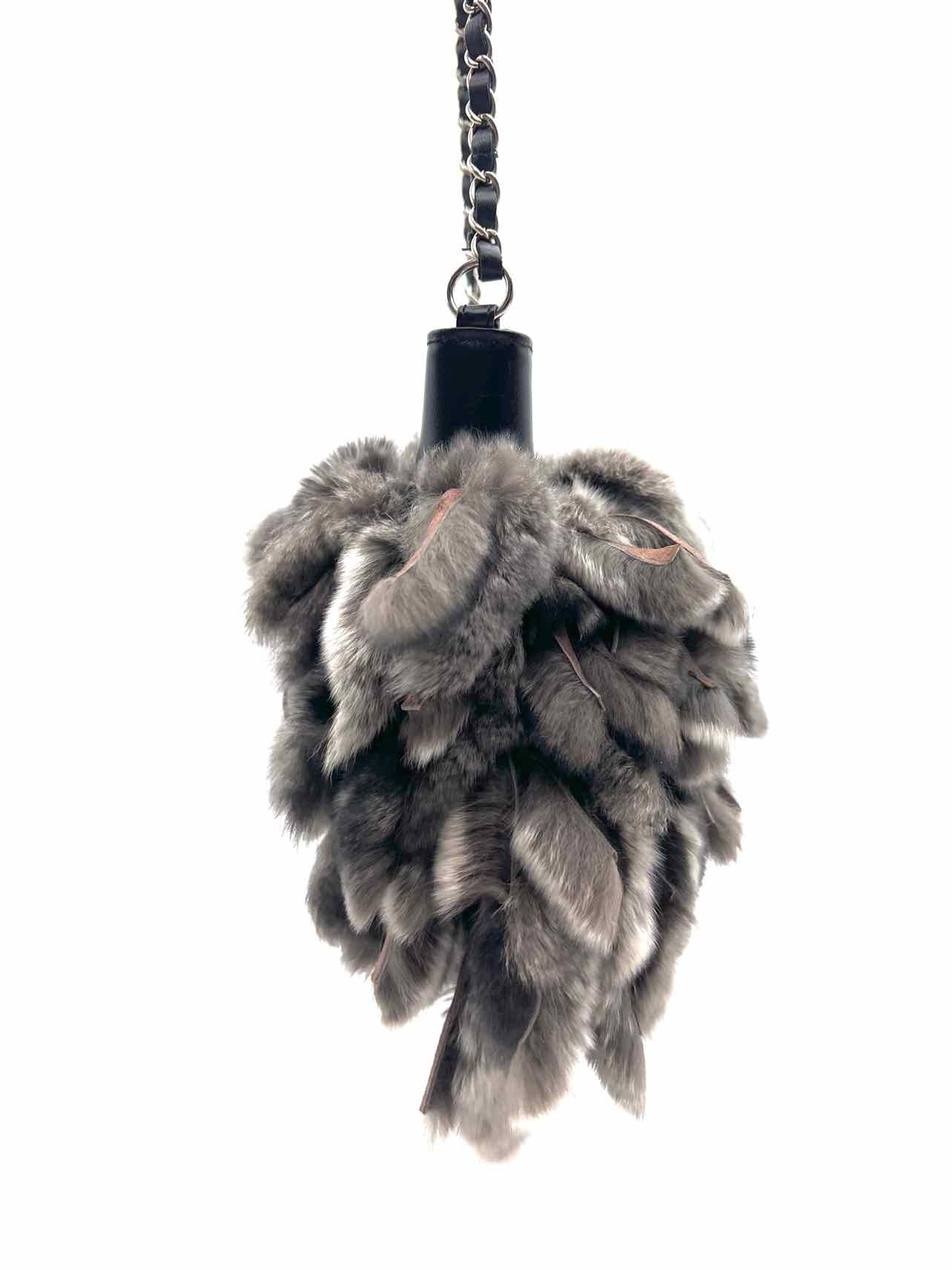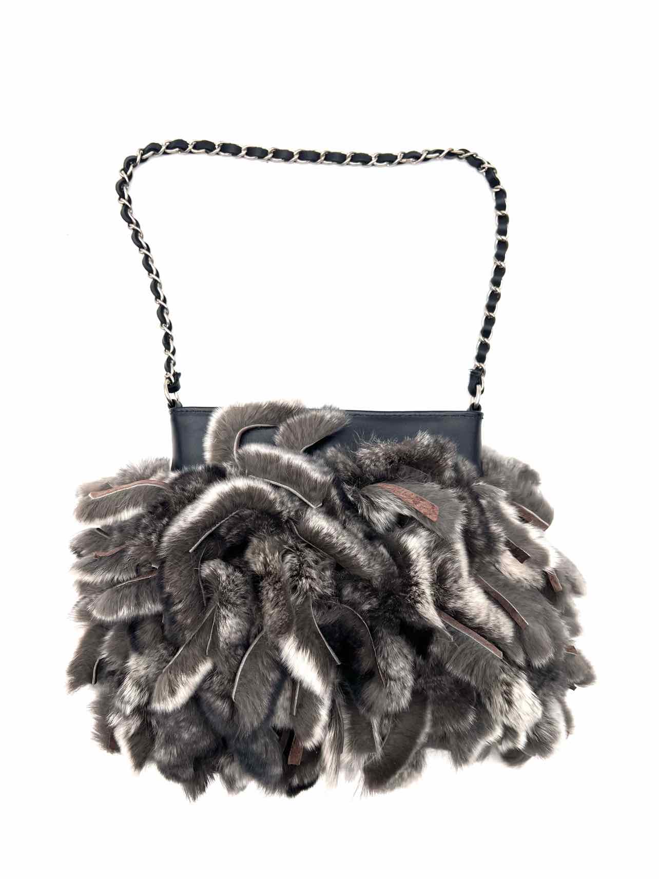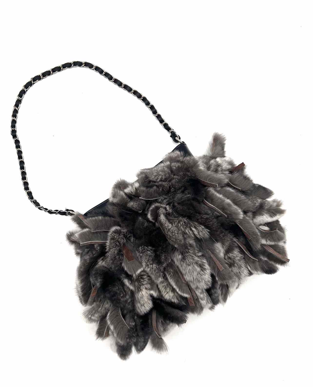 Cedrics Gry/Bk/Silv. Shoulder Bag Chain Rabbit Fur Vintage Designer Purse