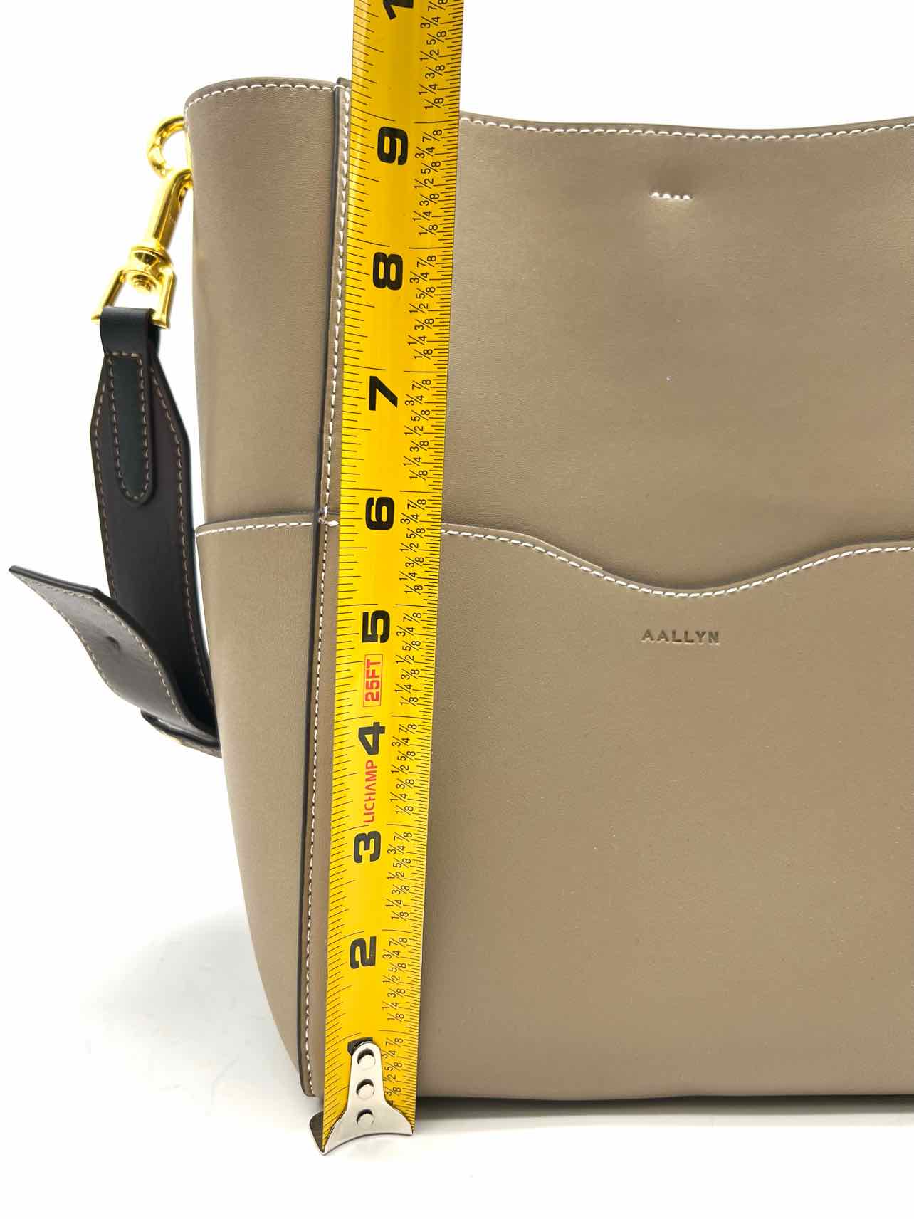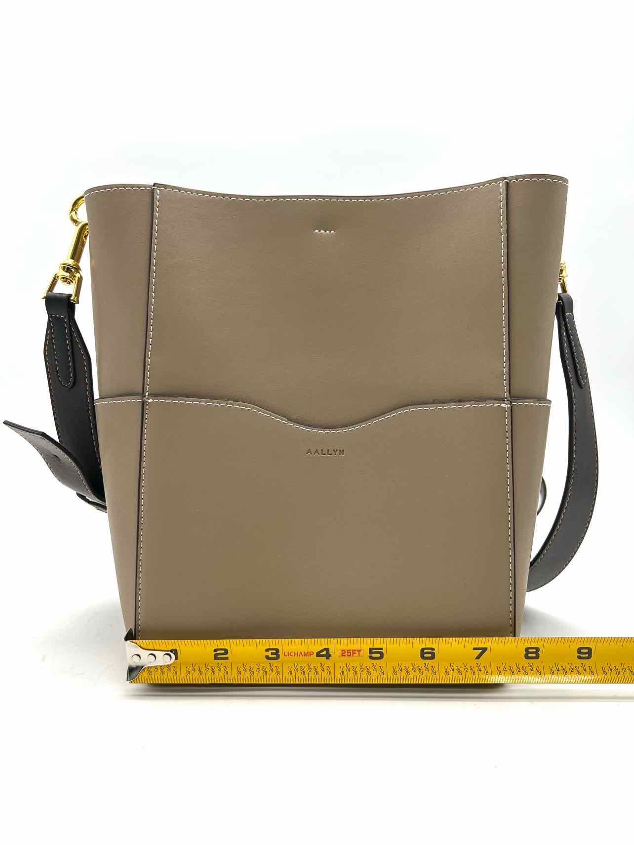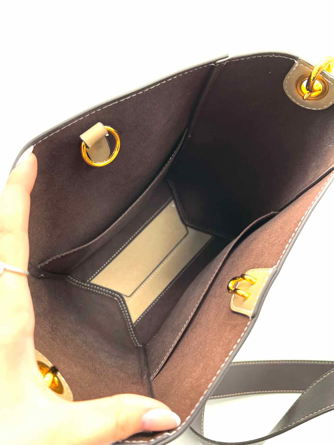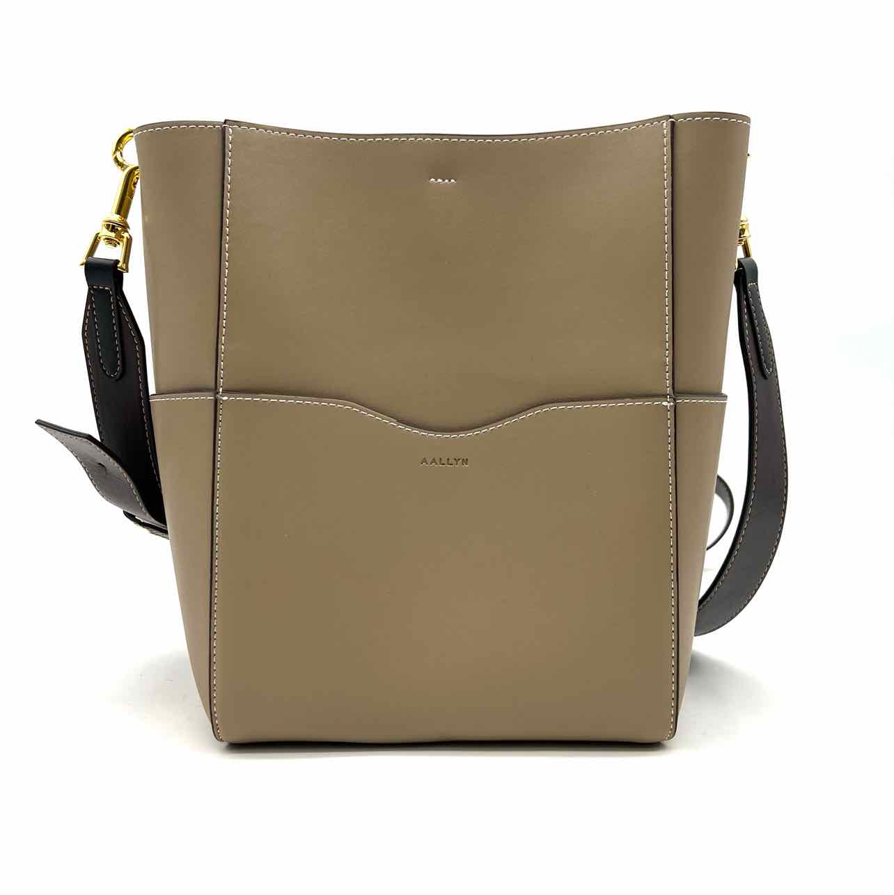 AALLYN Taupe/Chocolate Bucket Stitched Leather Designer Crossbody Purse