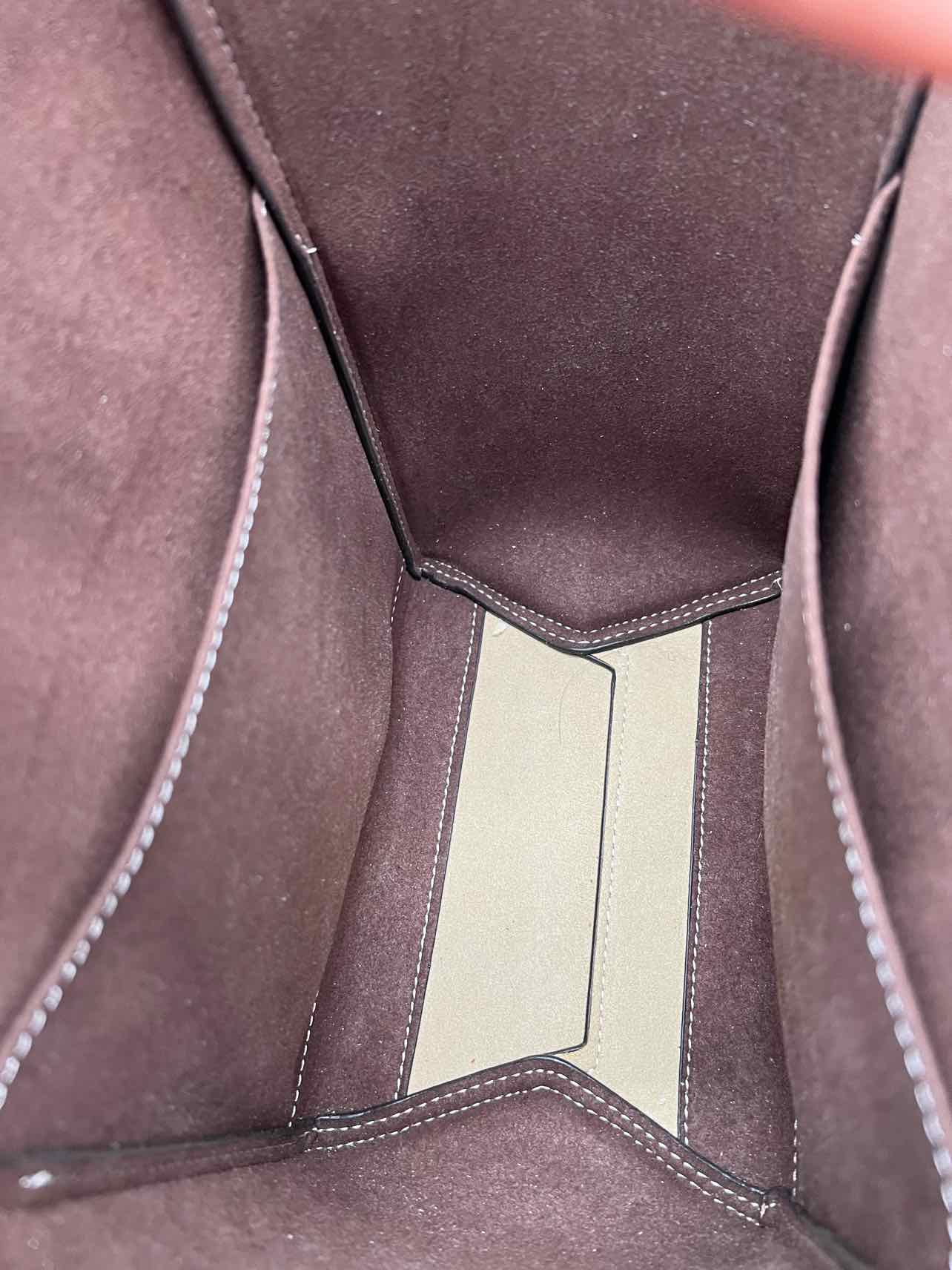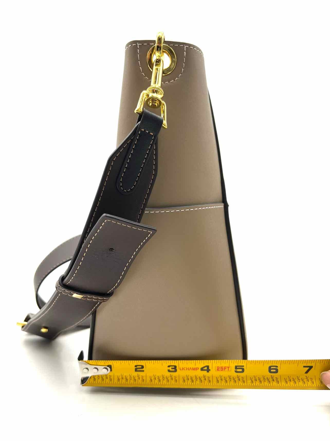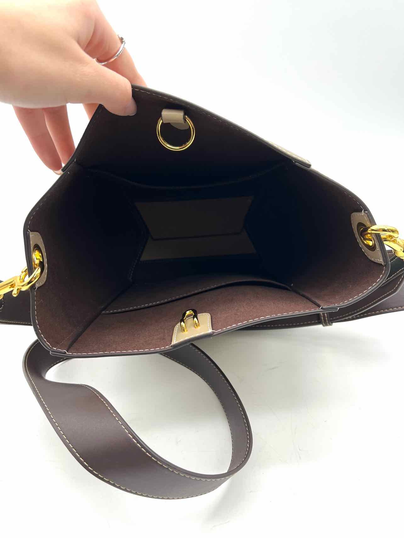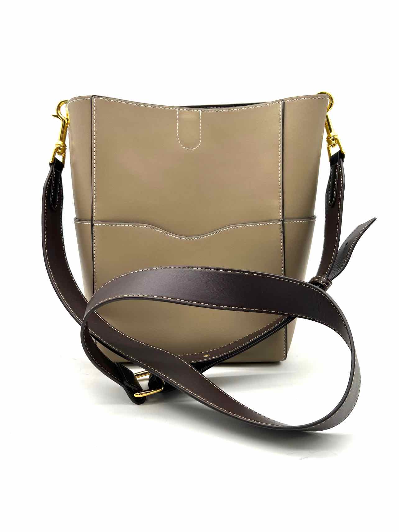 AALLYN Taupe/Chocolate Bucket Stitched Leather Designer Crossbody Purse