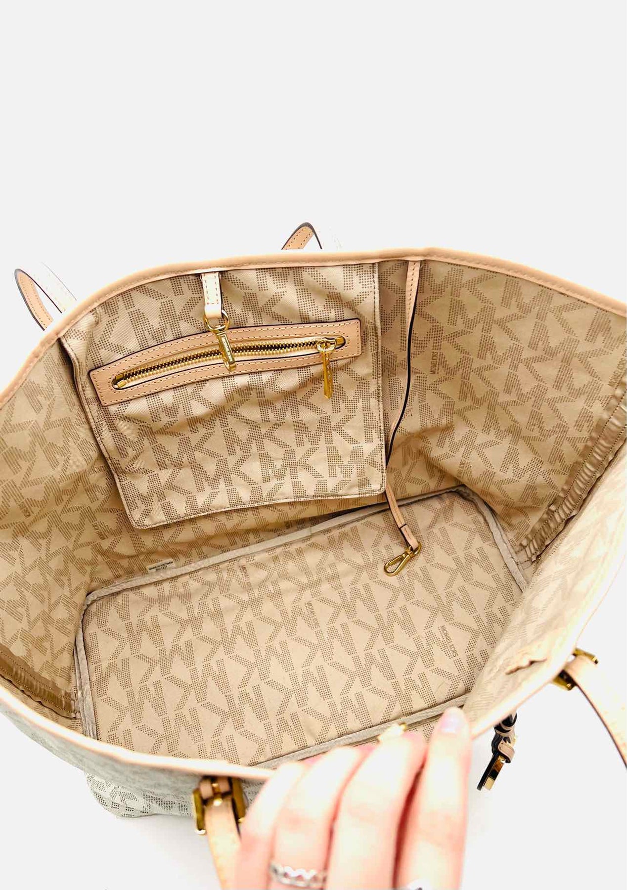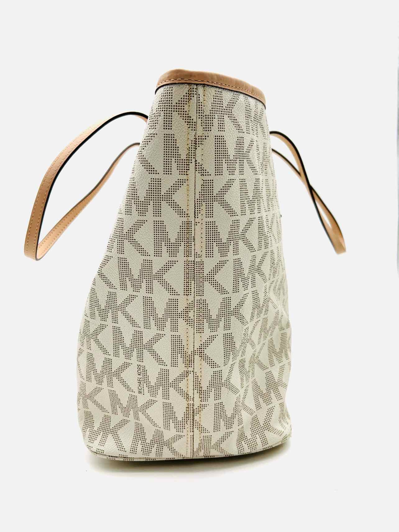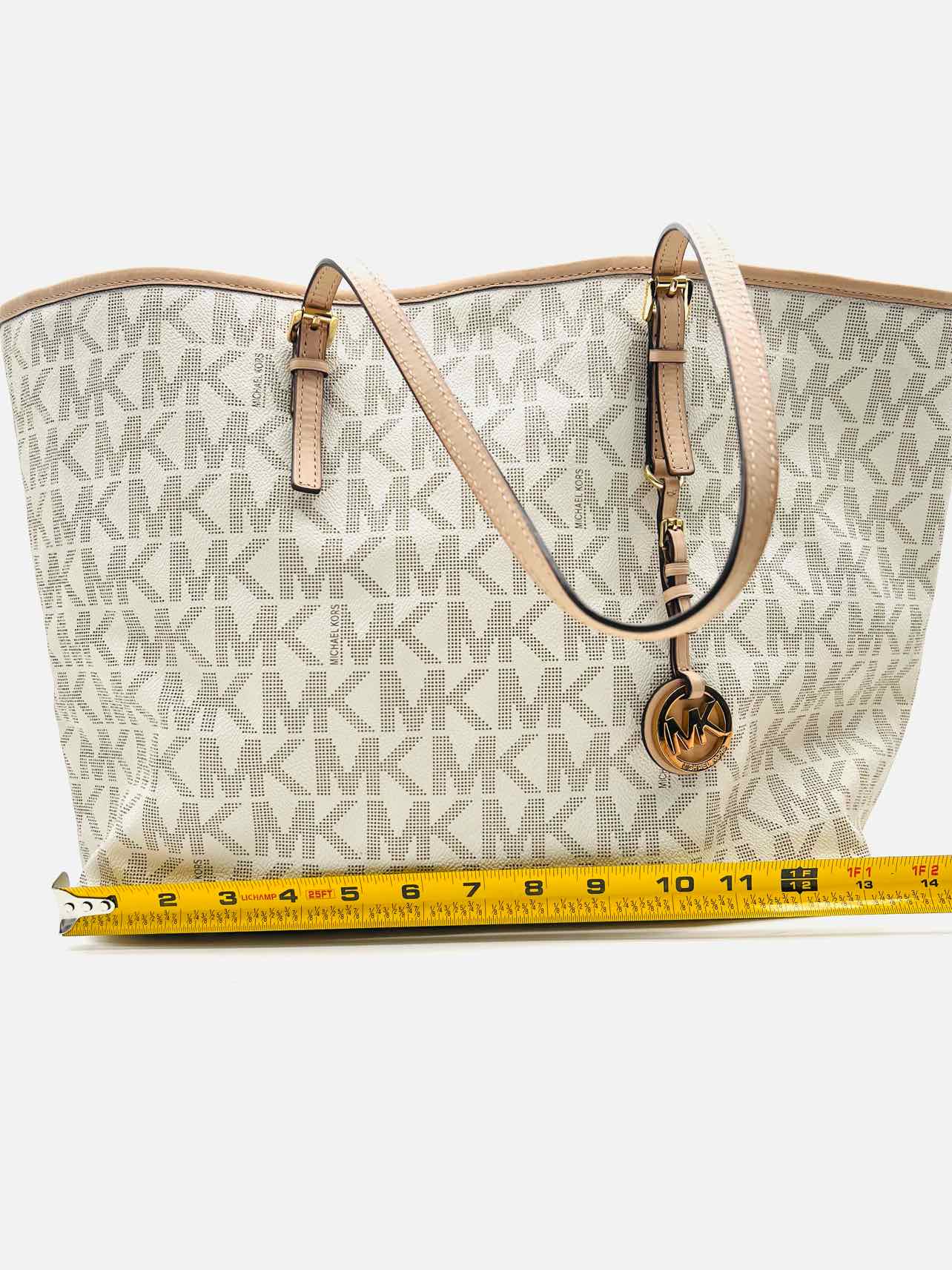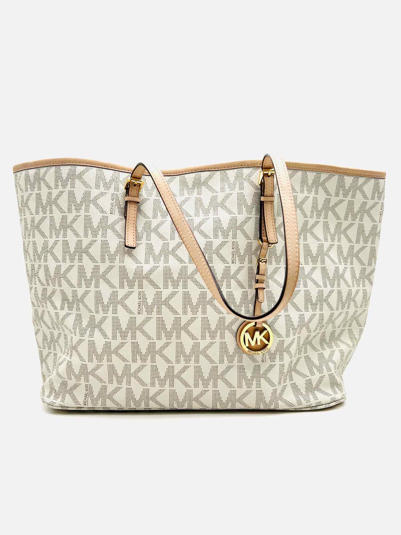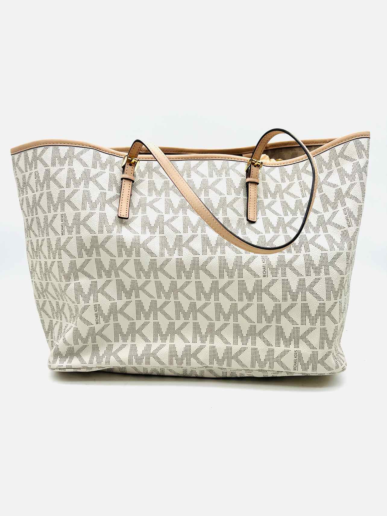 Michael Michael Kors White/Beige Monogrammed Designer Tote