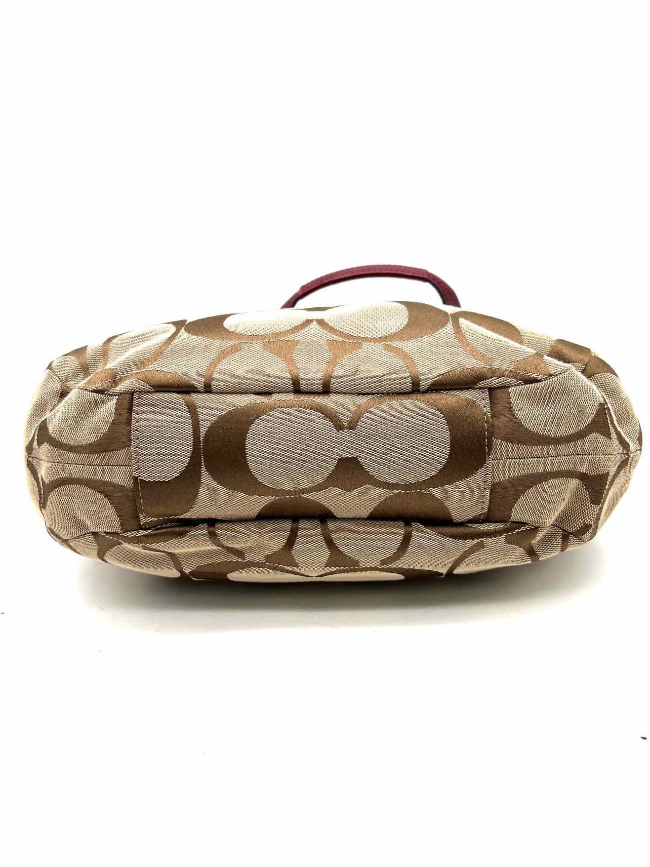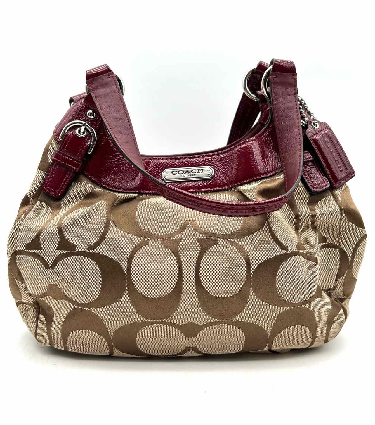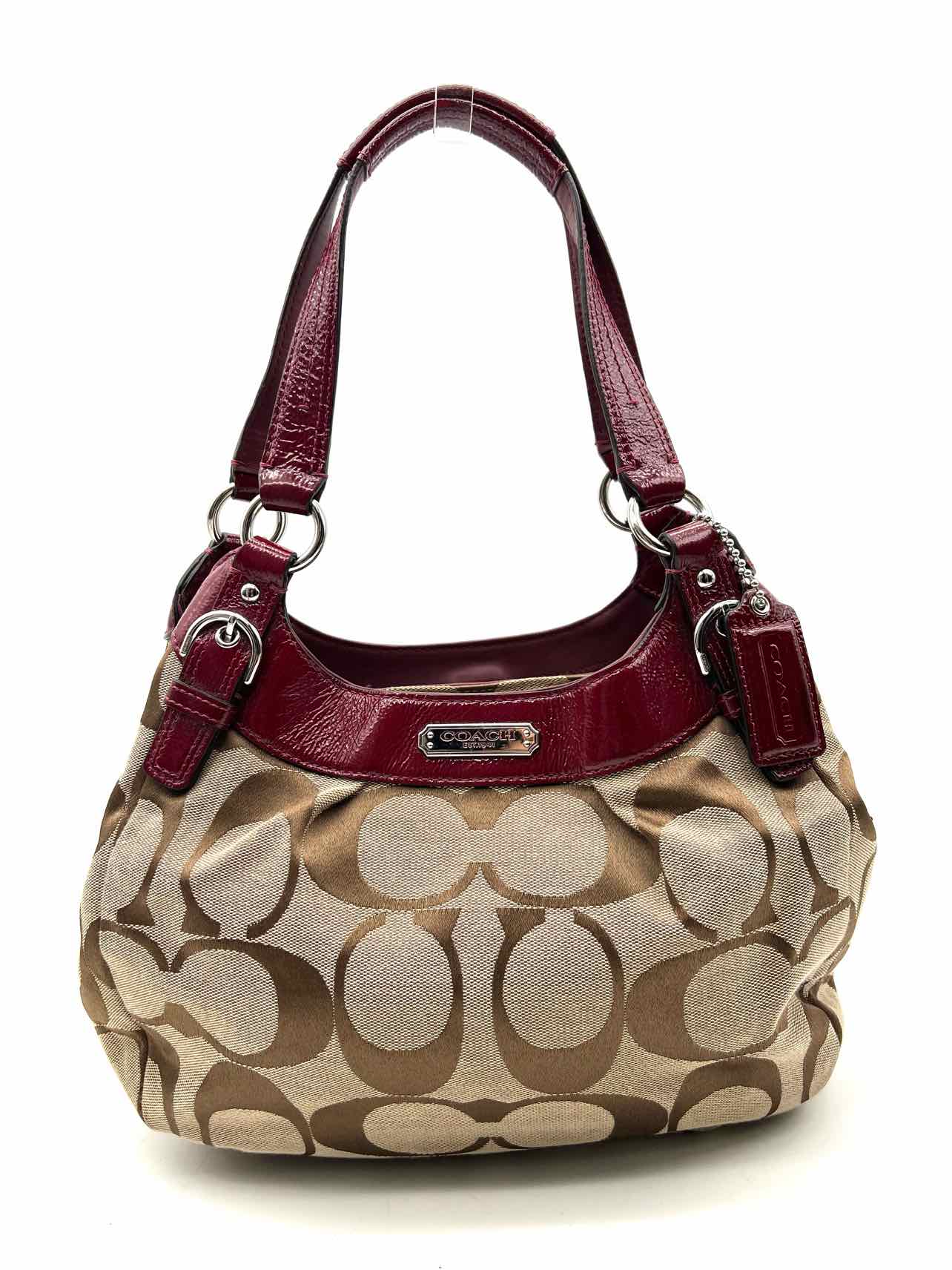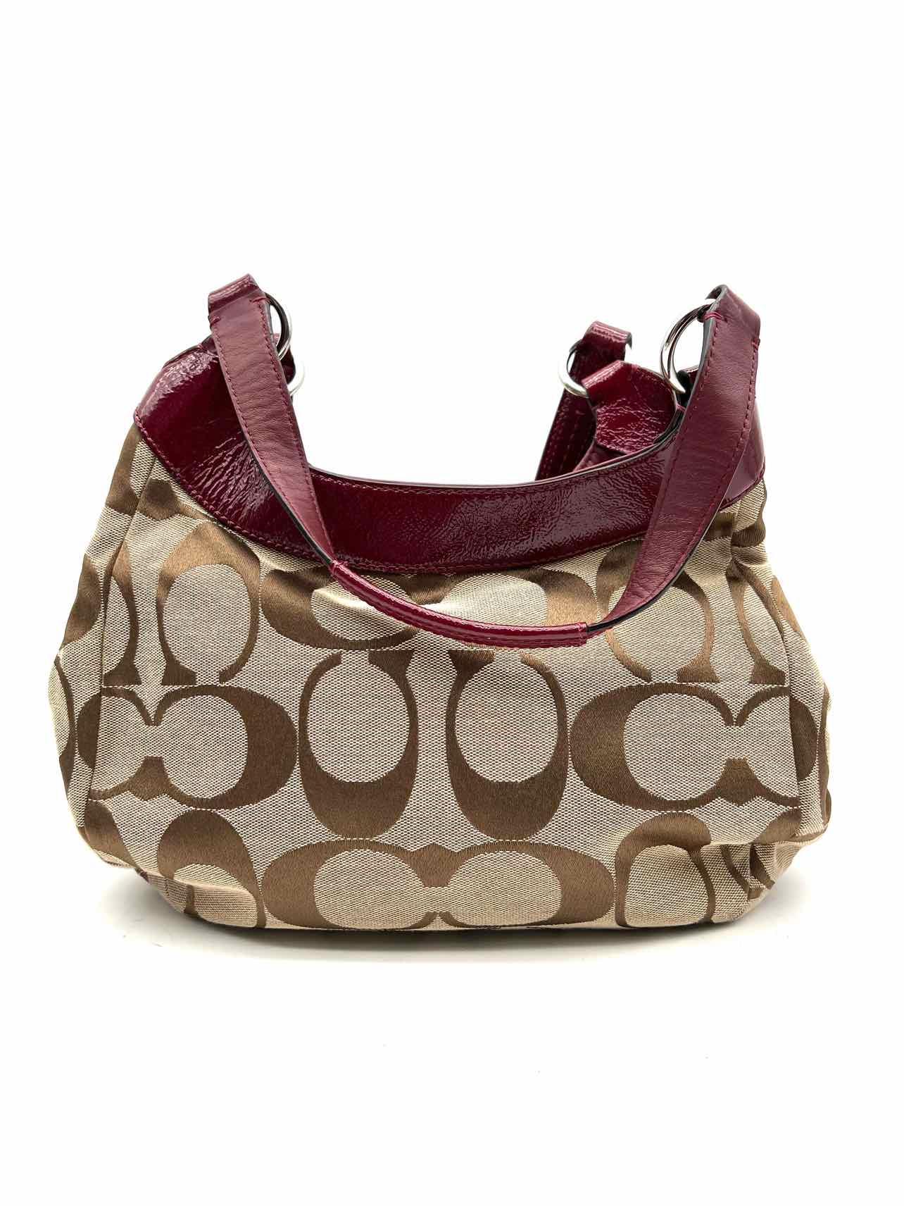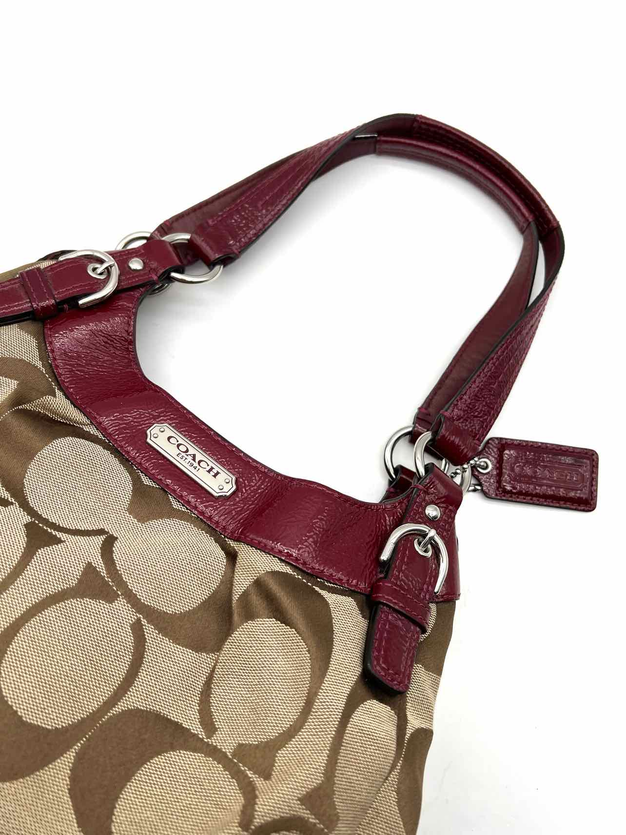 Coach Tan/Burgundy Shoulder Bag Signature Fabric/Leather Designer Purse