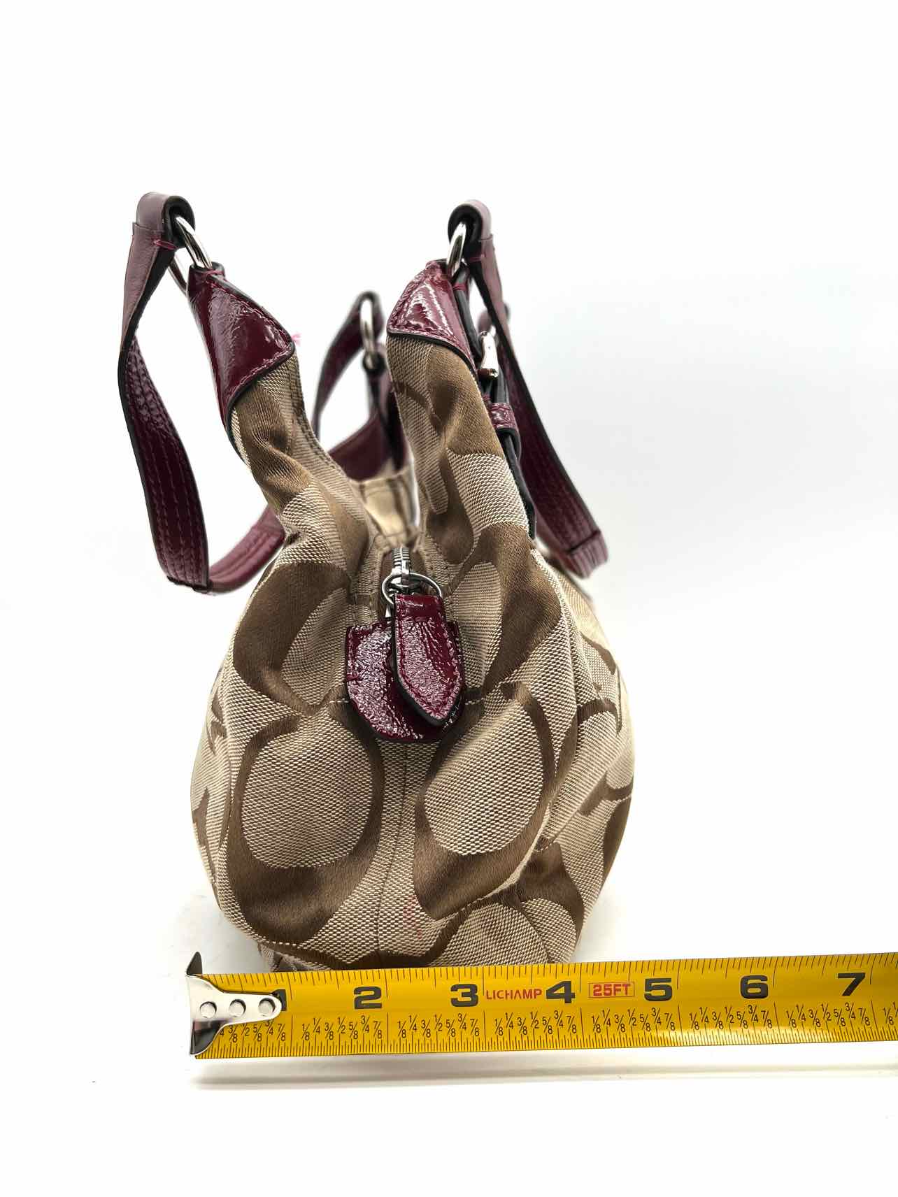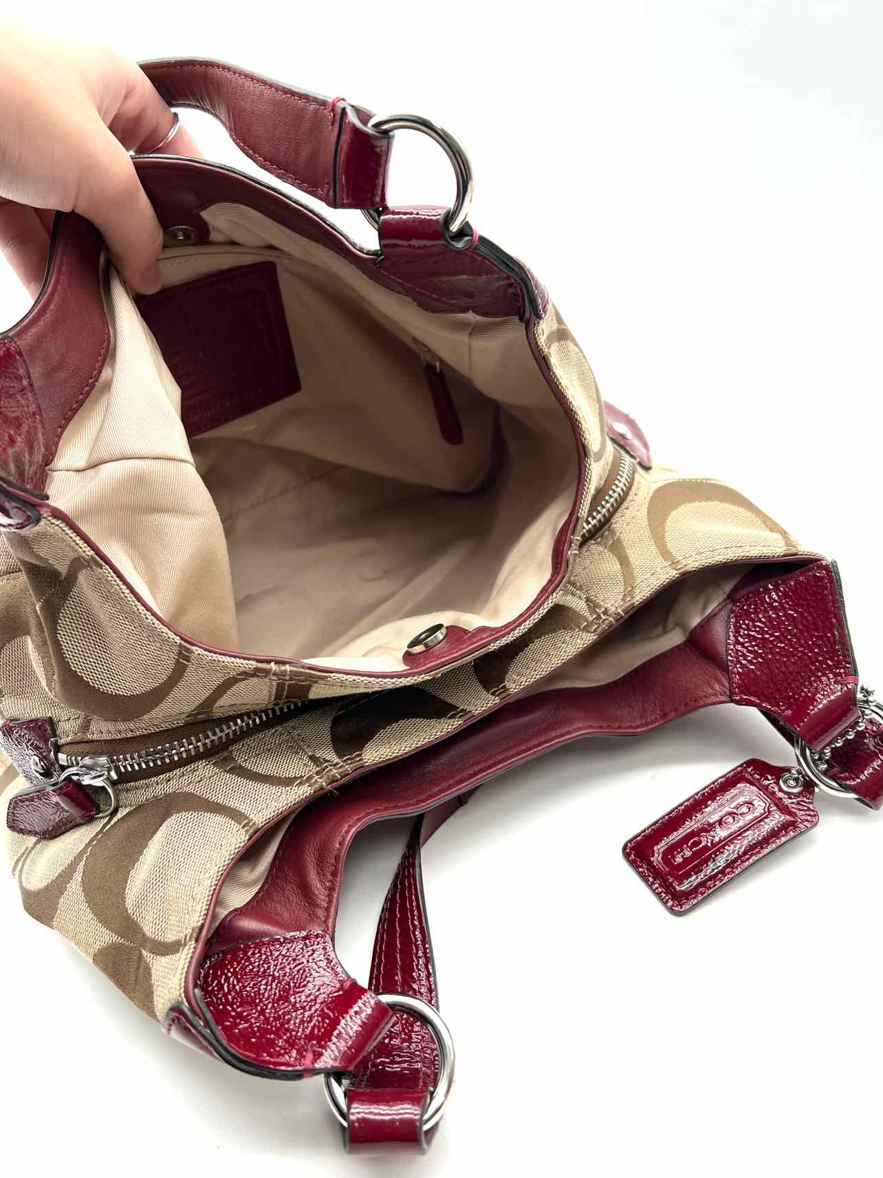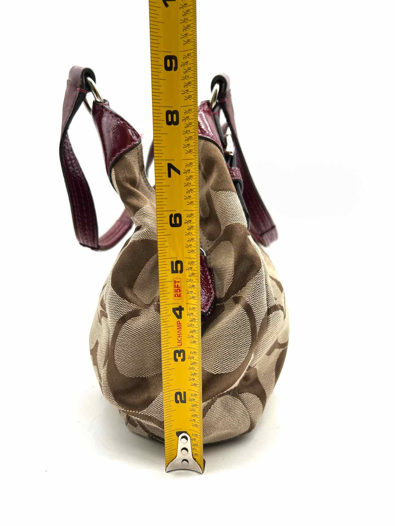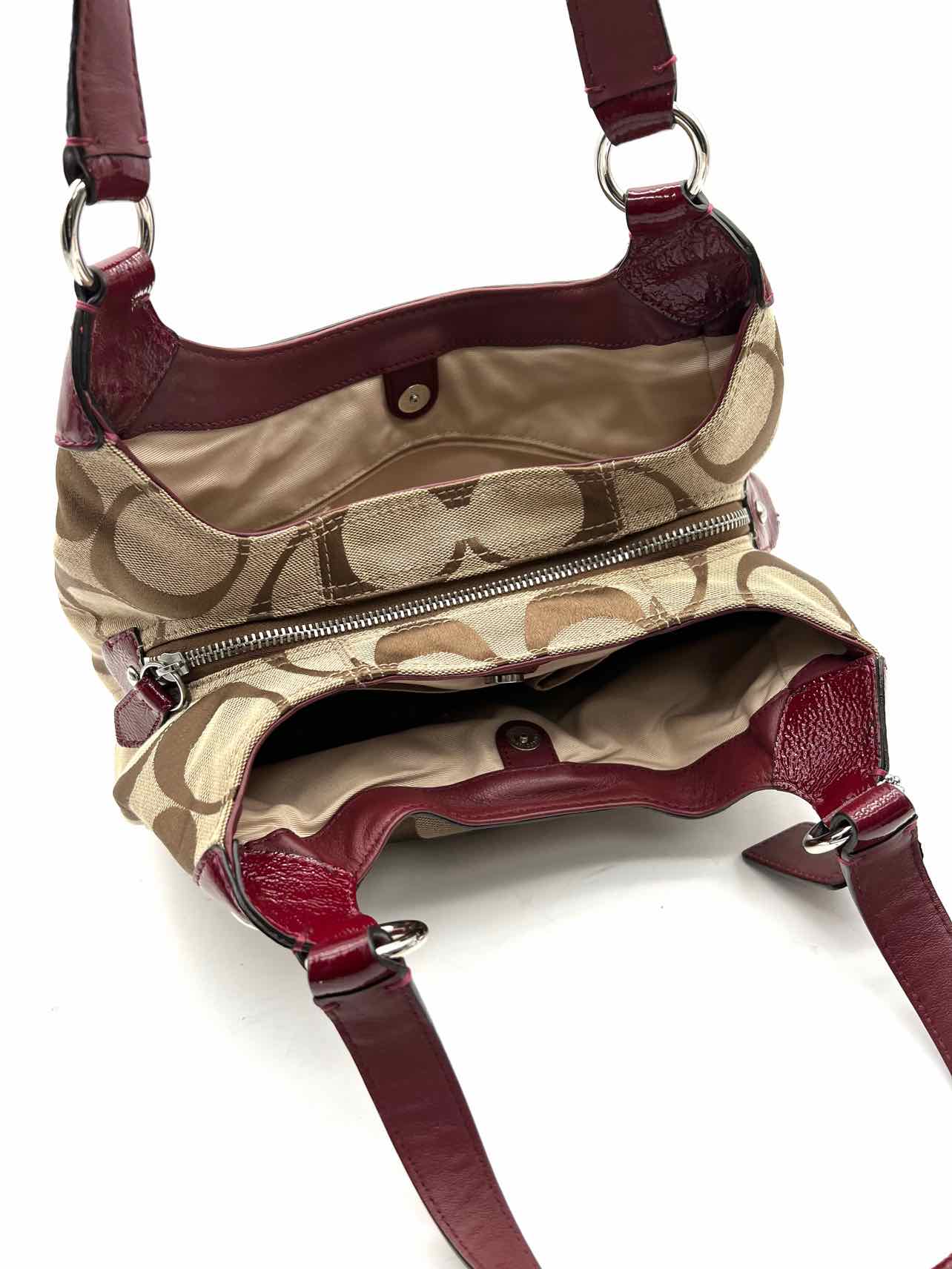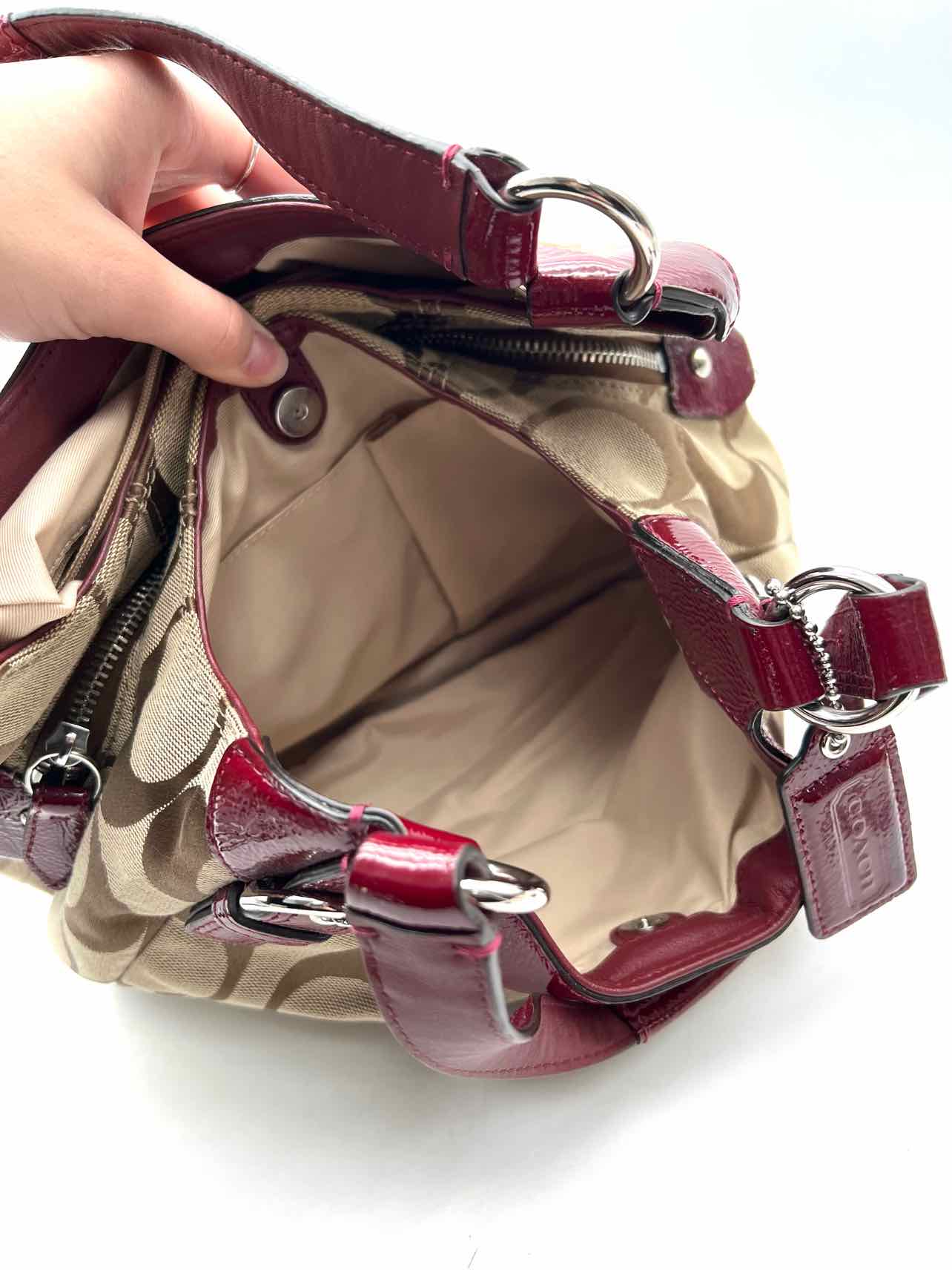 Coach Tan/Burgundy Shoulder Bag Signature Fabric/Leather Designer Purse