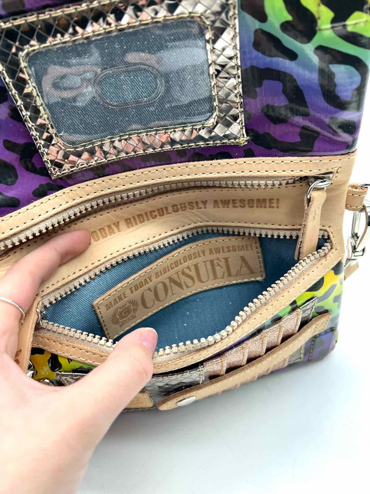 Consuela Purple/Multi Animal Print Vinyl Designer Crossbody Purse