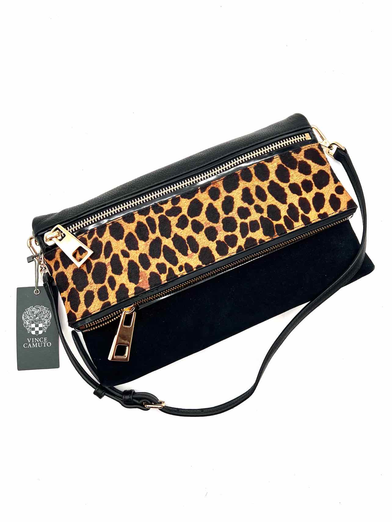 Vince Camuto Black/Tan Shoulder Bag Animal Print Leather NEW Purses Purse