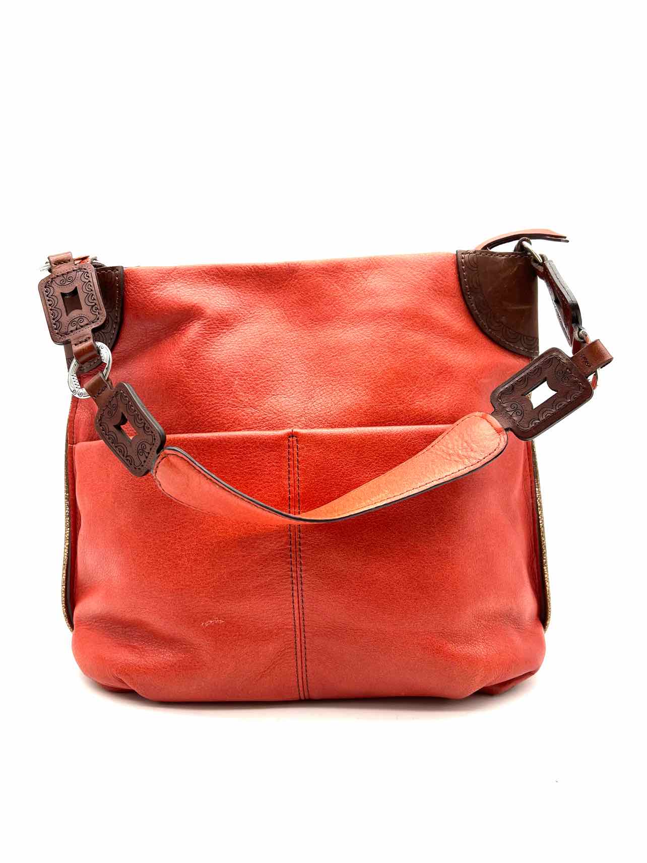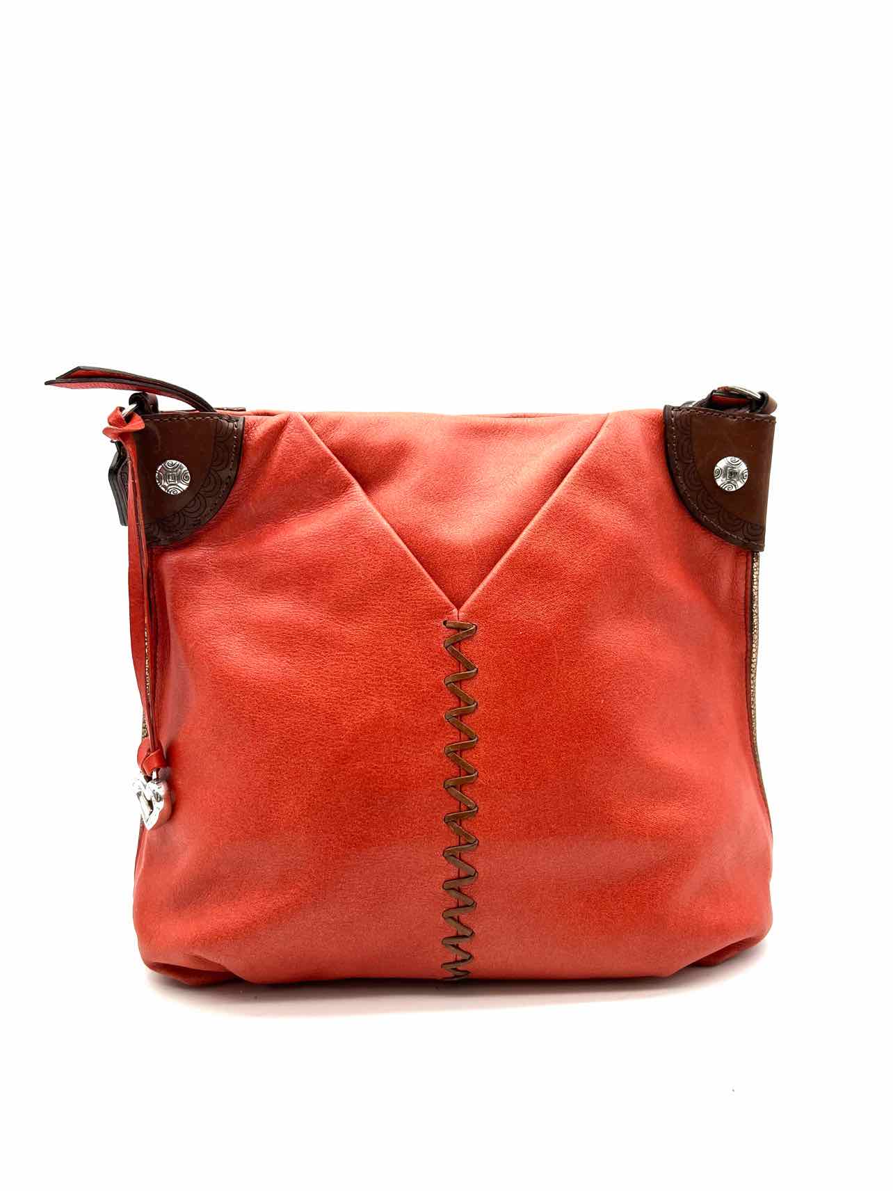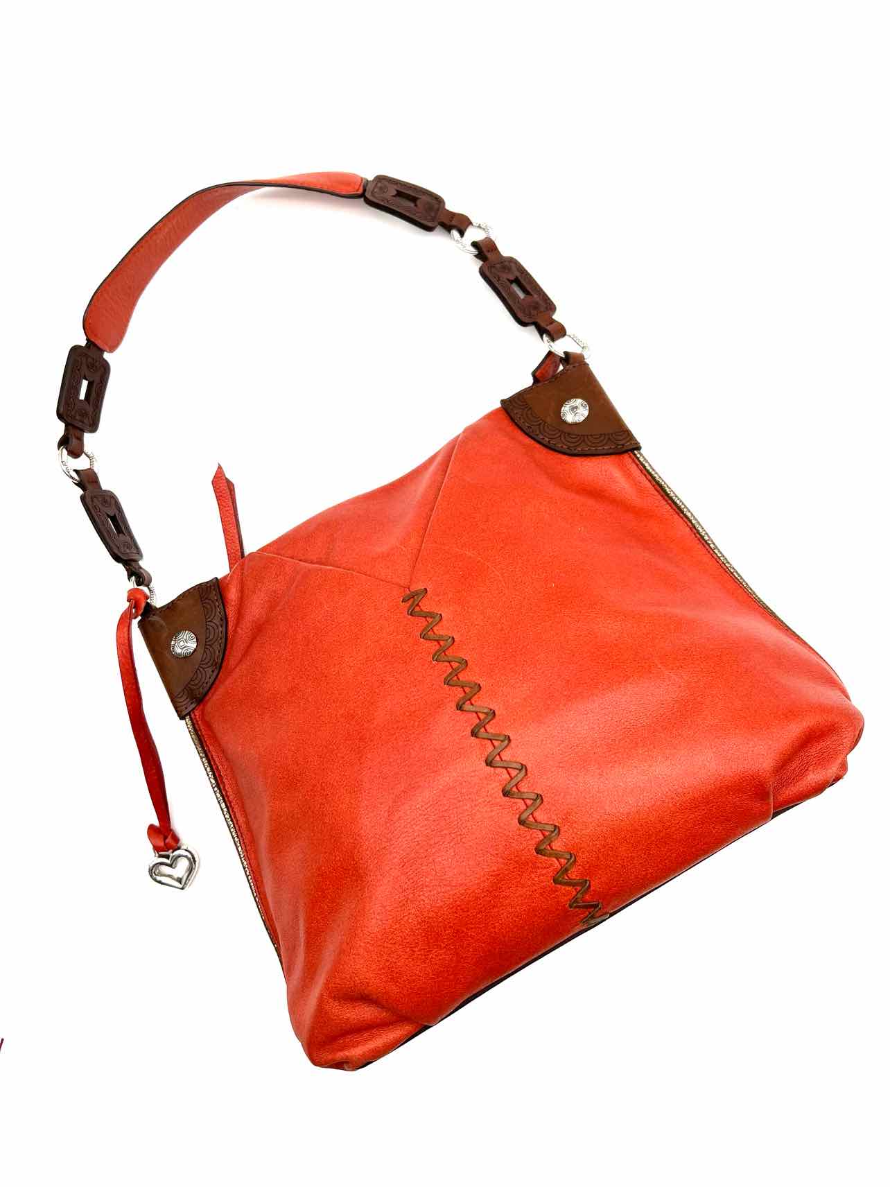 Brighton Orange/Brown Shoulder Bag Whipstitch Leather Designer Purse