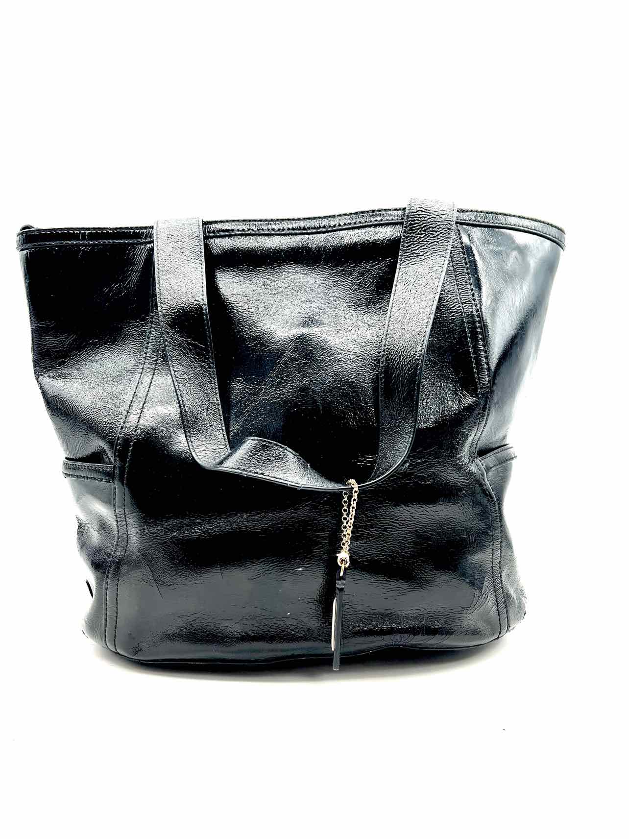 Vince Camuto Black/Silver Zipper Leather Designer Tote