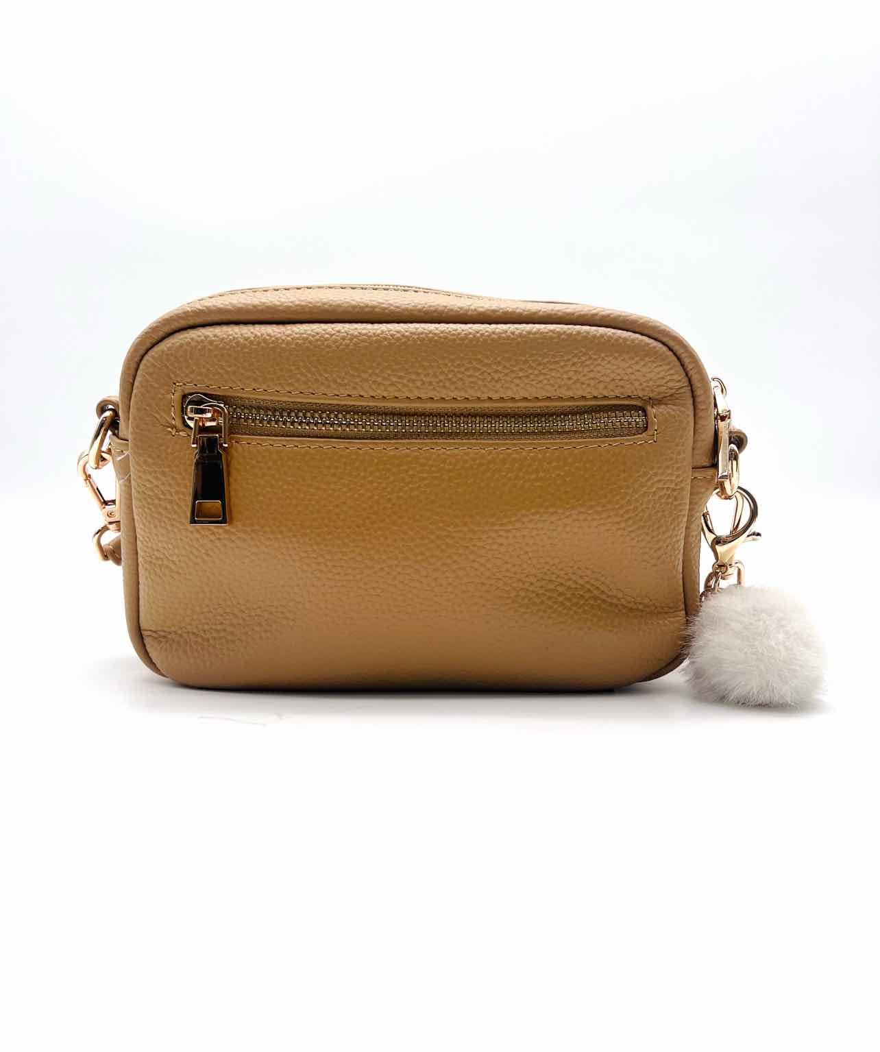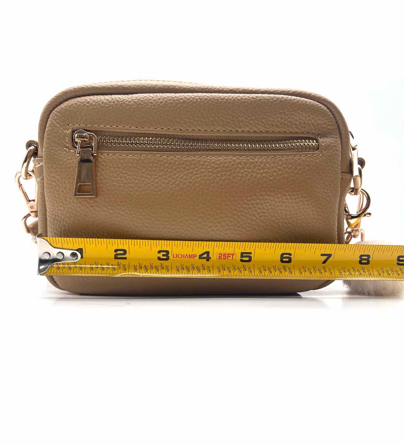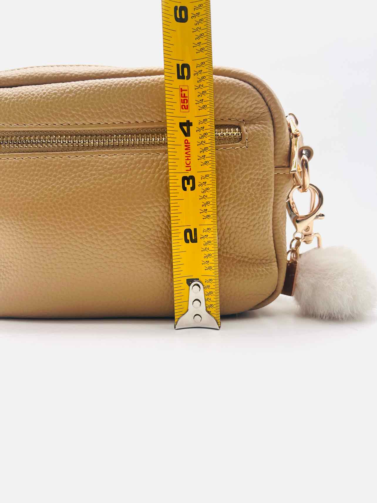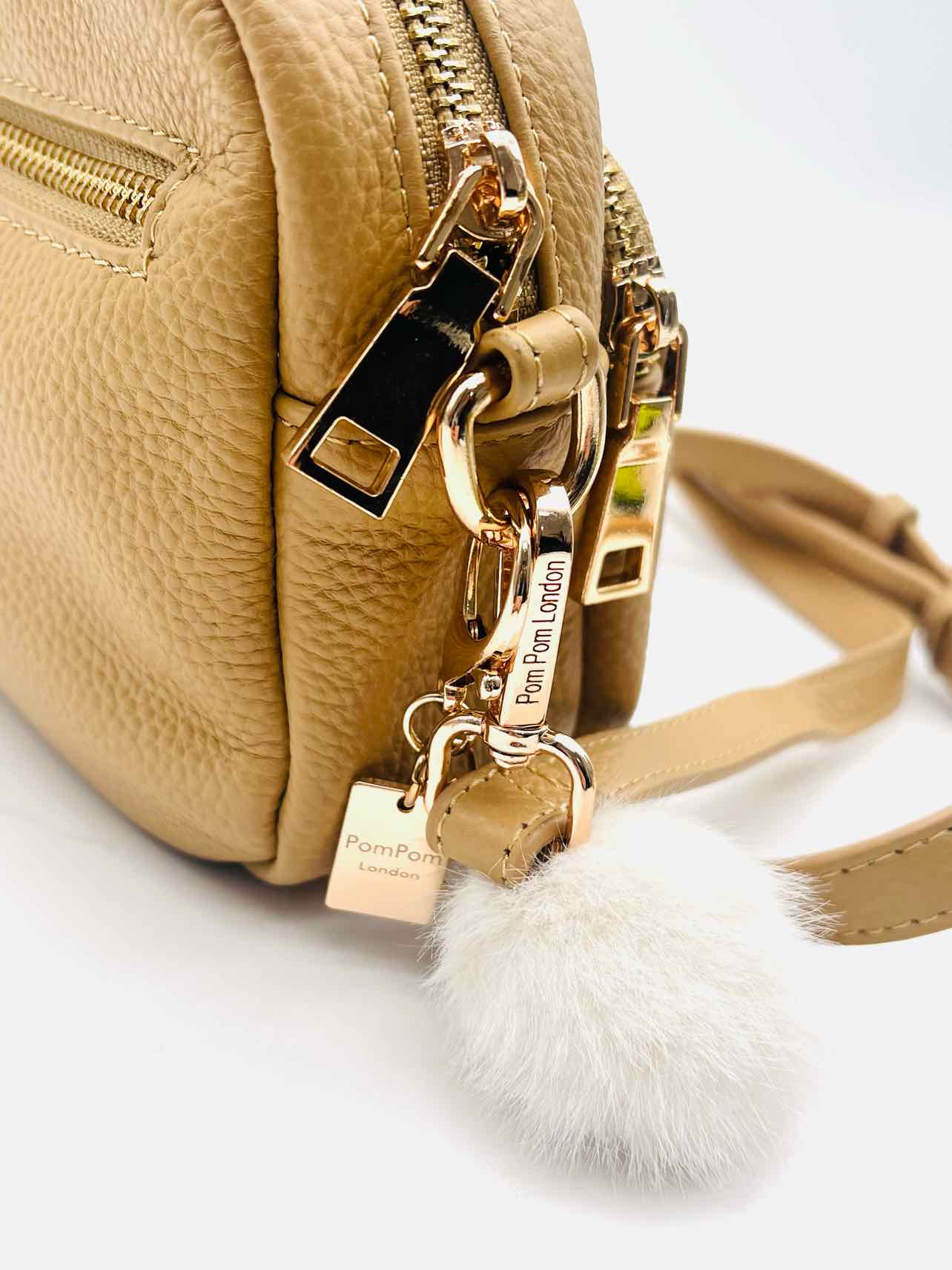 Pom Pom London Tan Pebbled Leather Designer Crossbody Purse